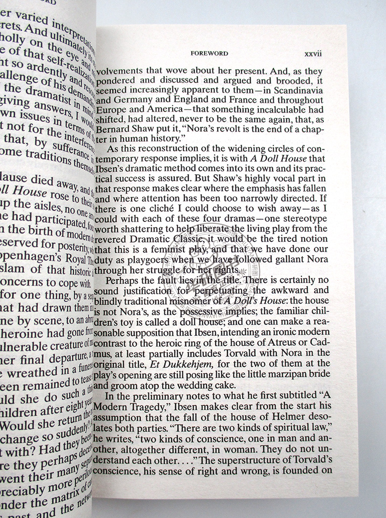 Four Major Plays 1《易卜生四大戏剧1》精选19世纪挪威作家亨利克·易卜生的四部戏剧,包括《玩偶之家》《野鸭》《海达·高布乐》《建筑大师》。其中《玩偶之家》是易卜生的代表作,曾被比做“妇女解放运动的宣言书”,主要写主人公娜拉从爱护丈夫、信赖丈夫到与丈夫决裂,后来离家出走,摆脱玩偶地位的自我觉醒过程。剧本结构紧凑,情节集中。全剧采用追溯的手法,通过债主的要挟,海尔茂收到揭发信,交代剧情发展的关键事件娜拉伪造签名,然后集中刻画他们冲突、决裂的过程。