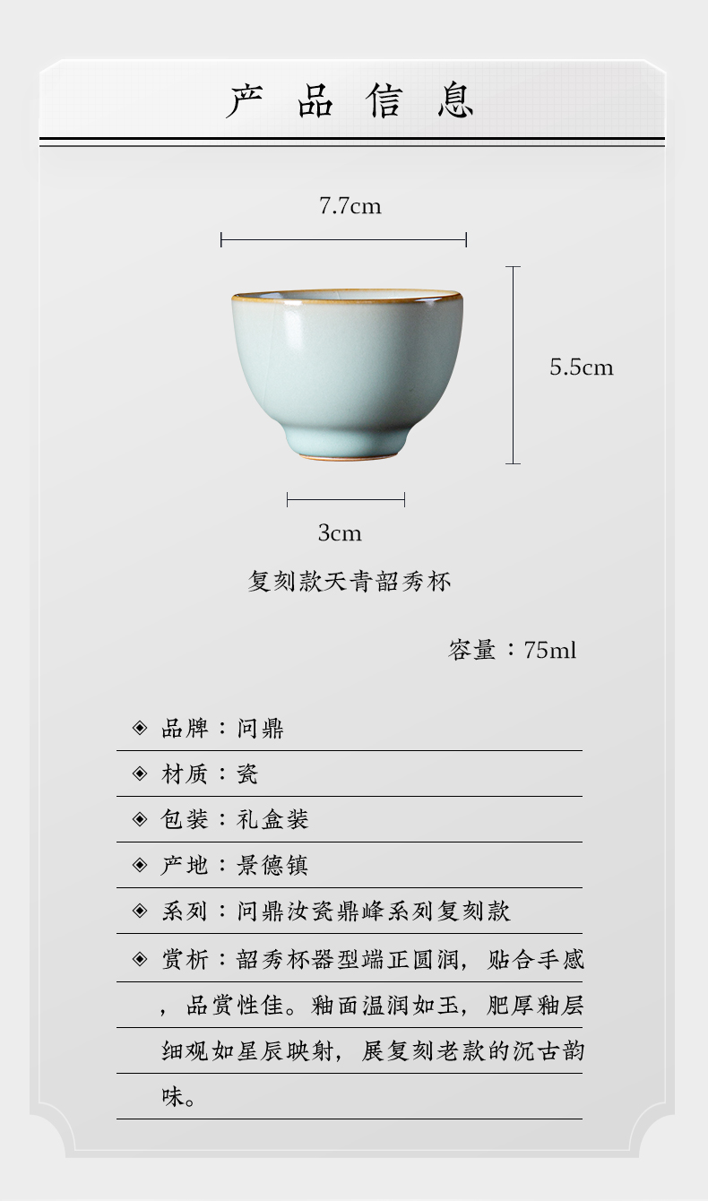 问鼎汝瓷复刻款天青精工款韶秀杯