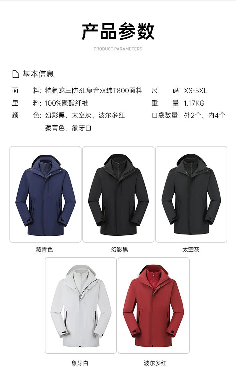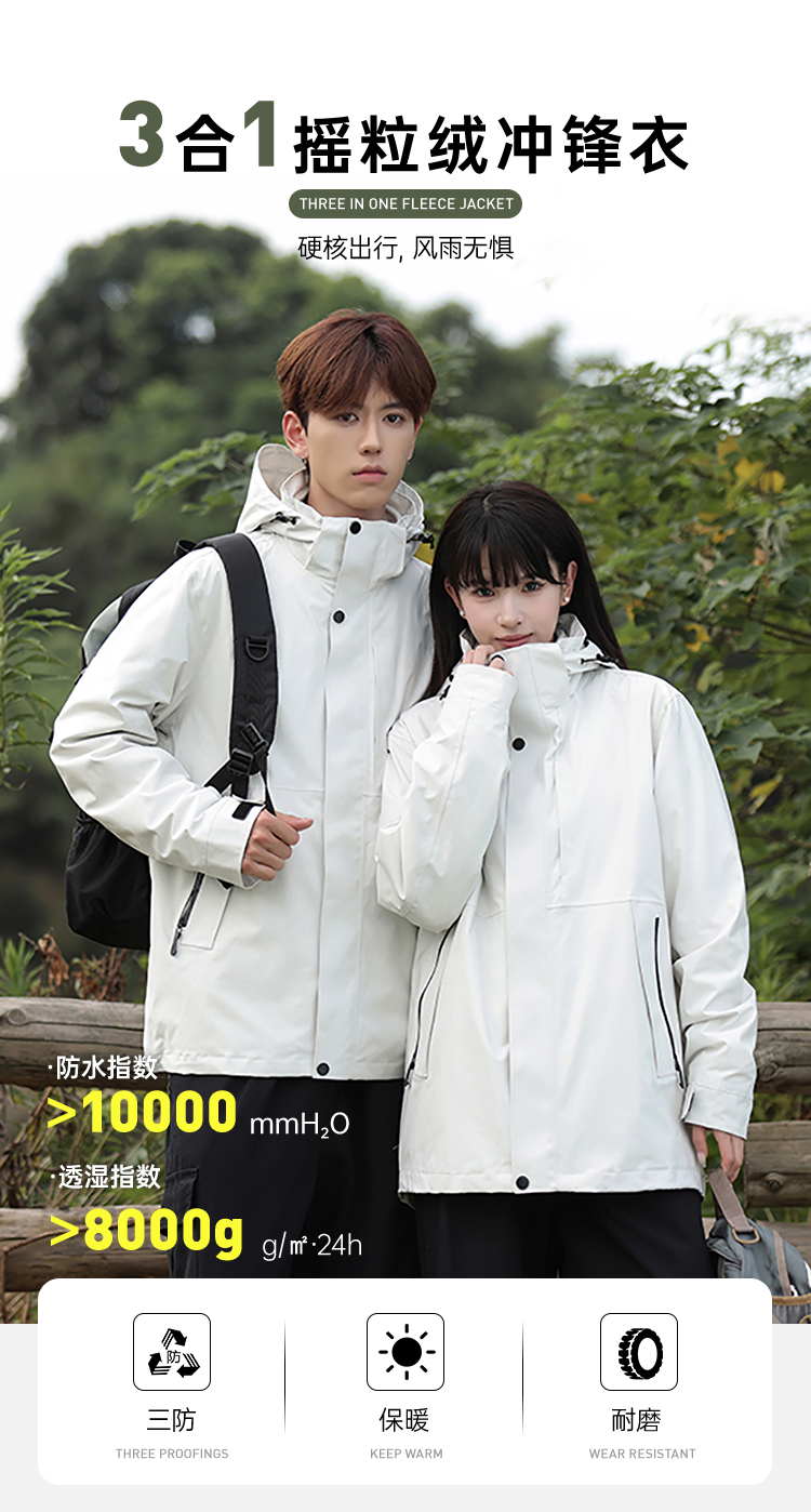 【轻量硬壳户外透气三合一冲锋衣】防水防污休闲外套男女同款户外登山服外套 FT408