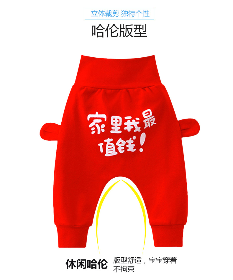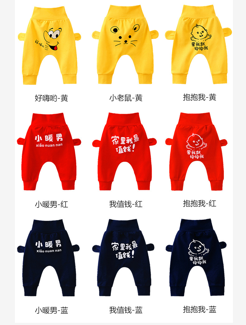 【萌宝潮流高腰pp裤】宝宝PP裤纯棉婴儿大屁屁高腰护肚裤子男童长裤女小童春秋季哈伦裤