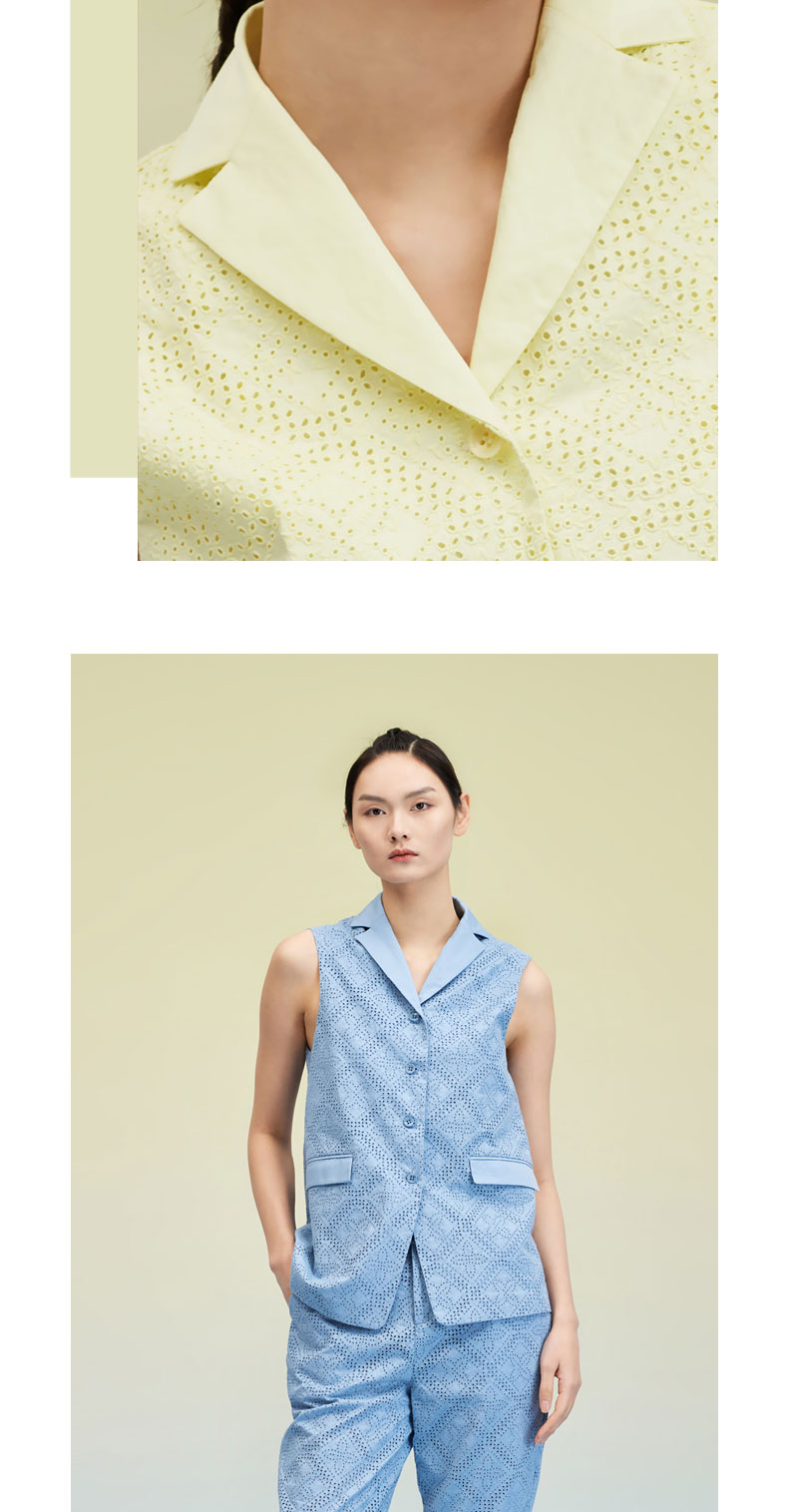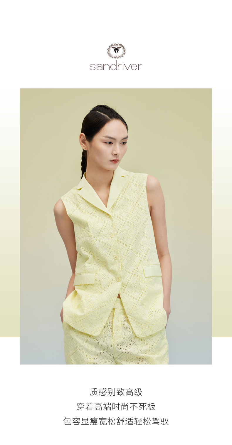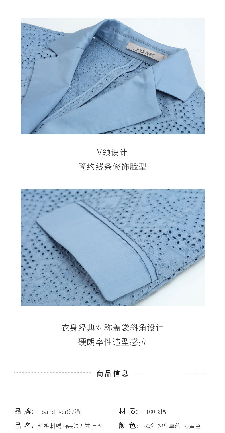 纯棉刺绣西装领无袖上衣 SJS95W023W
