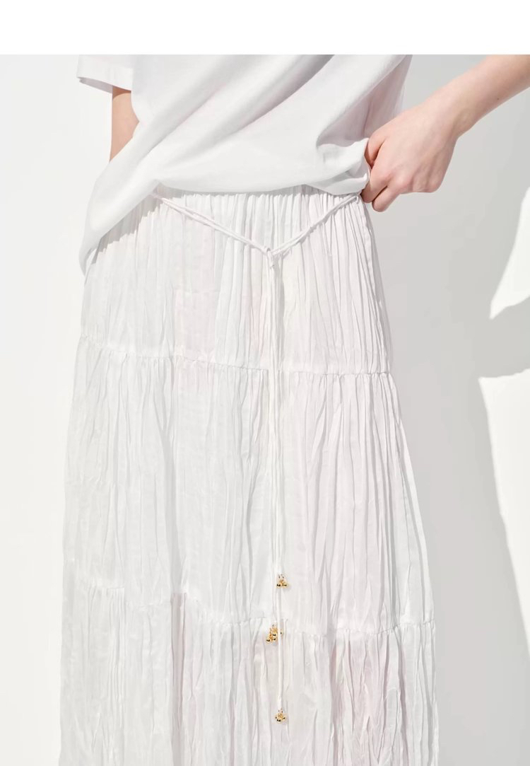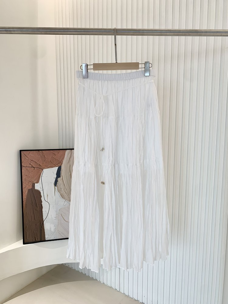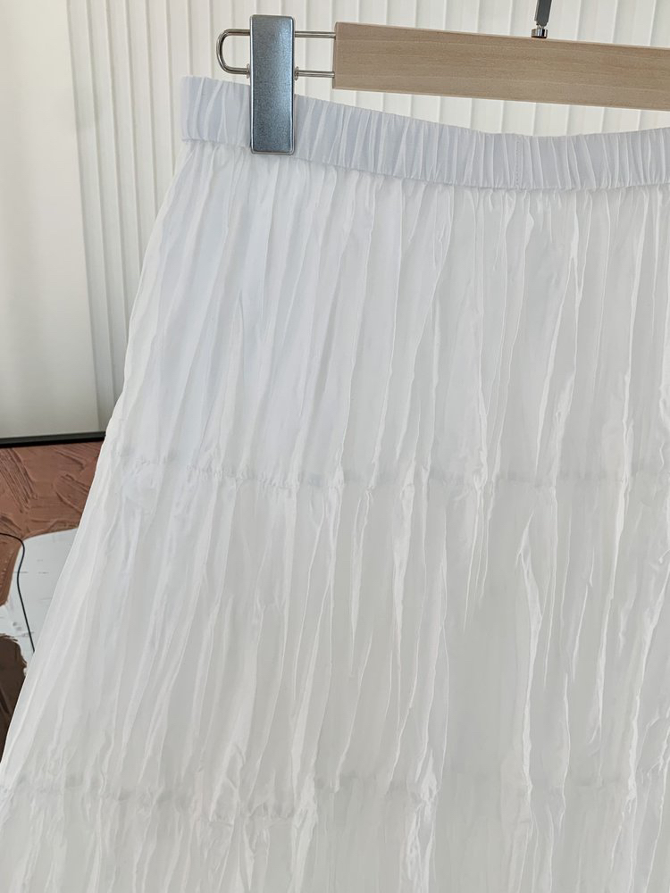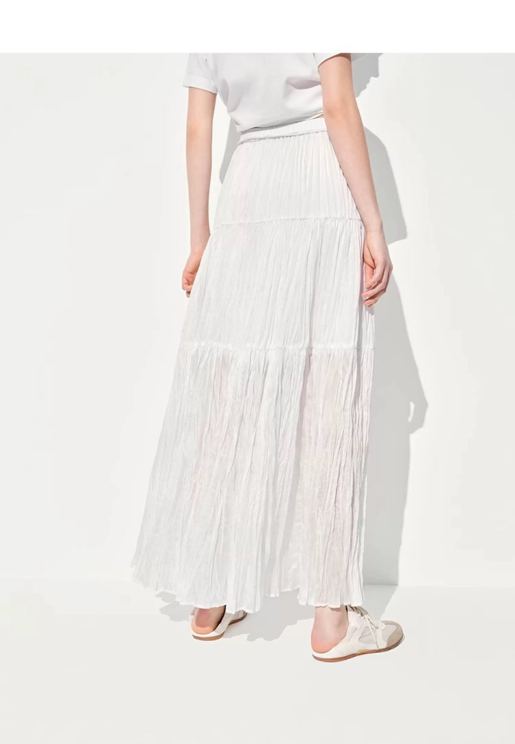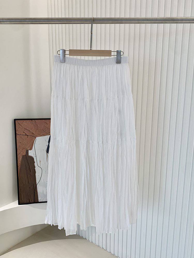 【白月光】乱褶肌理松紧腰长款半裙 面料垂坠 轻质好穿 无序烫褶 在裙摆间形成充满呼吸感的立体雕塑 自然中腰松紧弹力设计 友好包容腰腹 宽松A字蛋糕裙型
