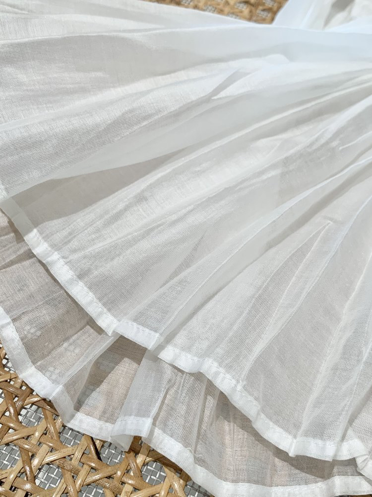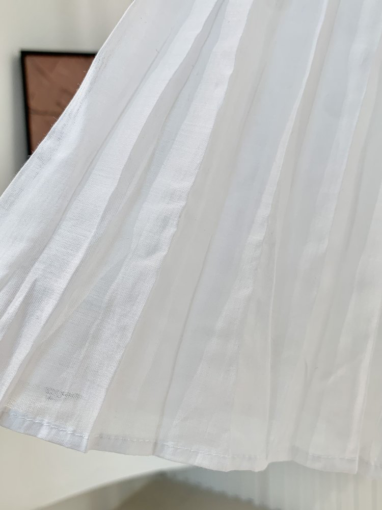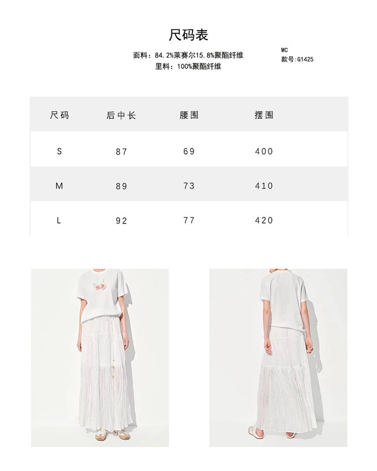 宽松A字蛋糕裙型,修饰腰胯,藏匿腿部肉肉,自然显瘦,及踝裙长,相较于膝盖下方长度,更显身材修长和气质,上身垂坠有型,结合裙摆增加的摆量,行走间更加灵动飘逸,摇曳生姿~附有白色内衬,不用担心走光。