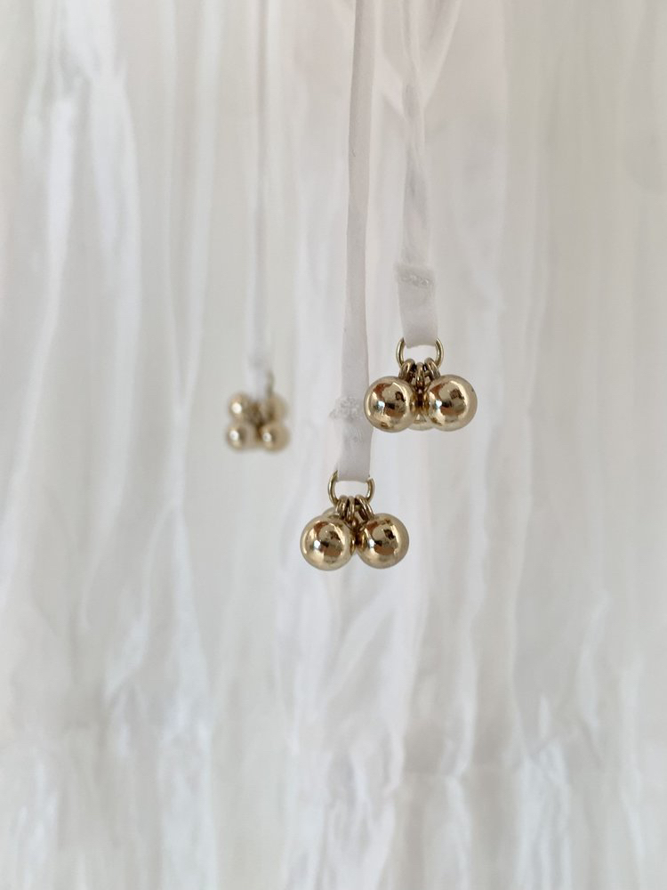 行走间,自然光在起伏褶皱上肆意泼墨,形成深浅不一的光影游戏,自然中腰松紧弹力设计,友好包容腰腹,增强穿着的舒适度,附有绑带装饰点缀腰部,金属小铃铛自然垂落,别具一番风格,设计心思满满。
