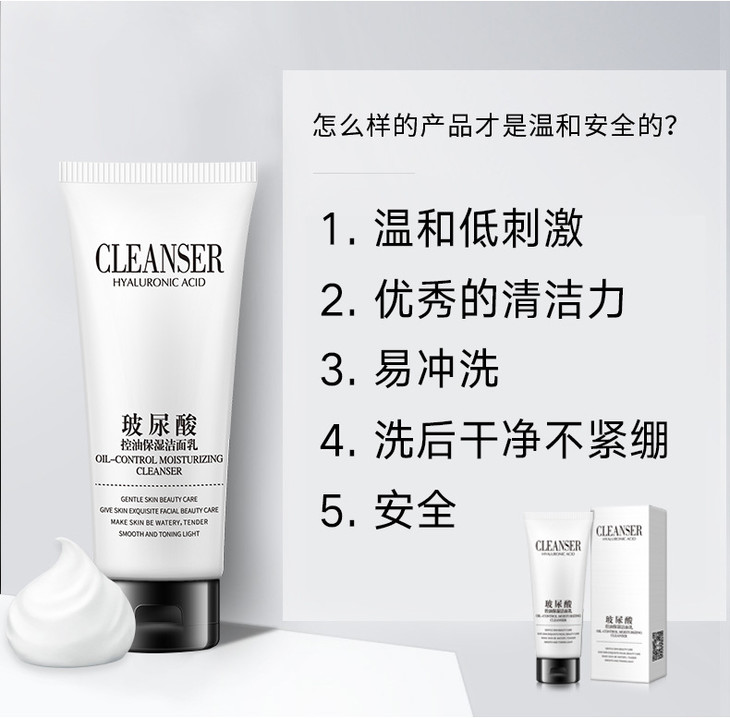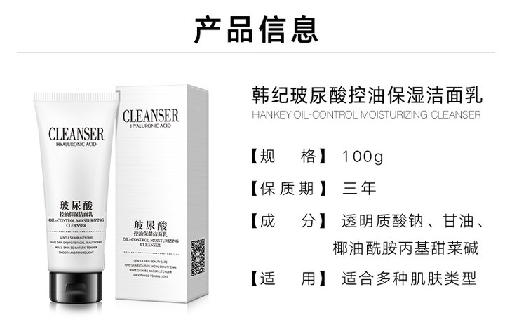 【化妆品】*韩纪玻尿酸洁面乳控油保湿100g 深层清洁洗面奶