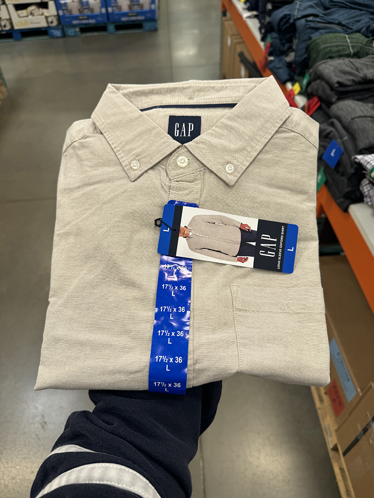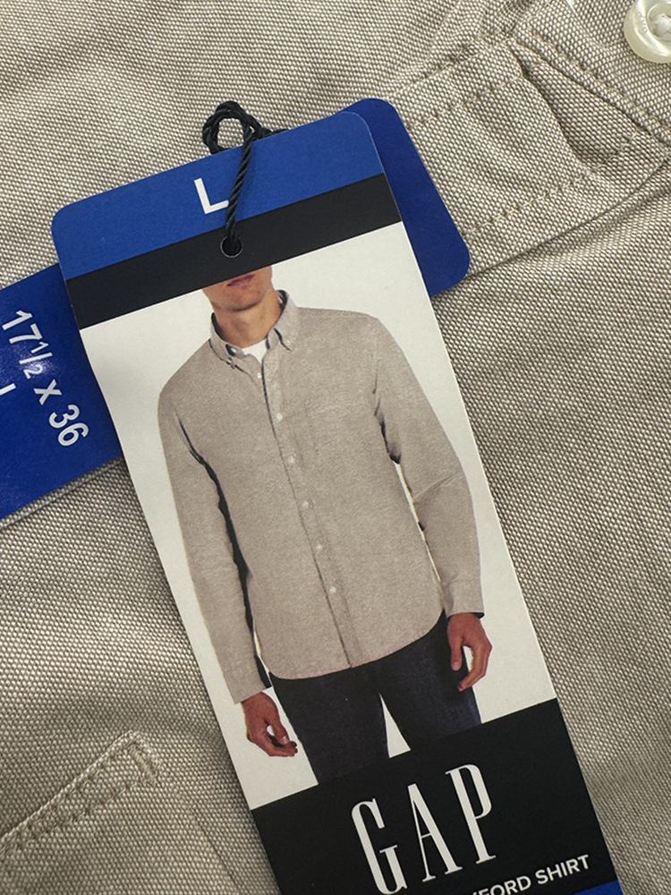 GAP 男士春夏牛津纺纯色/竖纹胸前口袋商务休闲扣领长袖衬衫