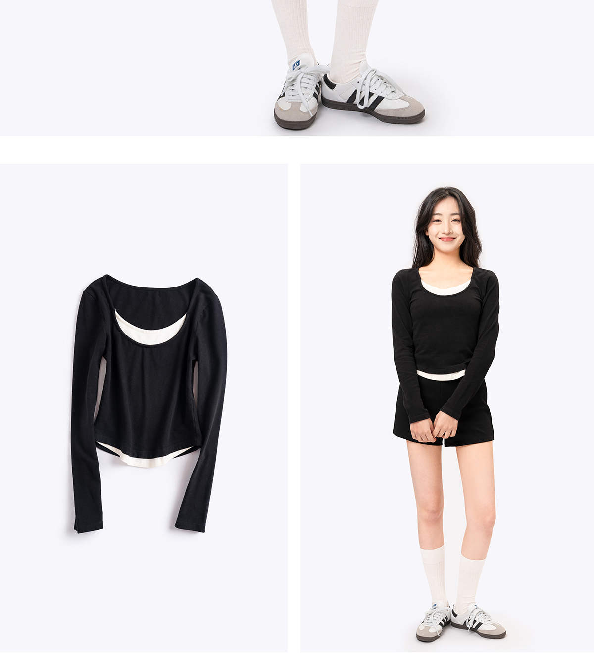 靴下物新款春秋保暖内衣女圆领内搭修身显瘦打底衫假两件长袖上衣