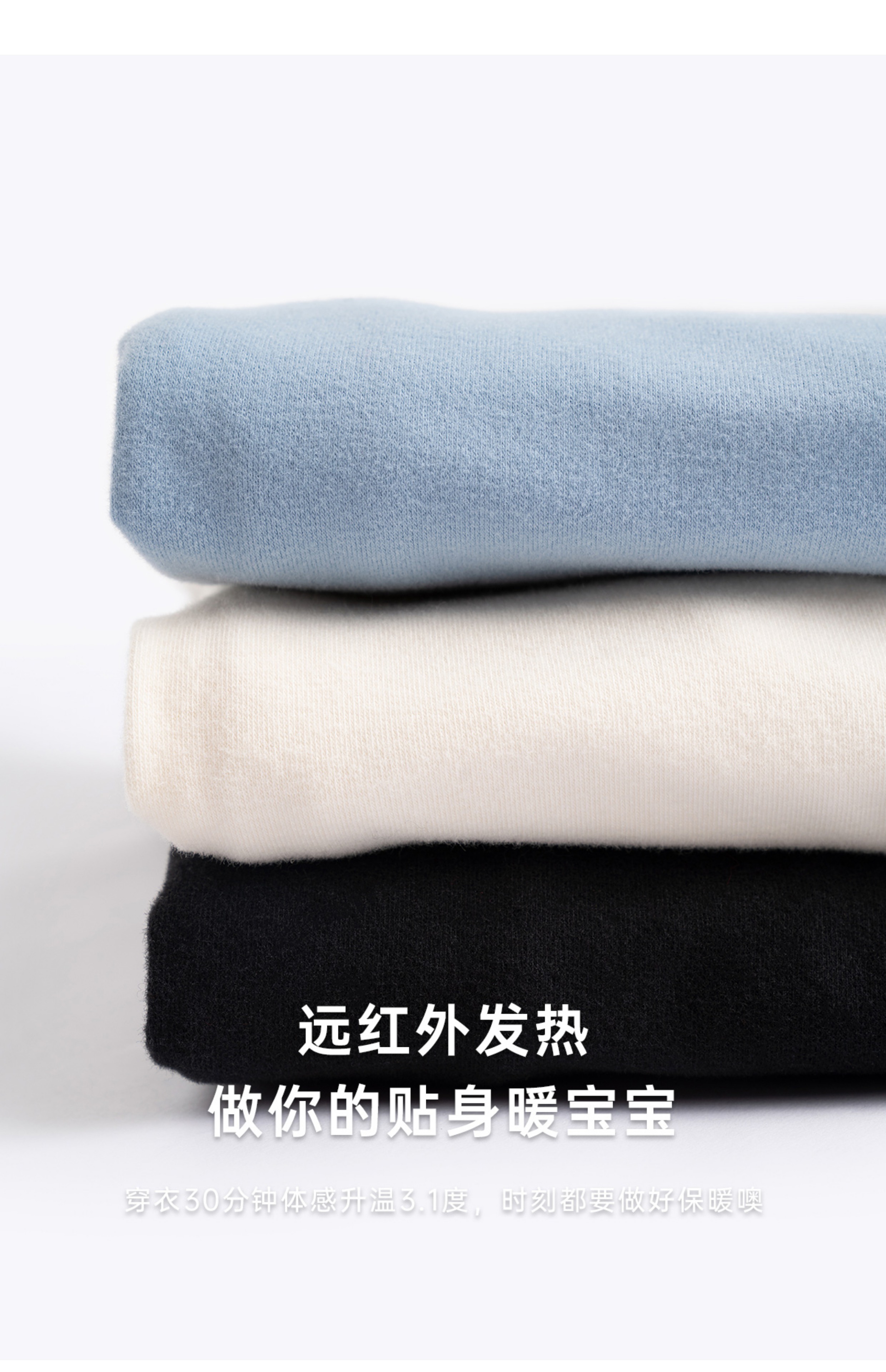 靴下物美雅碧自发热保暖上衣女秋冬季双面磨毛保暖内衣大圆领无痕