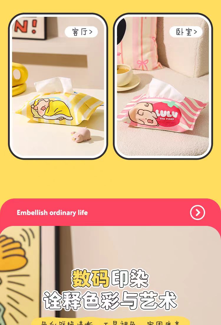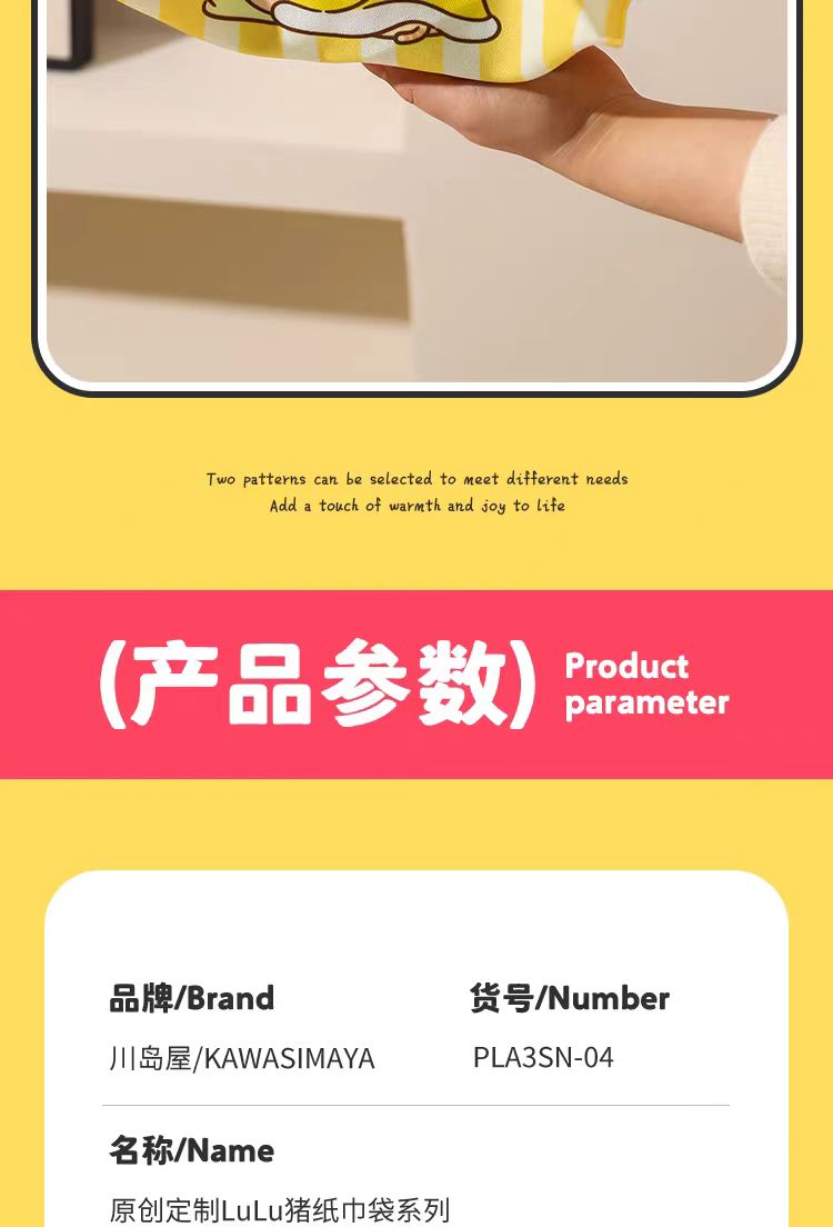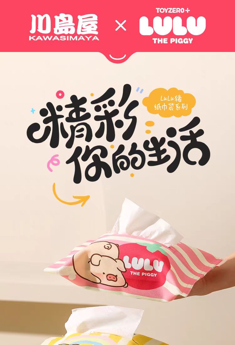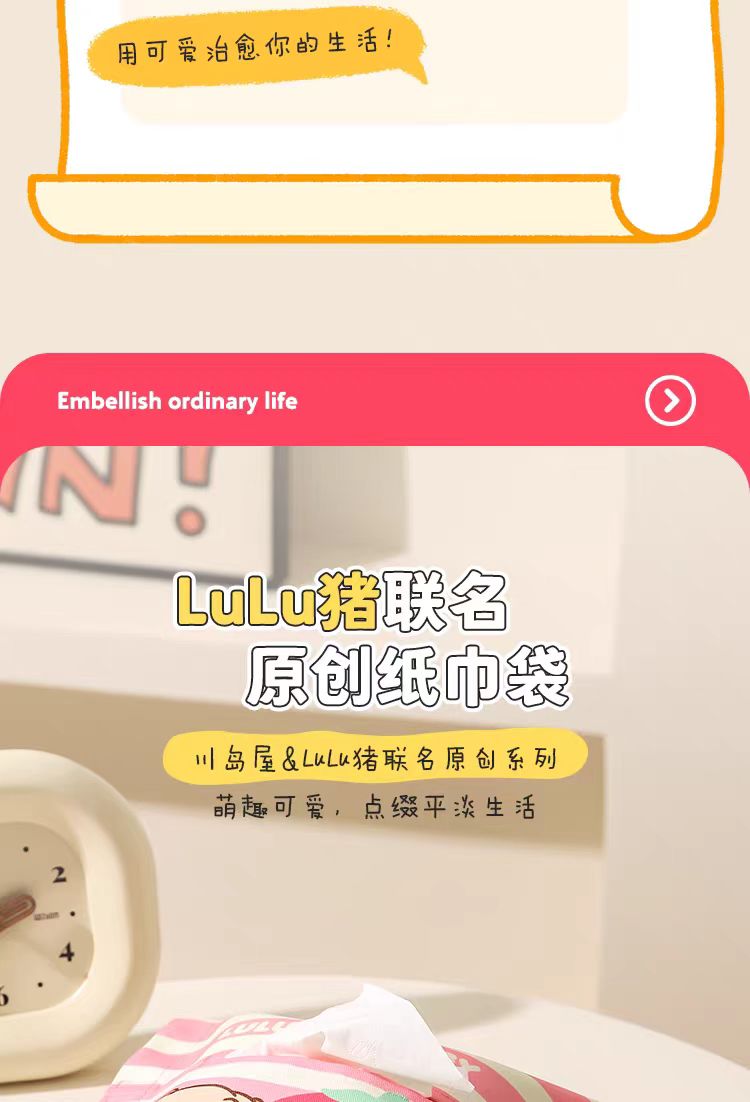 4楼Eubelle欧蓓 川岛屋&LuLu猪联名 可爱纸巾盒家用客厅茶几车载 活动价:18.8元
