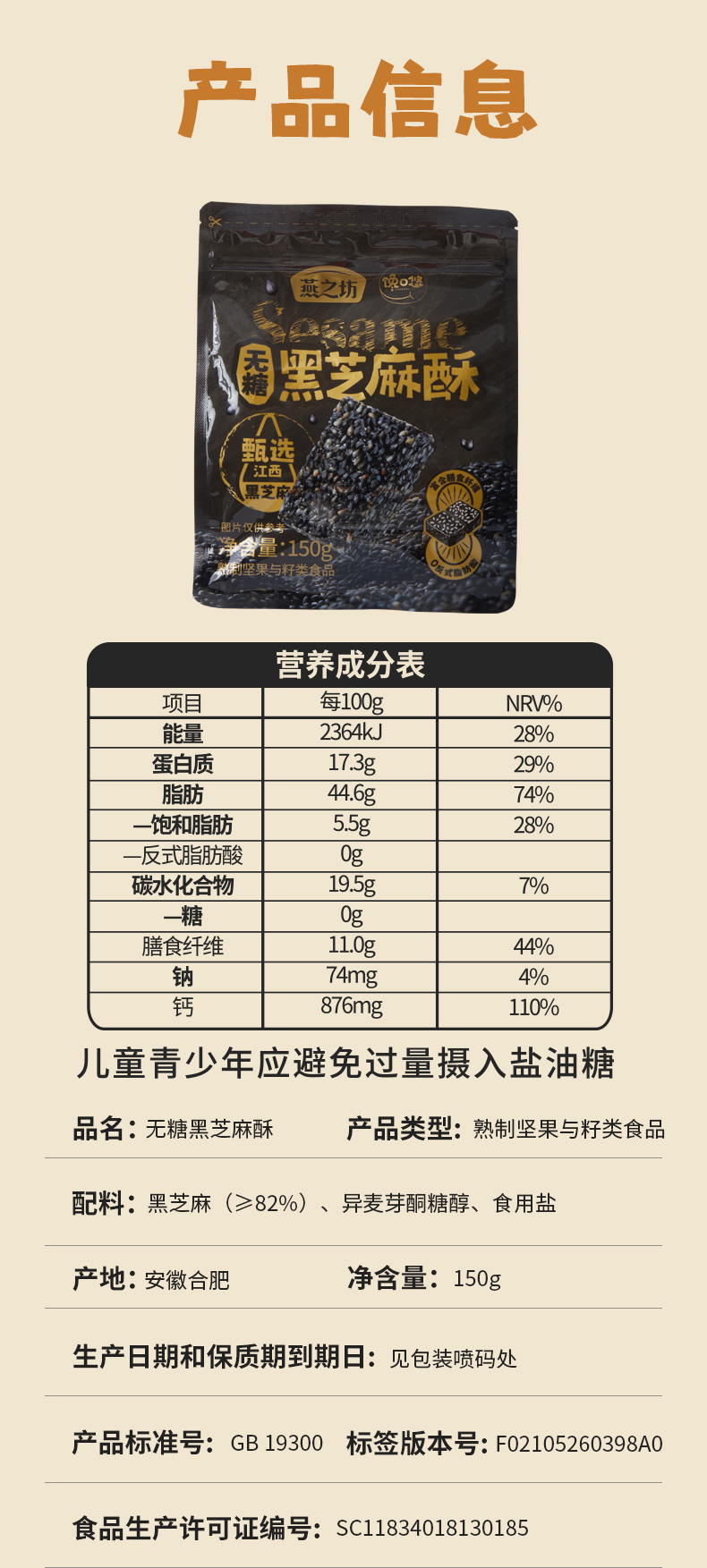 【商城限时活动】燕之坊无糖黑芝麻酥150g
