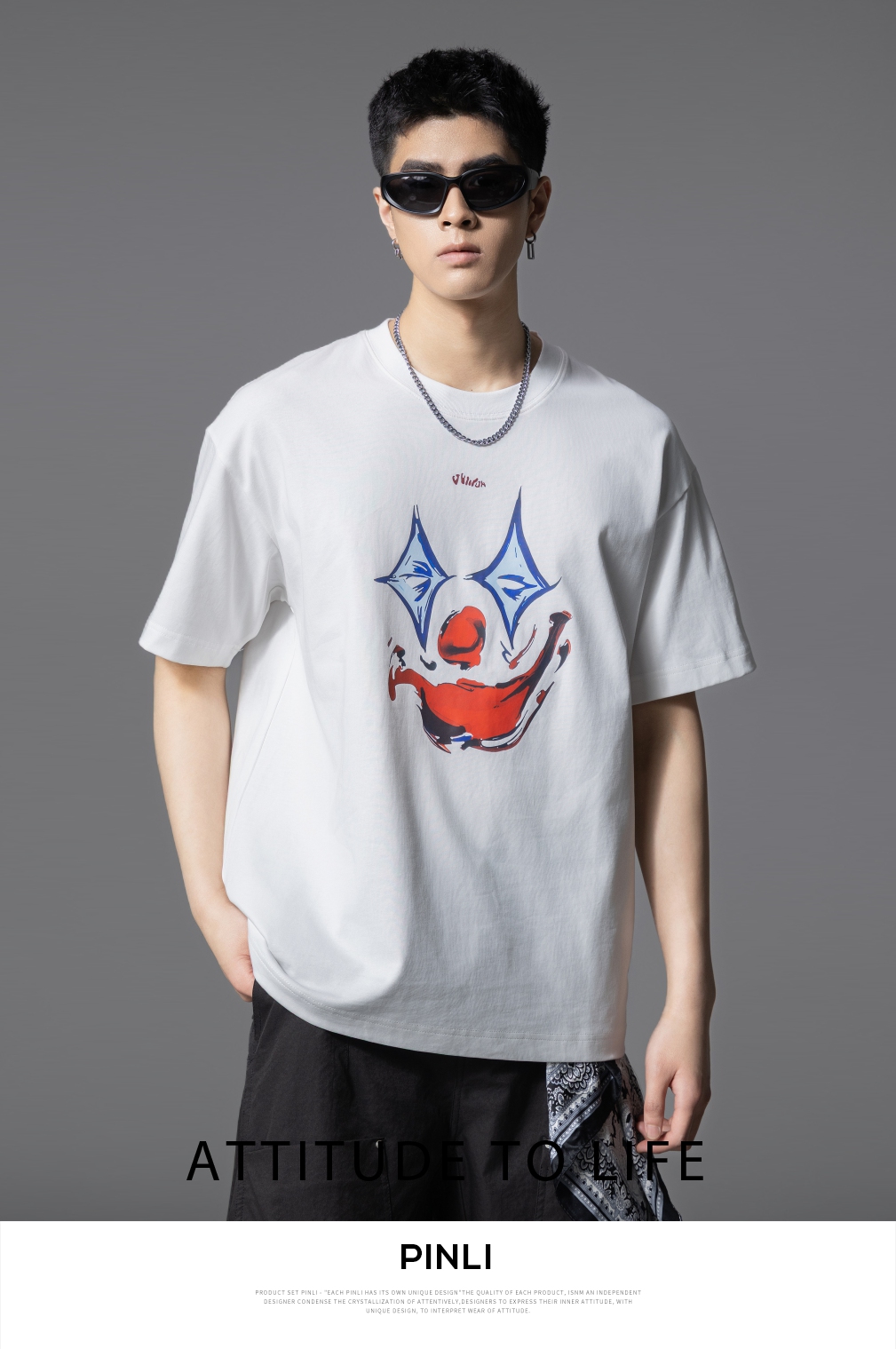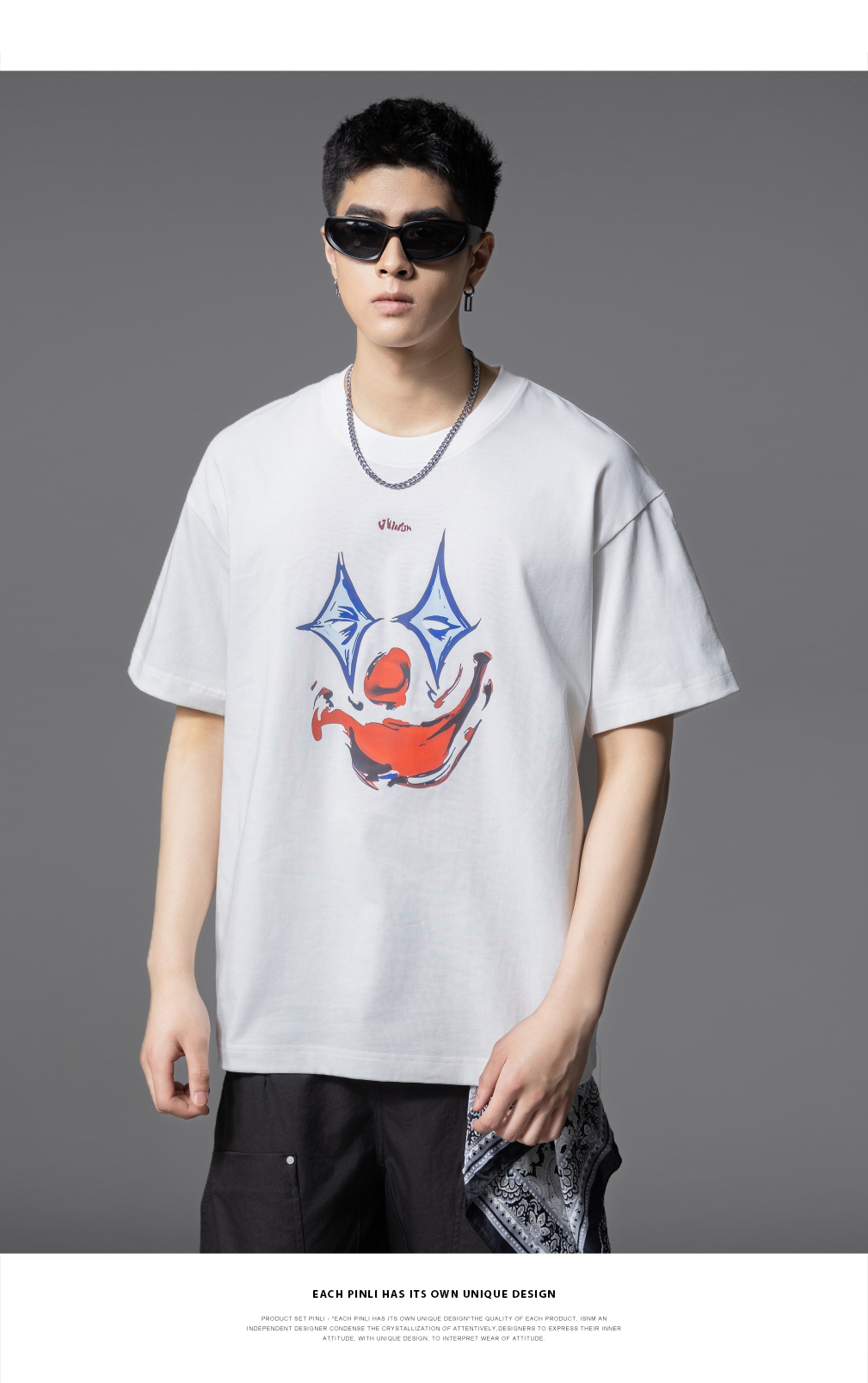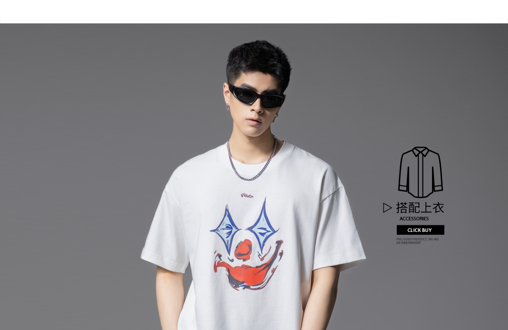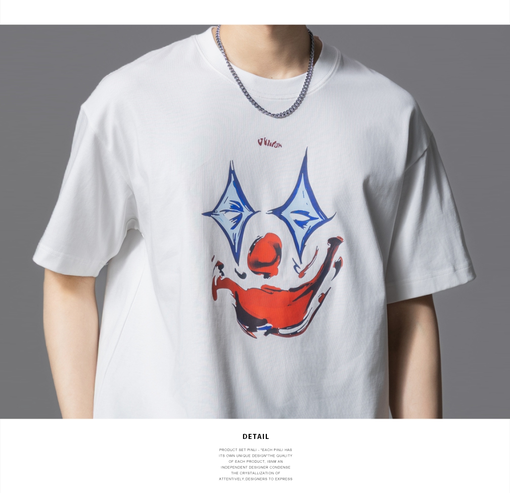 PINLI品立2025夏季新款男士圆领小丑印花短袖T恤上衣GD252111327