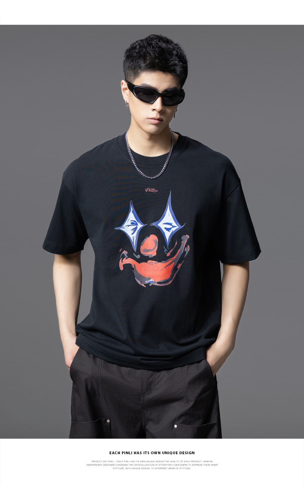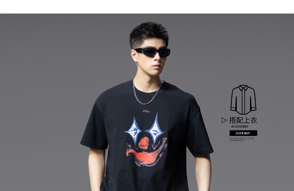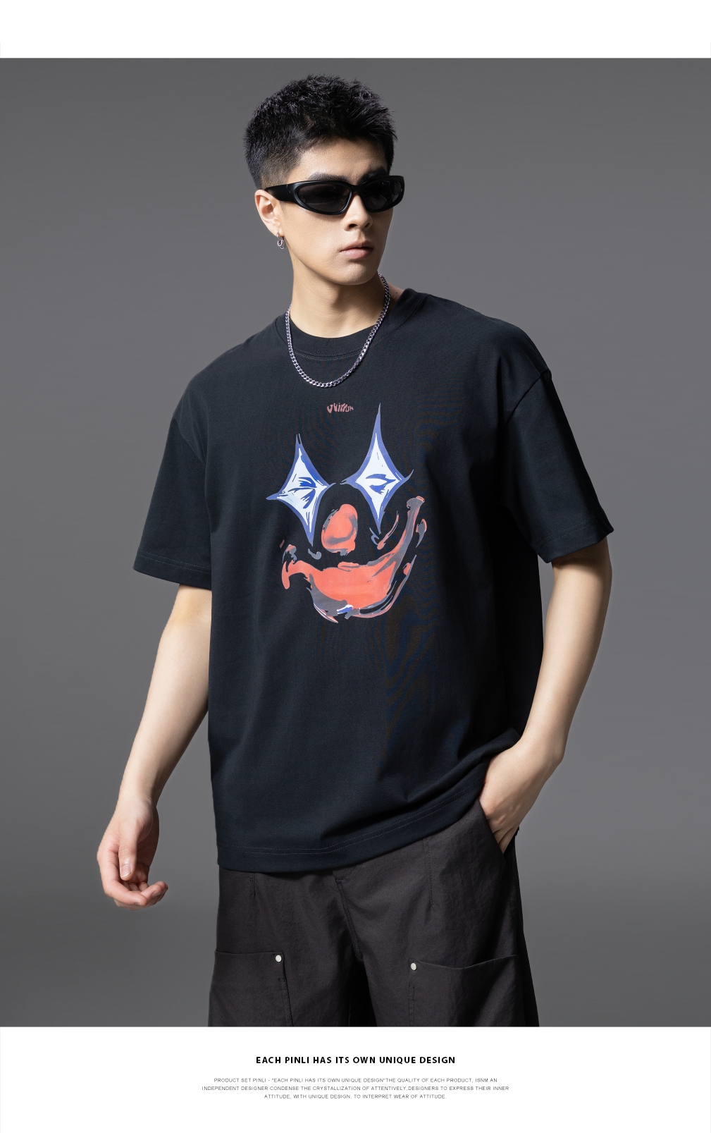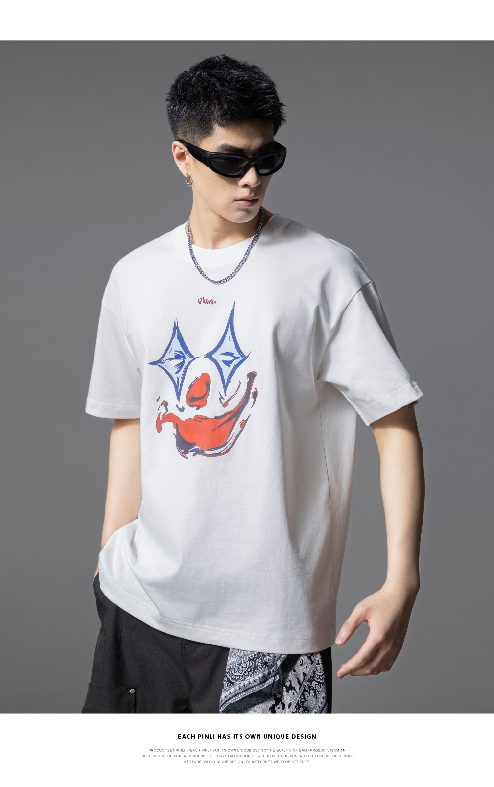PINLI品立2025夏季新款男士圆领小丑印花短袖T恤上衣GD252111327