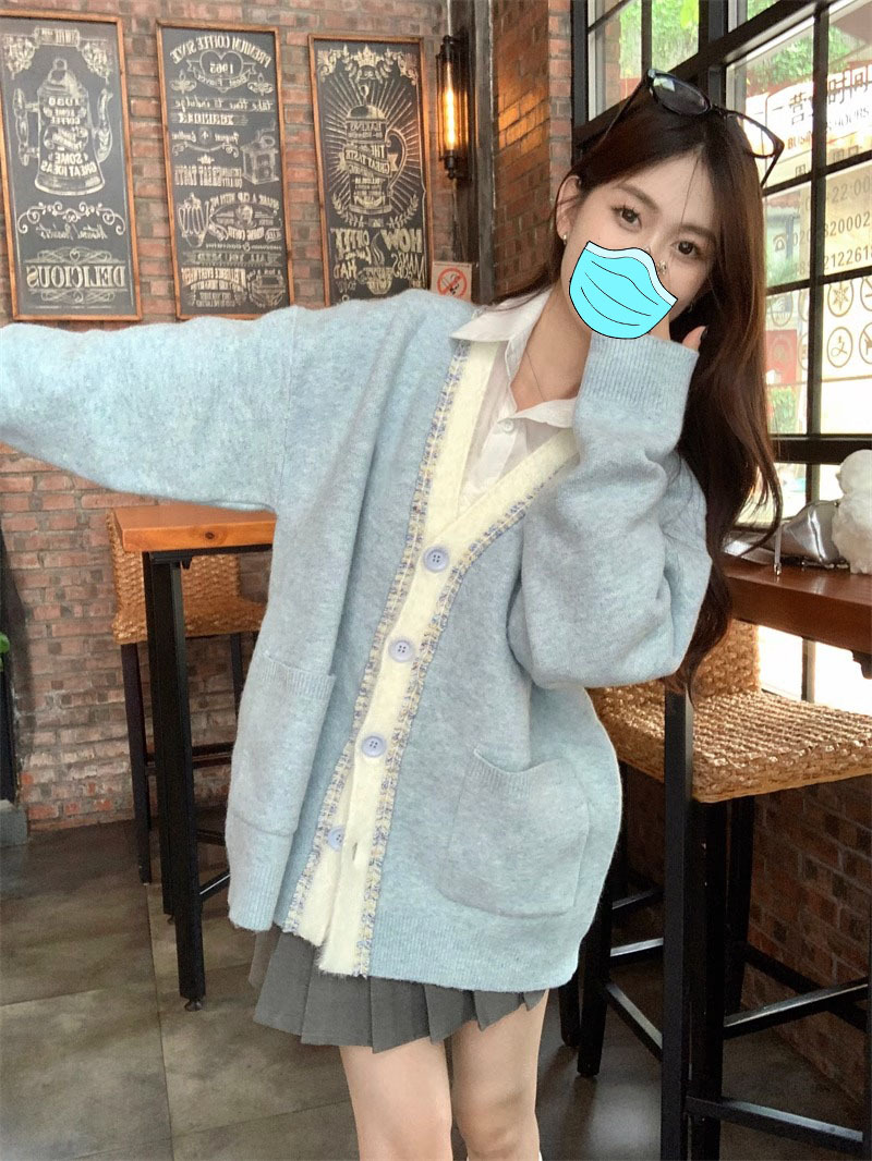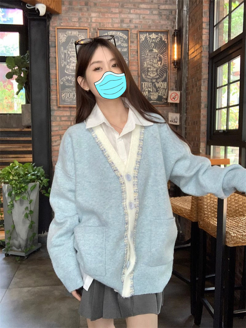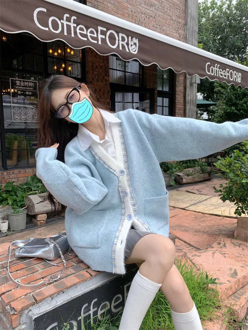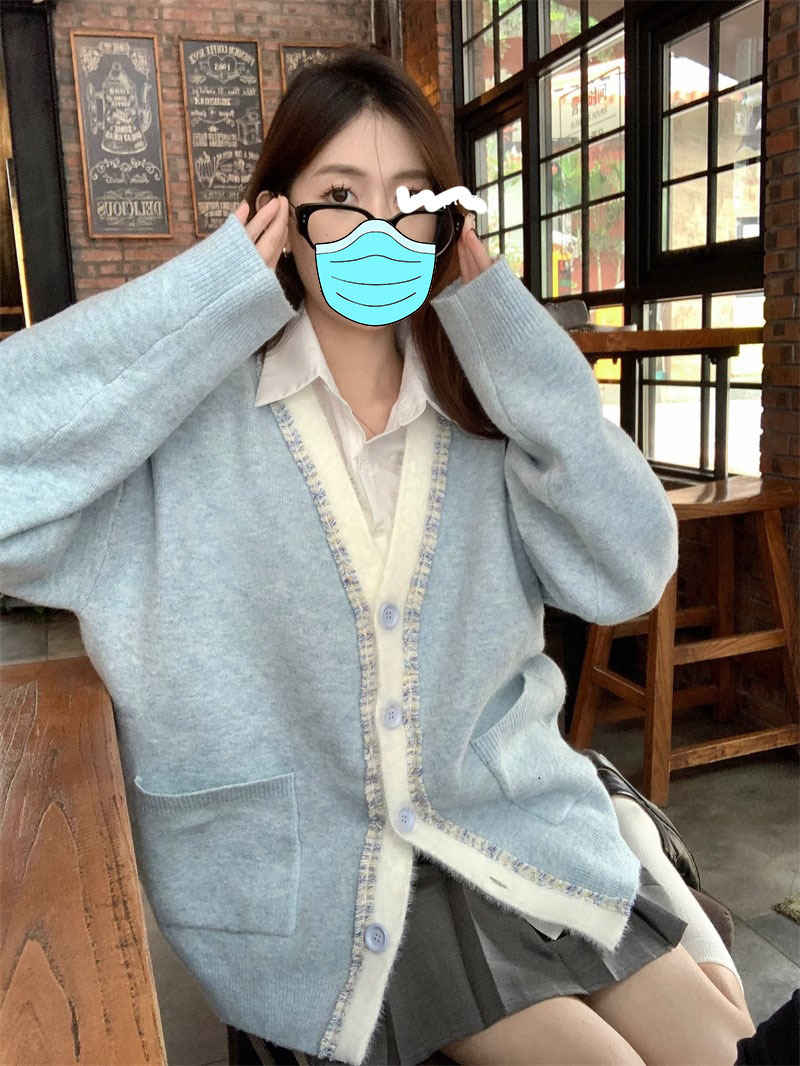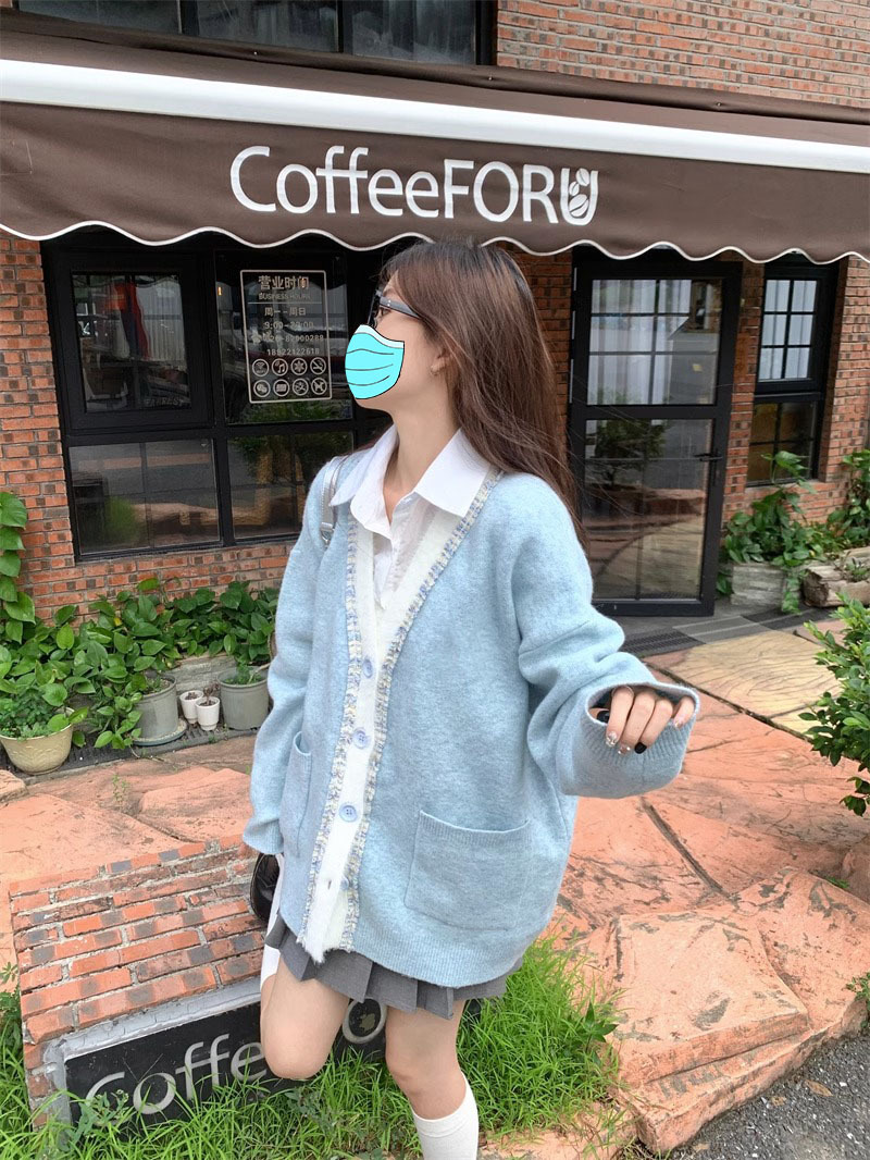 【超甜!学院风长袖针织衫】小众出门不撞衫系列,秋冬港式百搭显瘦上衣,学院风甜美毛衣外套,大码女装服饰L
