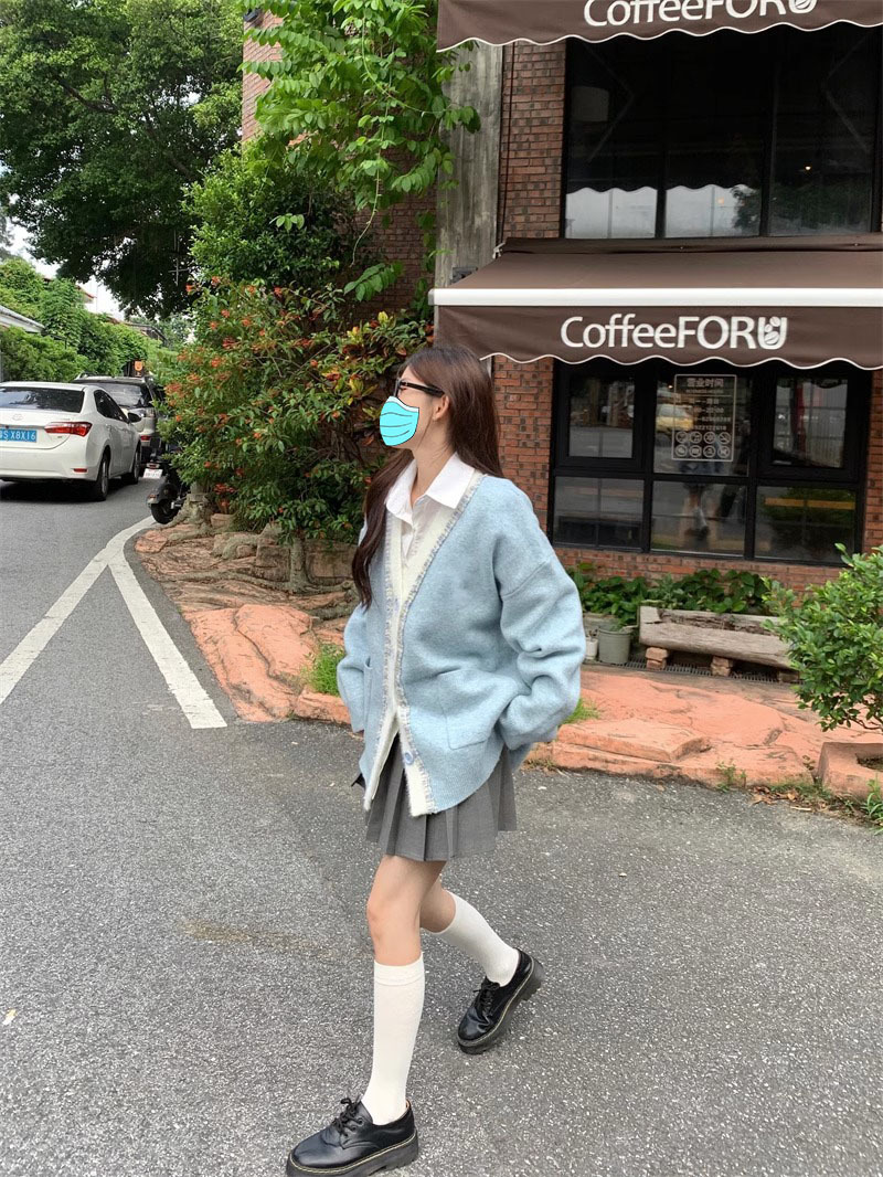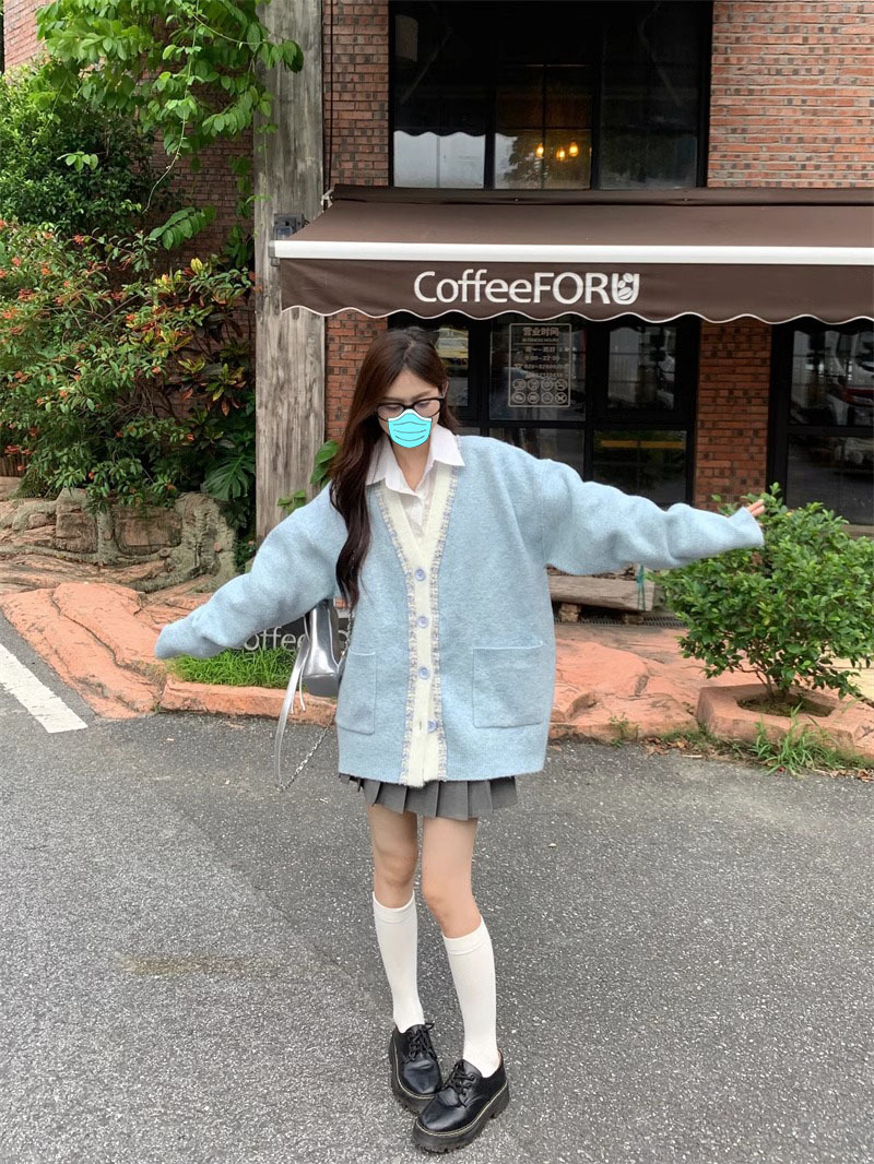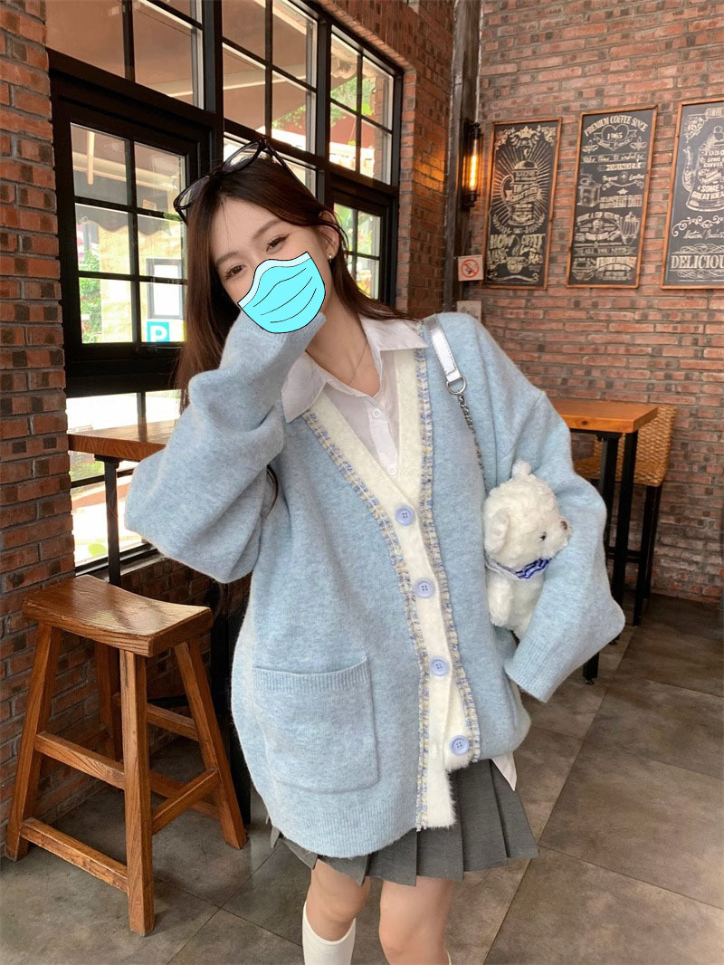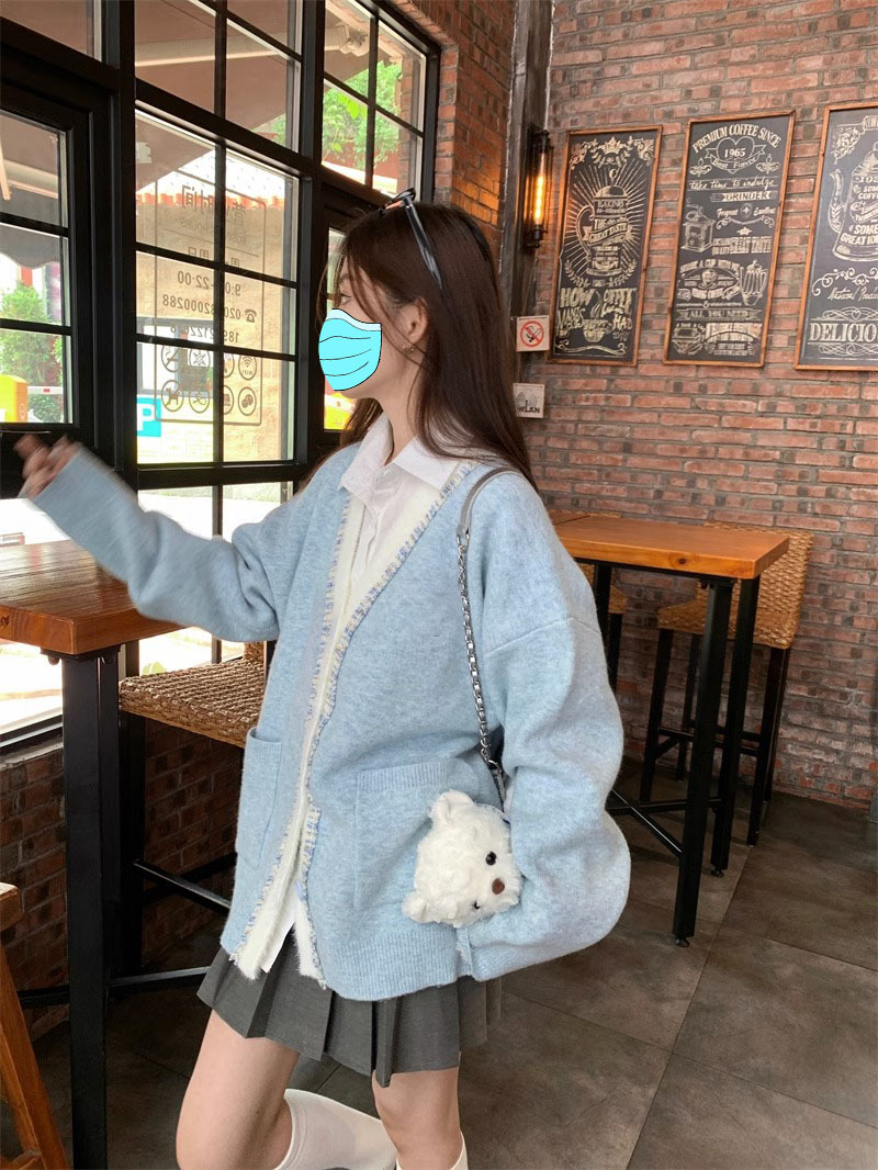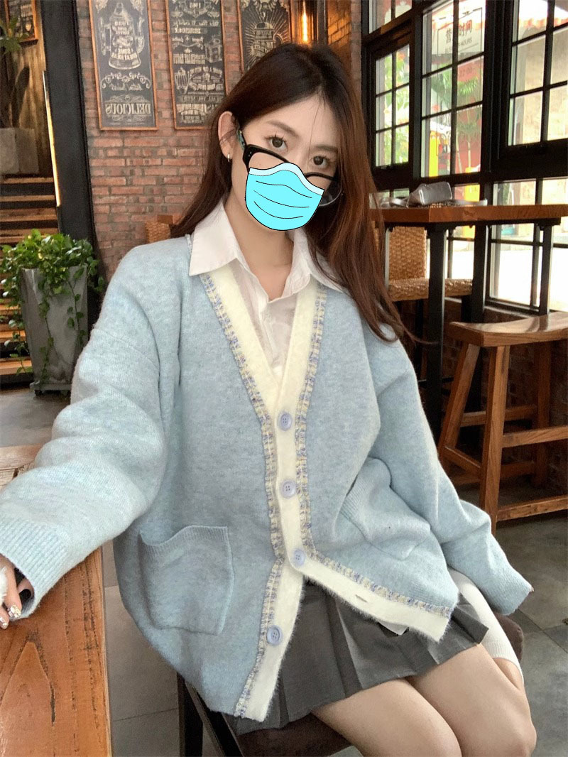 【超甜!学院风长袖针织衫】小众出门不撞衫系列,秋冬港式百搭显瘦上衣,学院风甜美毛衣外套,大码女装服饰L