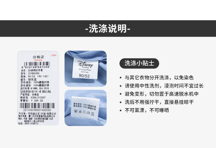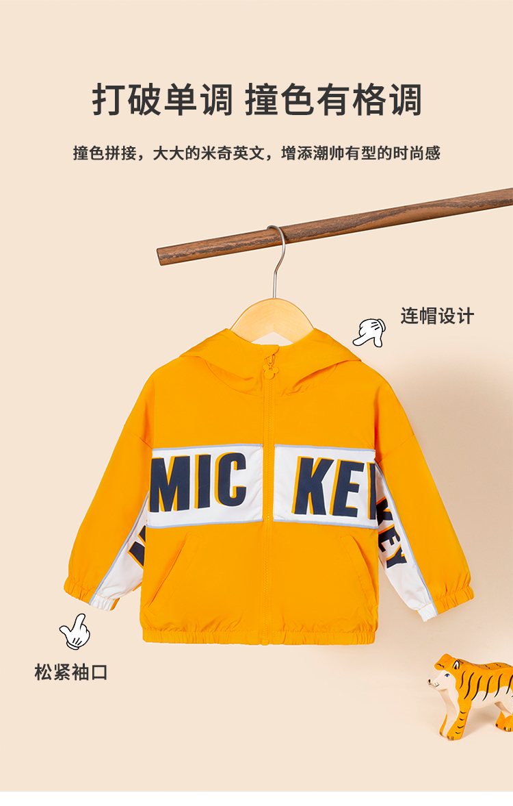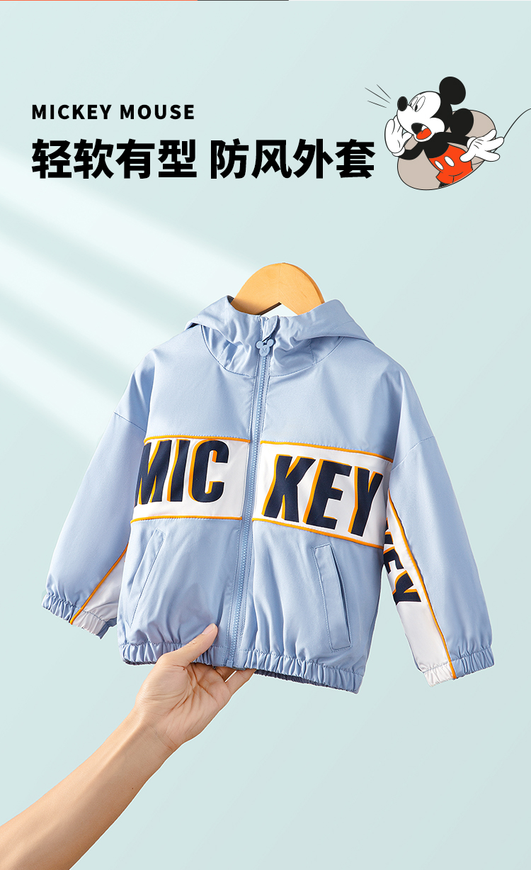 【商场同款】迪士尼童装男童连帽外套防风防水春秋冬季中大童宝宝保暖上衣221DS0395