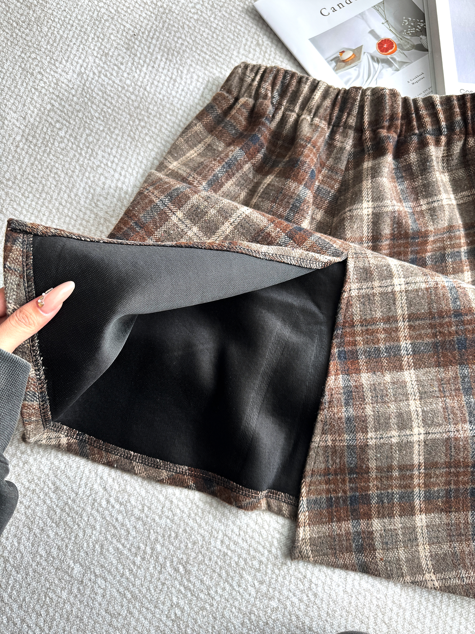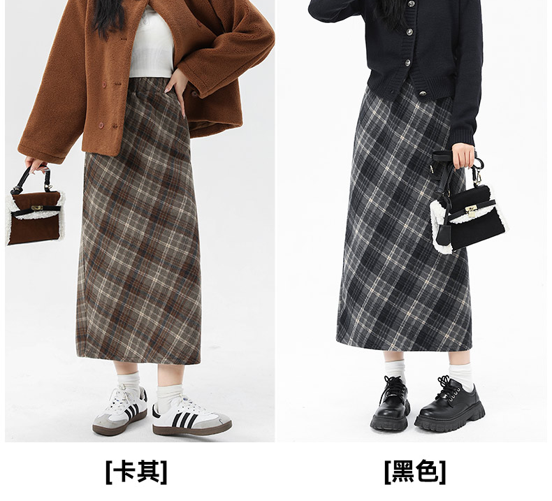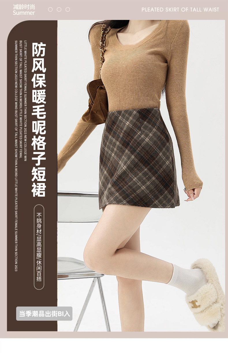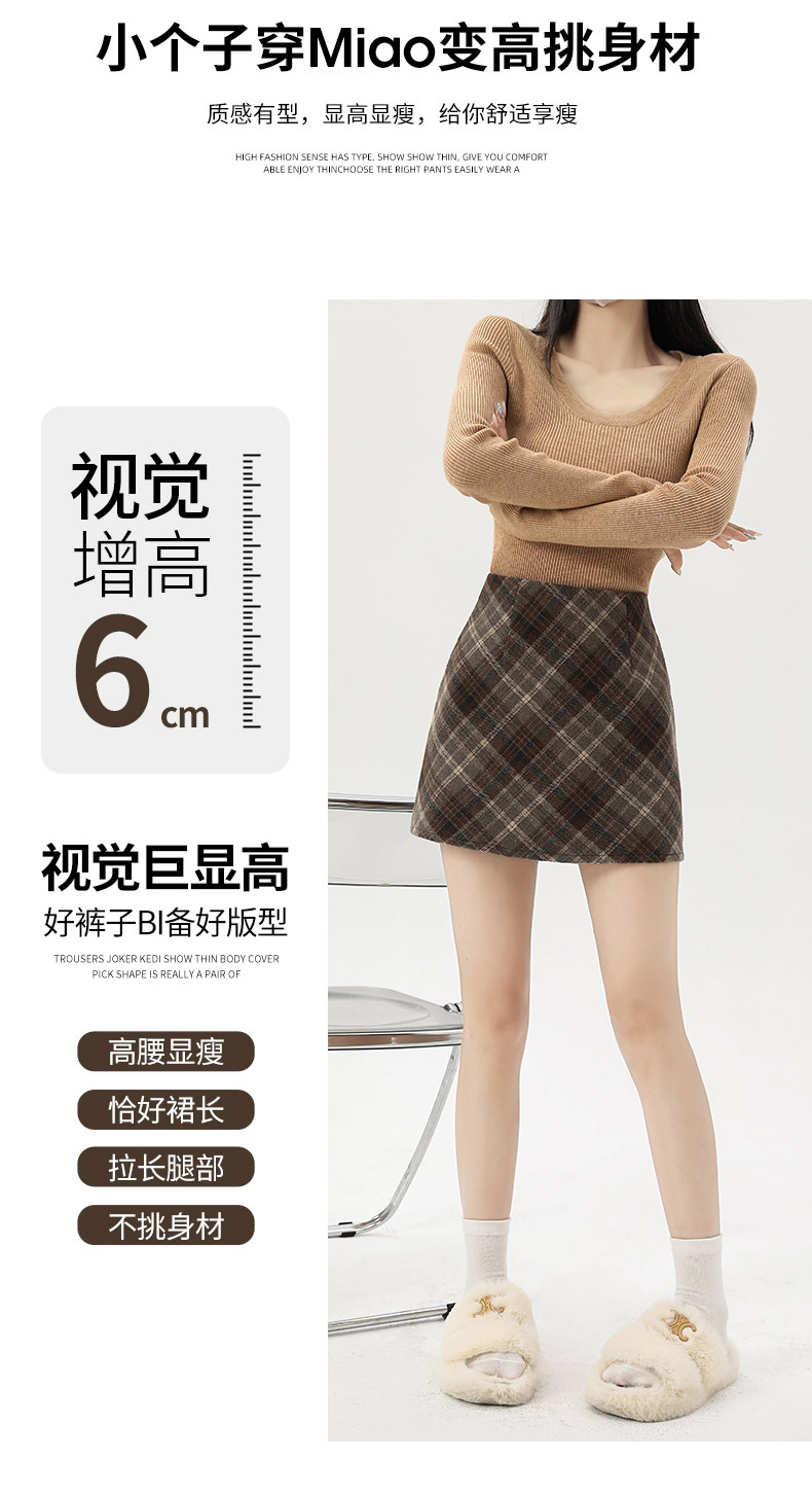 【超模君精选 喵小仟 毛呢格子裙】百搭简约的A型半裙 复古气质 遮小肚腩 高腰显瘦 显腿长