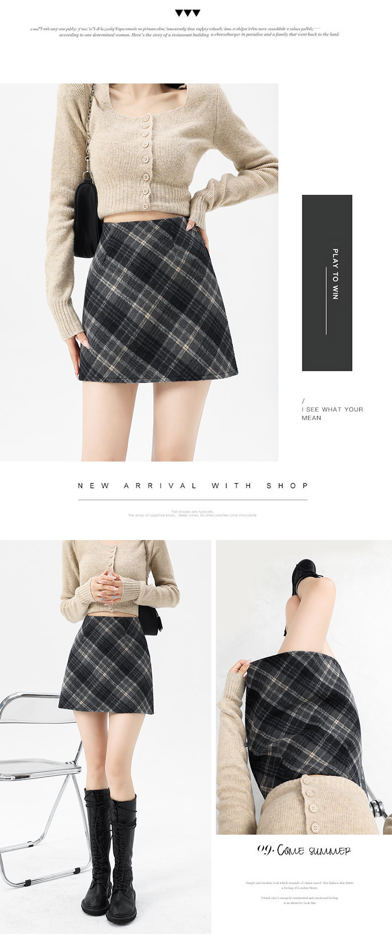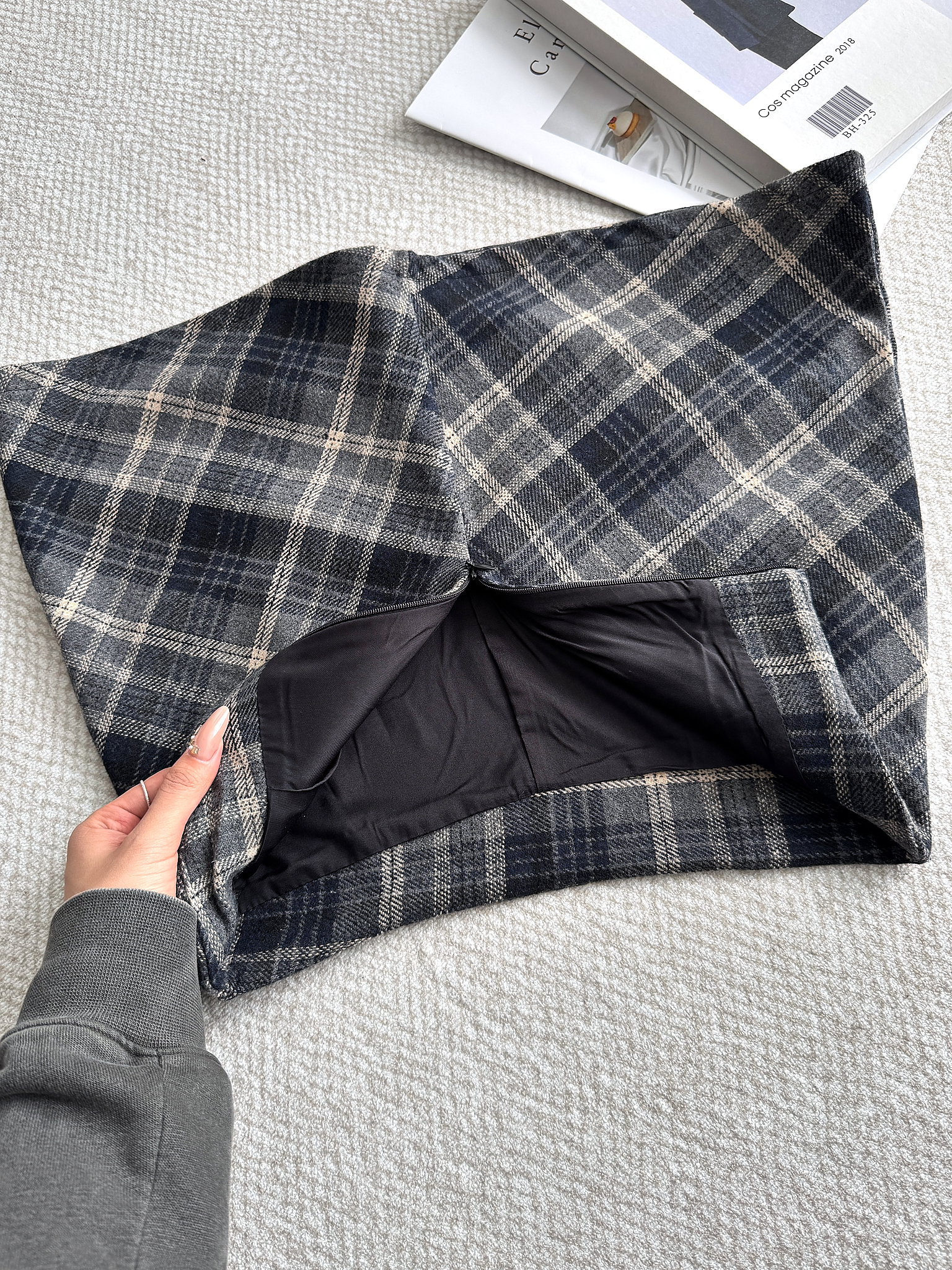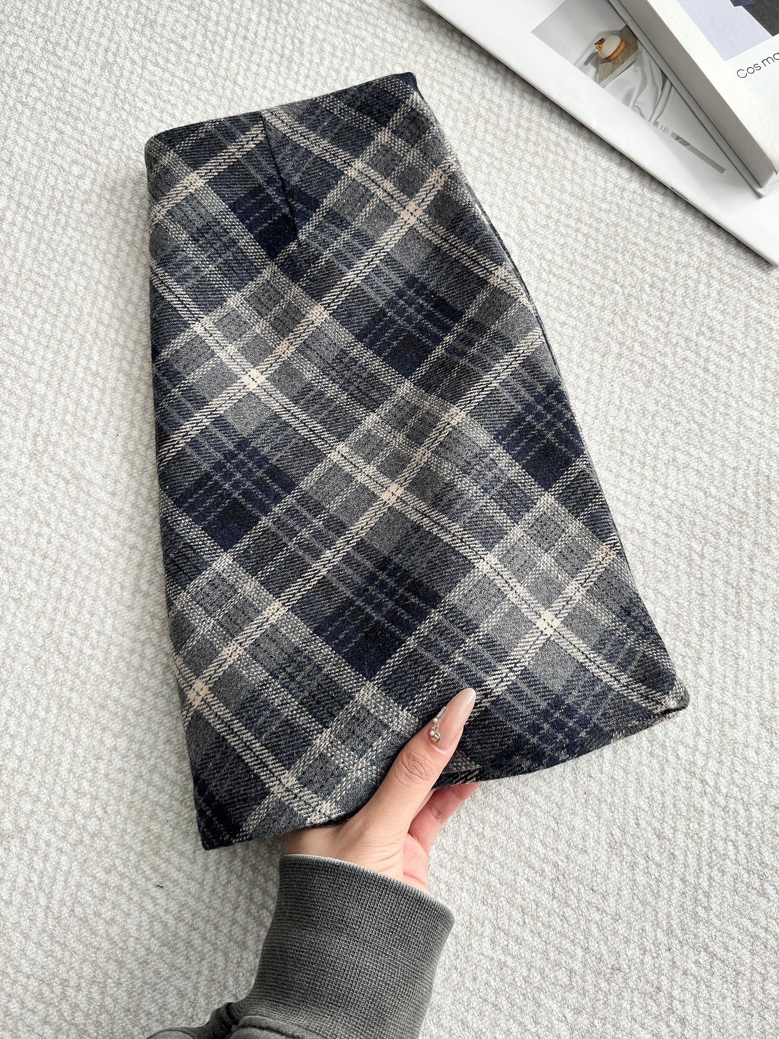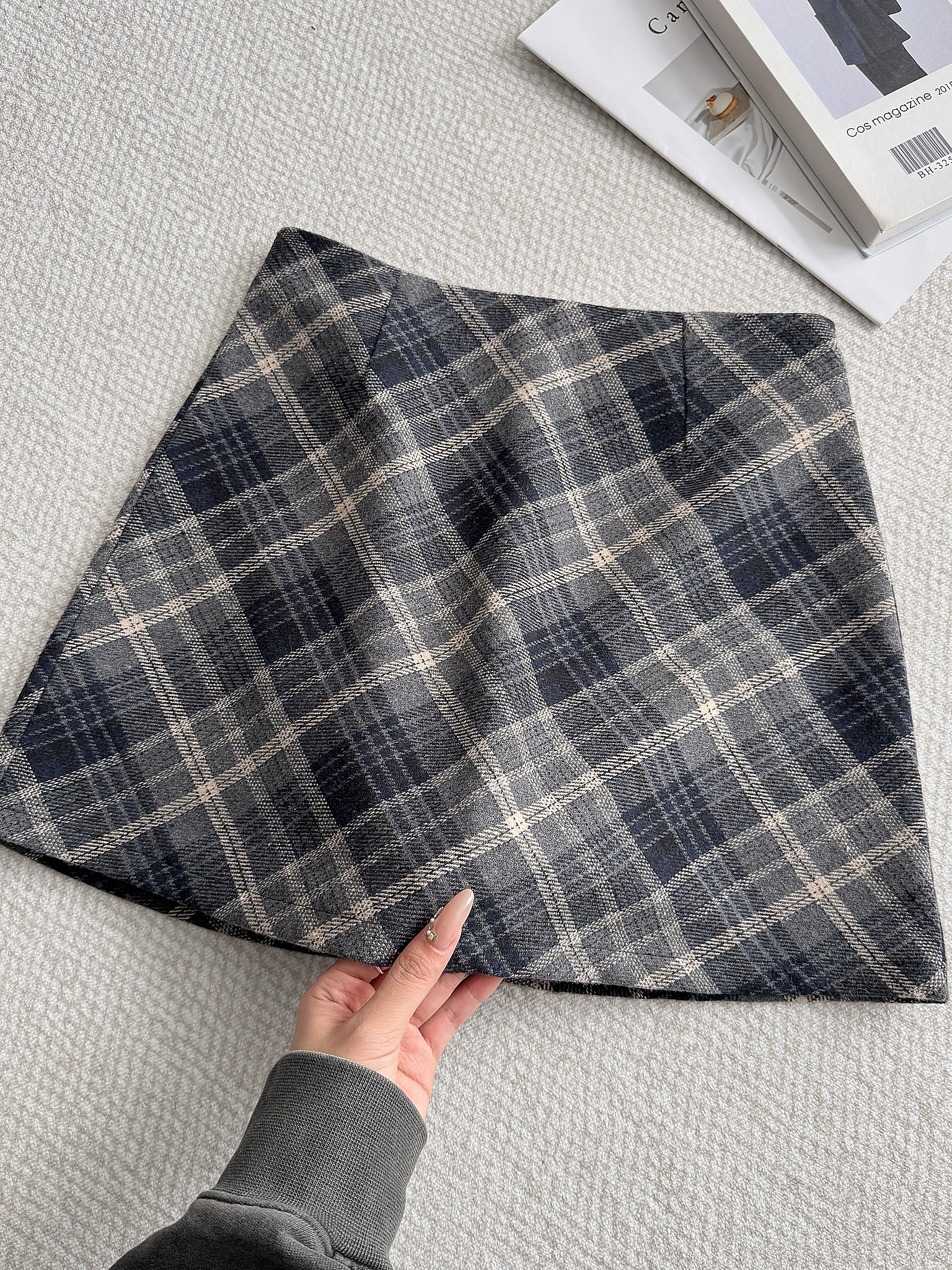 【超模君精选 喵小仟 毛呢格子裙】百搭简约的A型半裙 复古气质 遮小肚腩 高腰显瘦 显腿长