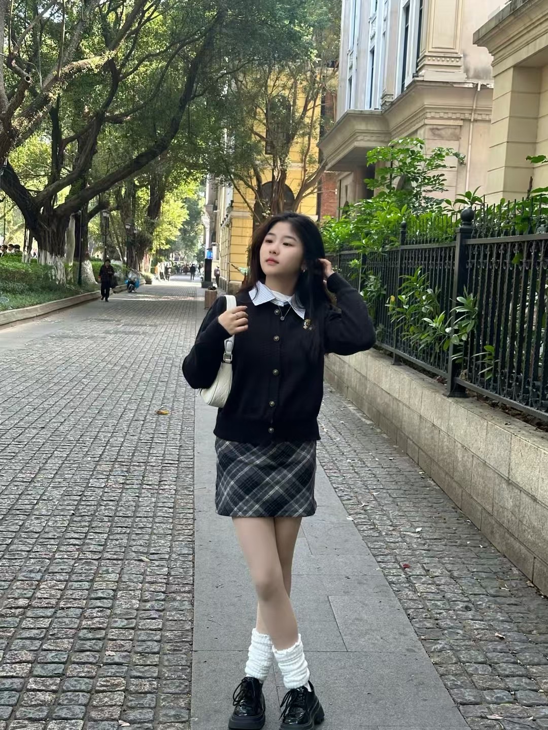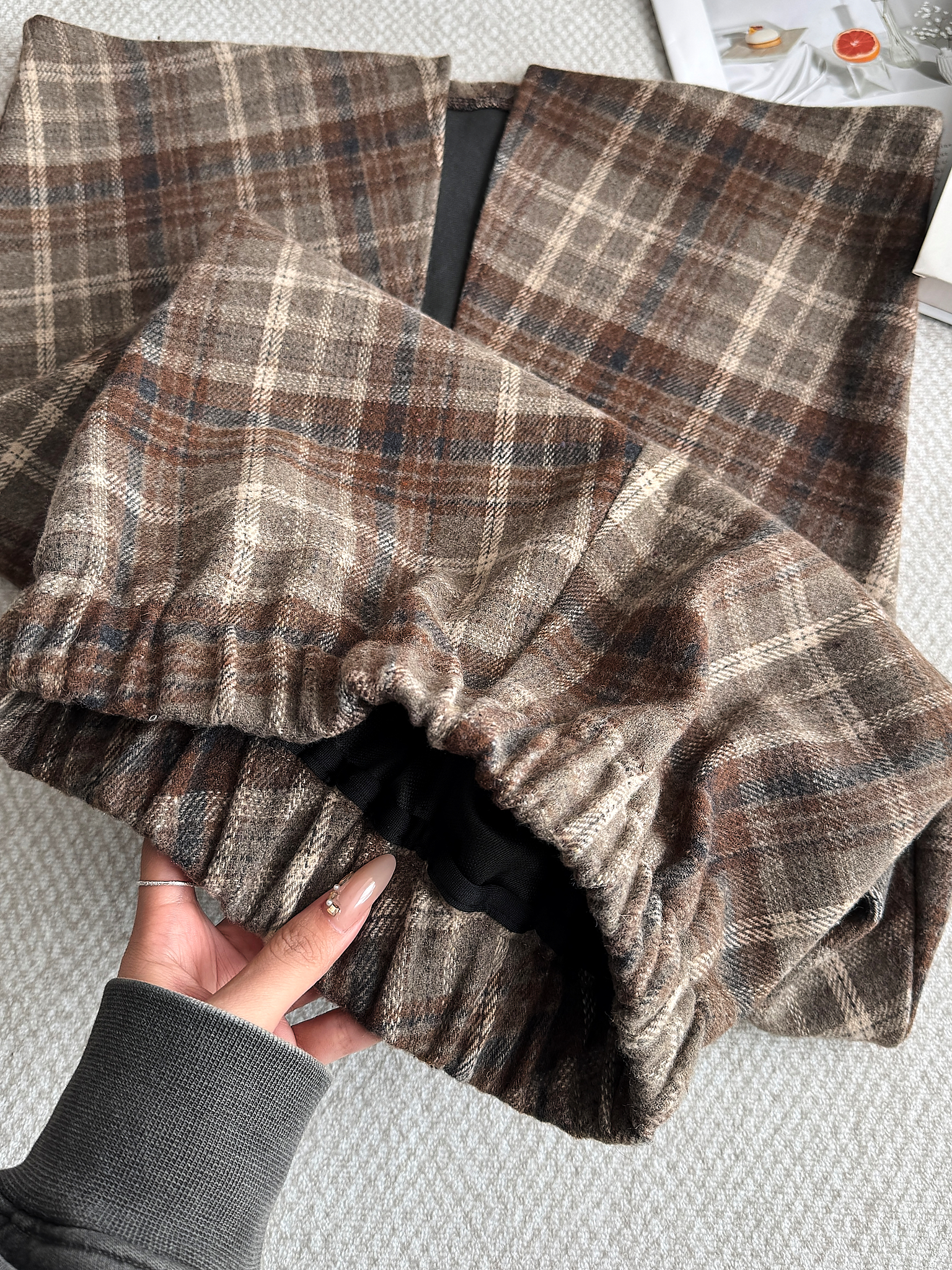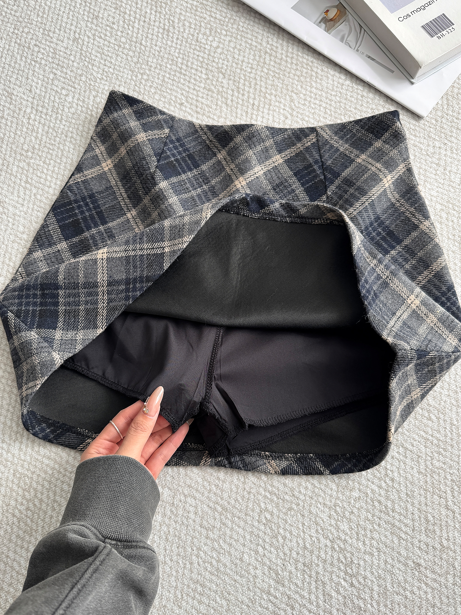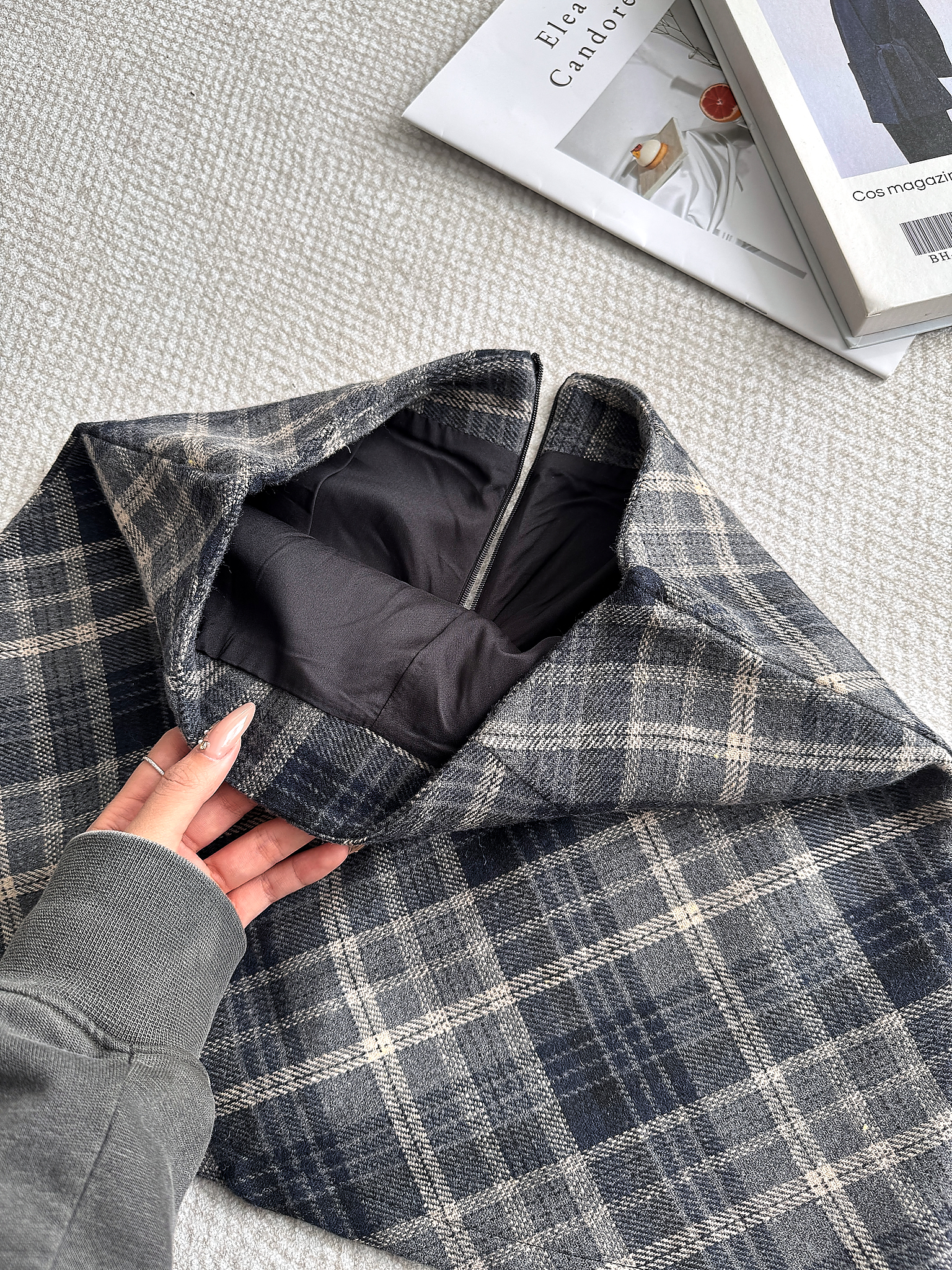 【超模君精选 喵小仟 毛呢格子裙】百搭简约的A型半裙 复古气质 遮小肚腩 高腰显瘦 显腿长