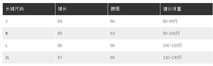 半身短裙建议体重 S 80-95斤 M95-110斤 L110-125斤 XL 125-140斤