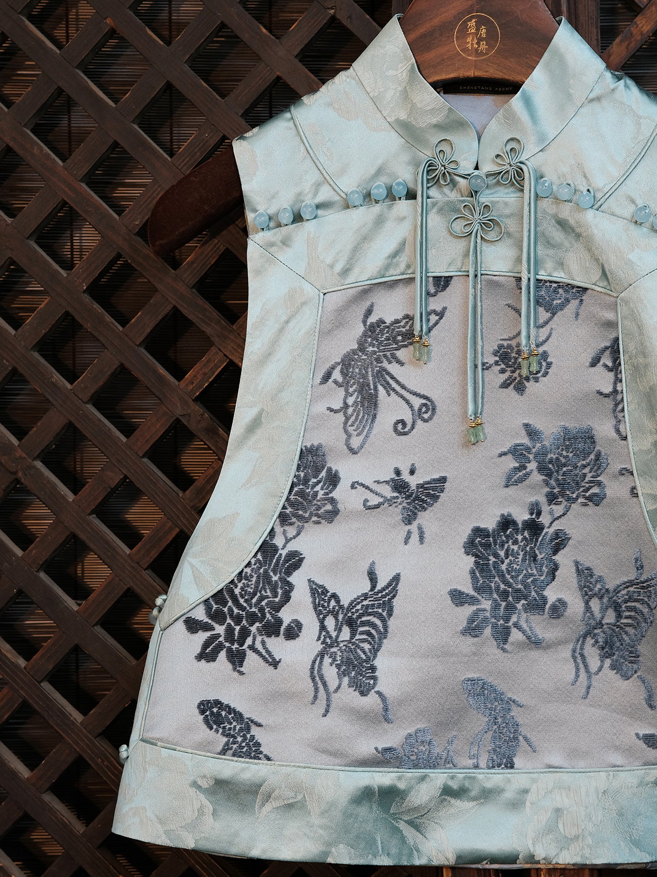 盛唐牡丹|蝶恋花漳缎花扣坎肩