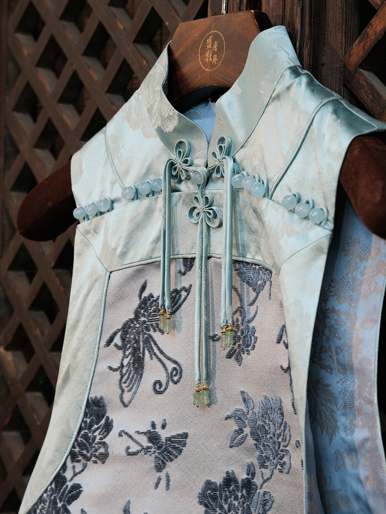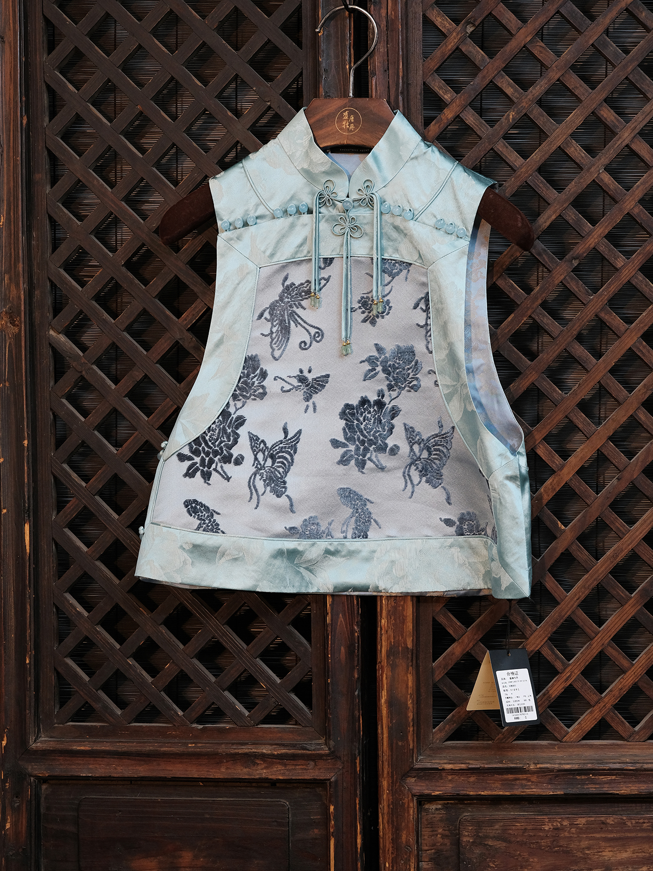 盛唐牡丹 |花锦缎喜鹊纹双面穿马甲