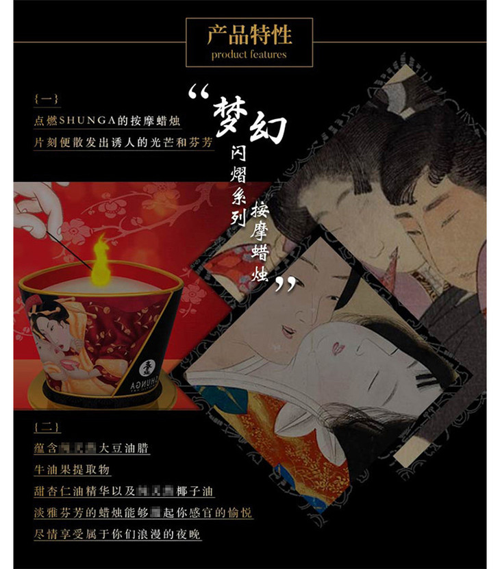 【经典爆款】加拿大SHUNGA春画 低温按摩香熏蜡烛情趣油30ml
