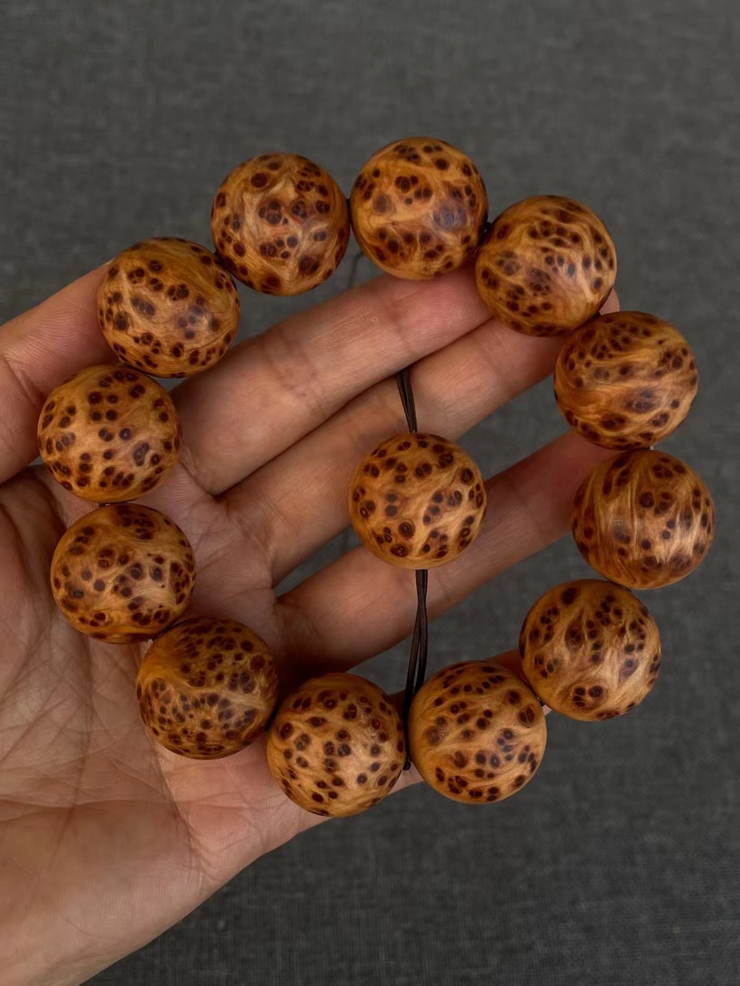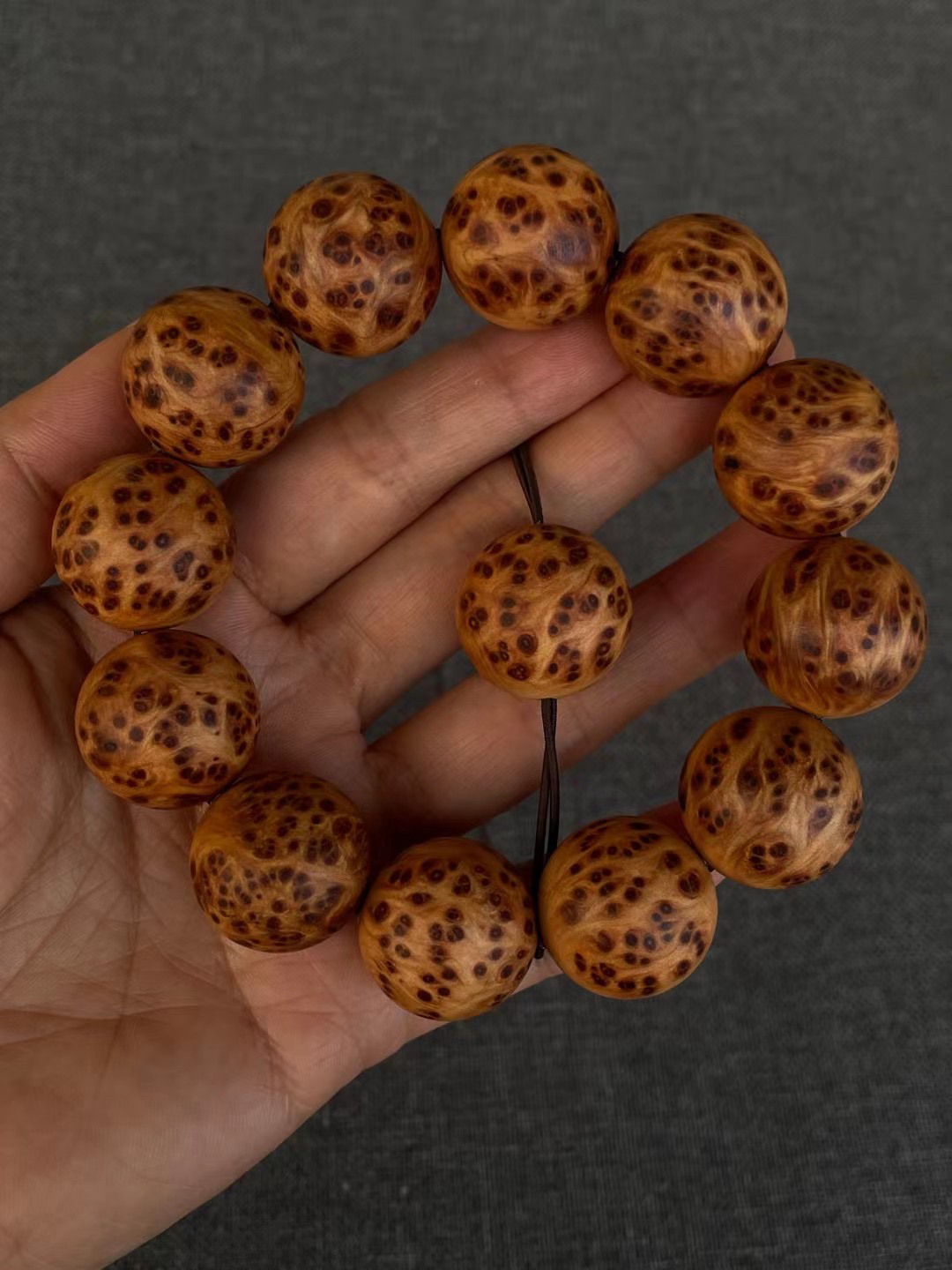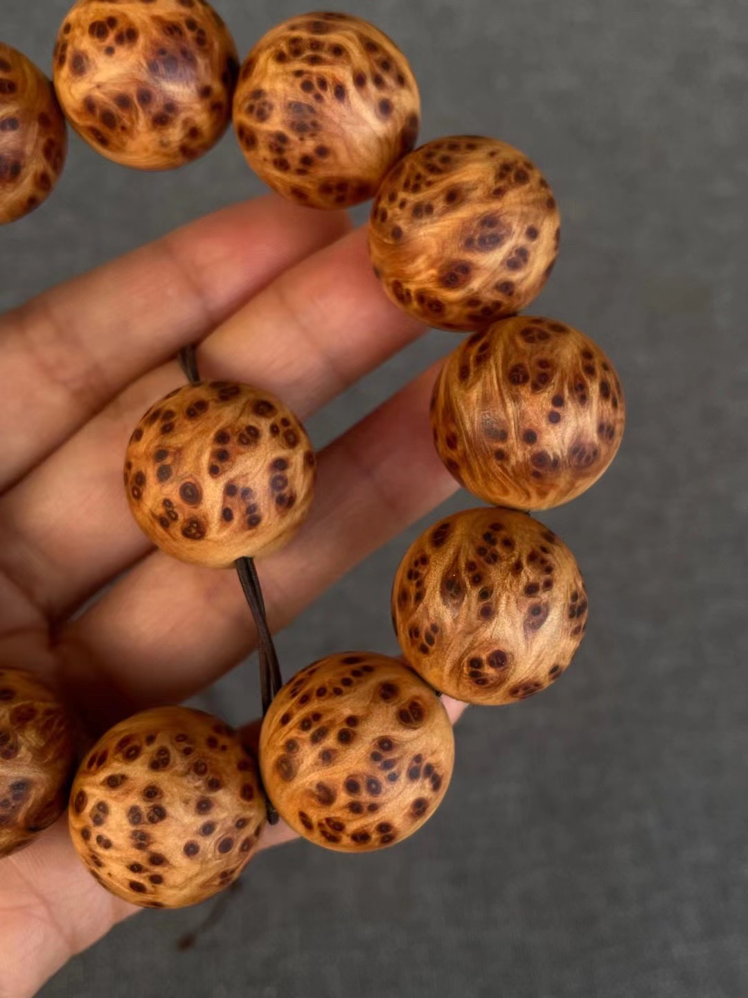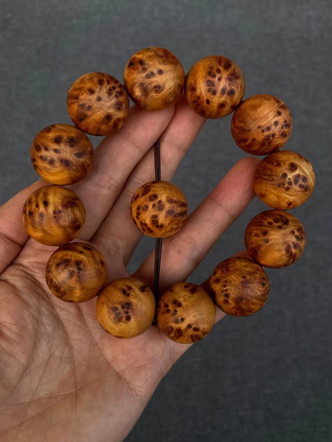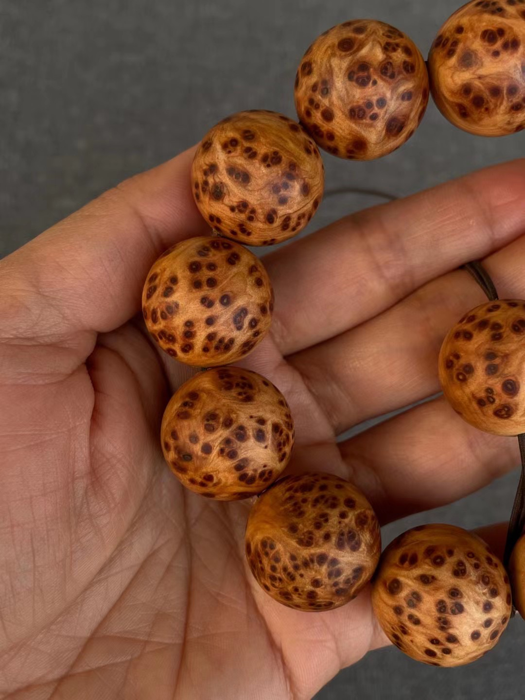 太行崖柏榴老料,2.0x12颗,满小雀眼,底色干净,榴点密集,香味浓郁,品质如图,实属精品,非常少见仅一串 自然光实拍.尾图反面
