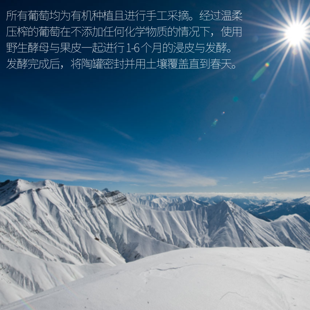 高加索国家格鲁吉亚被认为是葡萄酒的发源地,葡萄酒娘在在这里保持着传统技艺:将葡萄带皮放入名为Qvevri的大陶罐中埋入地下,使用野生酵母进行发酵。随着自然酒之风的兴起,越来越多的人注意到这片千百年来一直保持自然传统酿造手法的产区。2019年起,格鲁吉亚自然酒的风便吹到了美国、日本、丹麦等地的自然酒小酒馆与餐厅,现如今我们把这股高加索山脉的风也带到了中国。以第比利斯为中心,北可观外高加索雪山森林草甸,南可览岩石城镇半沙漠地貌,西可至黑海之滨,东可达红酒之乡卡赫季Kakheti。湖泊、城堡、老城、教堂,在格鲁吉亚应有尽有。极致的自然风光,足以让格鲁吉亚成为旅游胜地,事实上,来格鲁吉亚徒步和旅游的欧洲人非常之多,尤其是北部高加索山脉地区,随处可见背着登山包、带着全套露营装备的年轻男女。但格鲁吉亚真正的魅力在于,除了雪山、河流、草原、森林、碉楼、村庄之外,还有不少令人拍案叫绝的独特风景,而要完成这些完全不同的景致间的切换,只需要几小时的车程。