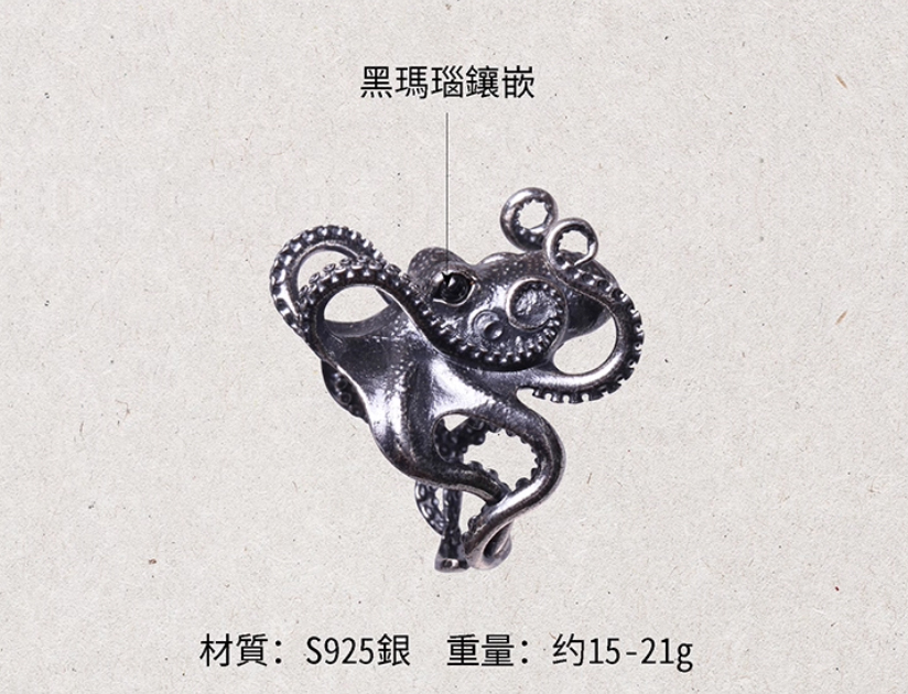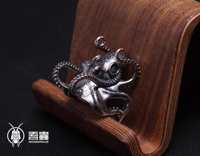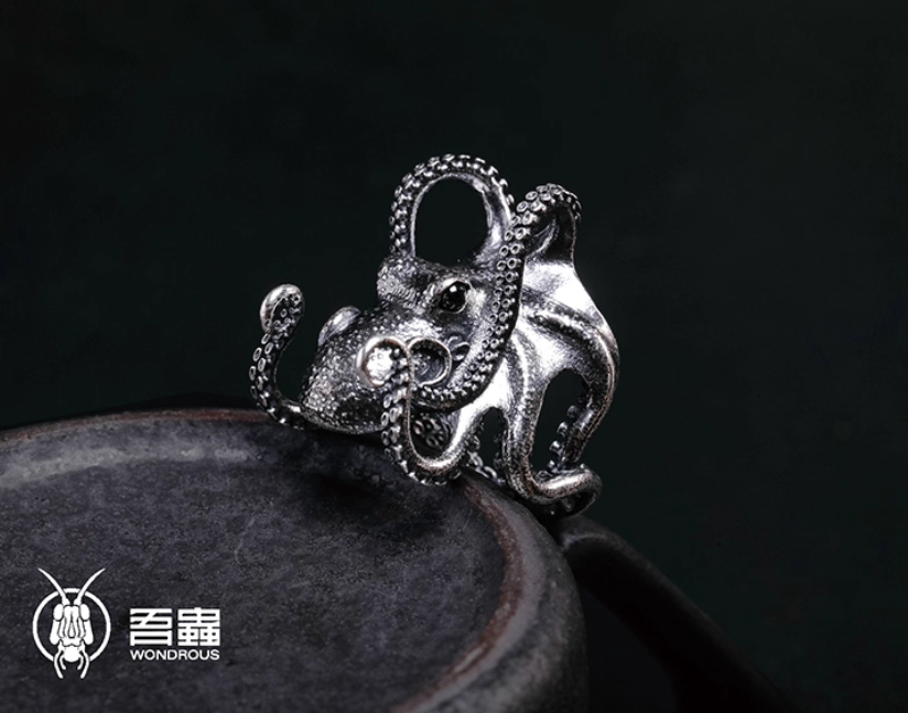 吾蟲-章鱼戒指 S925银 个性配饰情侣礼物【官方授权 48小时发货】