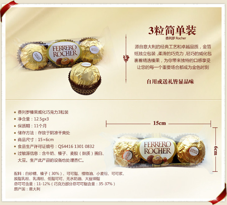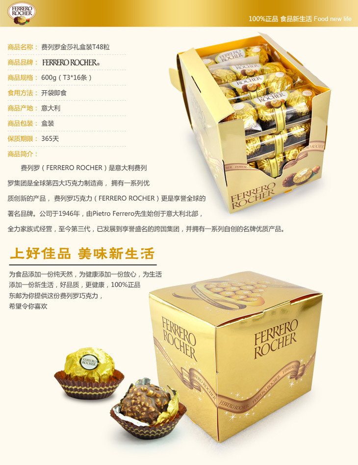 *金莎意大利费列罗 港版意大利巧克力48颗中秋礼盒
