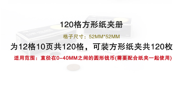 方形纸夹册,古钱币,现代机制币通用,共120枚!需配合纸夹!