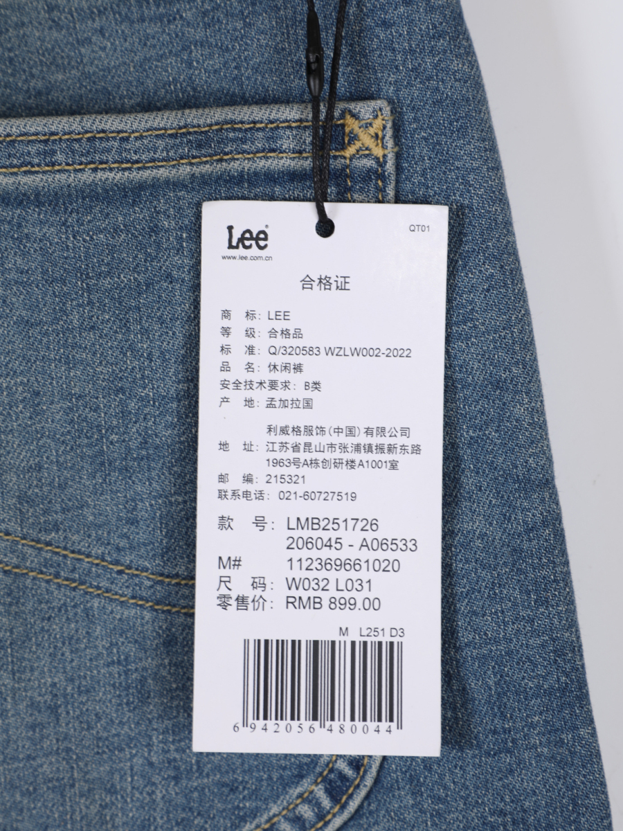 【云粉节】【新品】6楼LEE男式牛仔裤吊牌价899元
