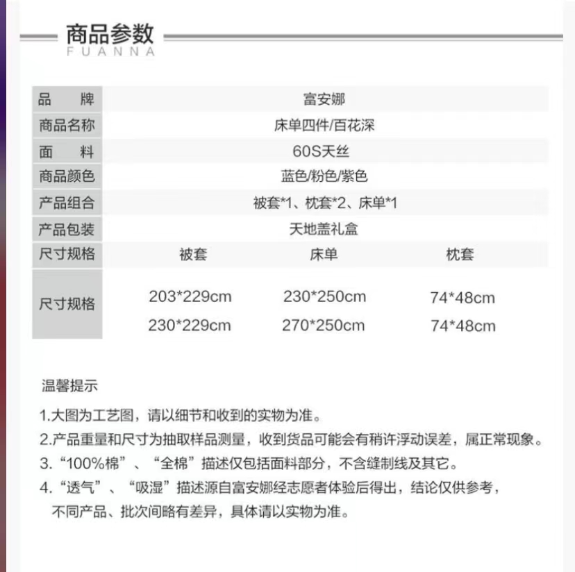 【春上新】10楼 富安娜 天丝四件套-百花深 吊牌价3680-3980元 活动价1399-1499元