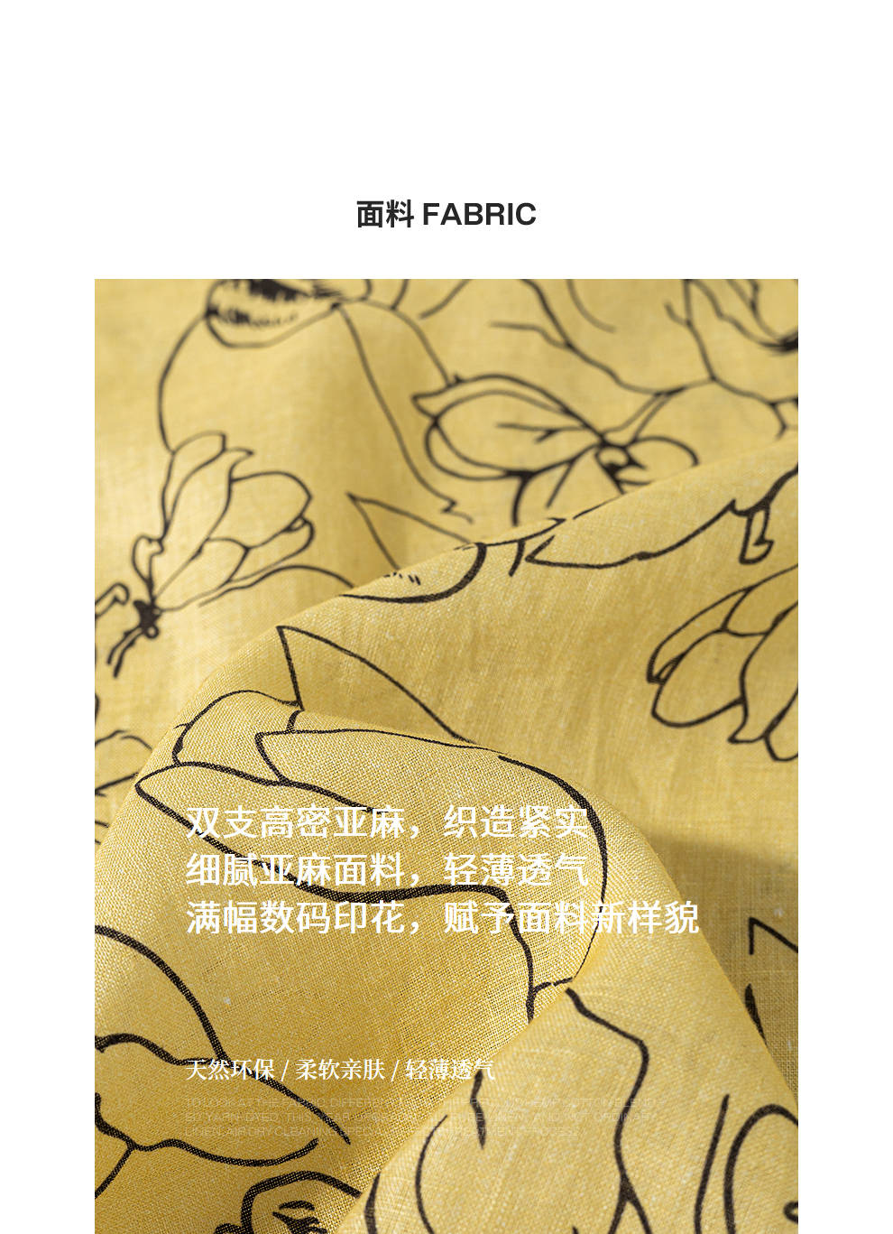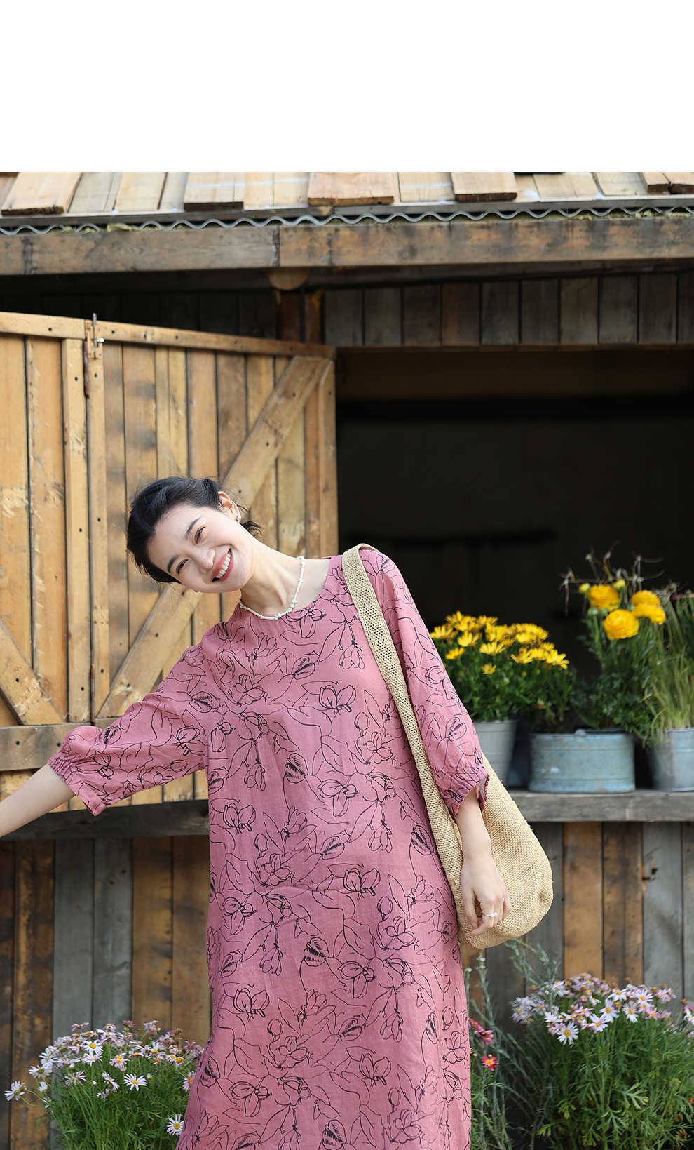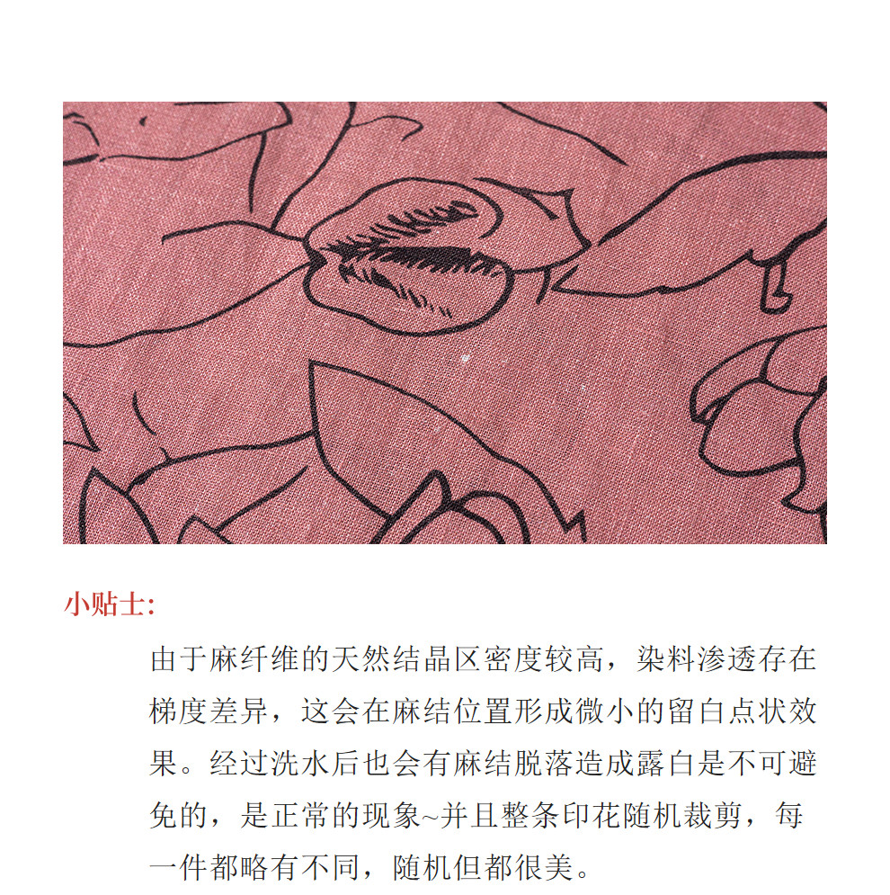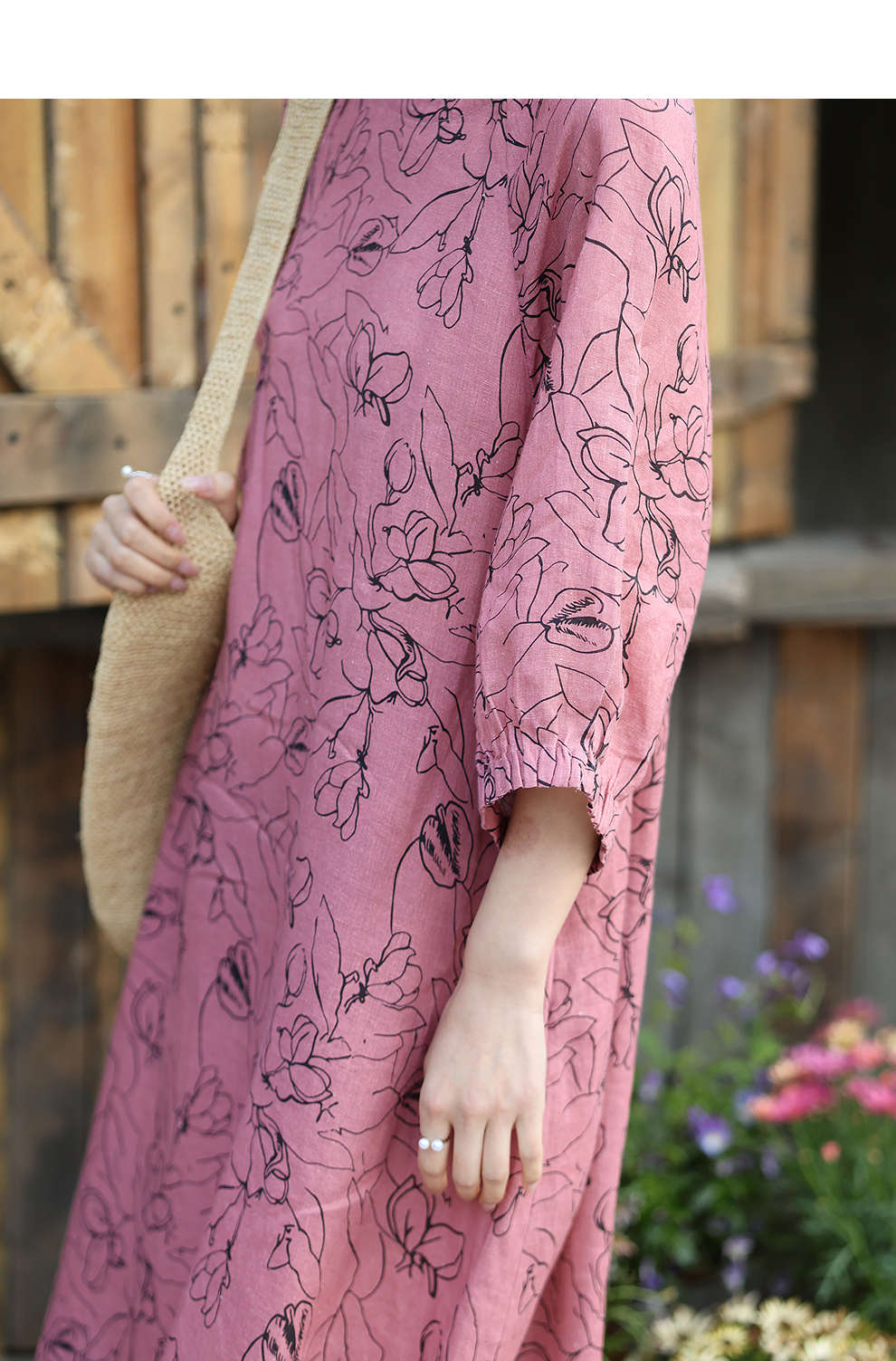 绽放旅行女装269朵/双支数亚麻抽象线条印花插肩袖立体袖口连衣裙