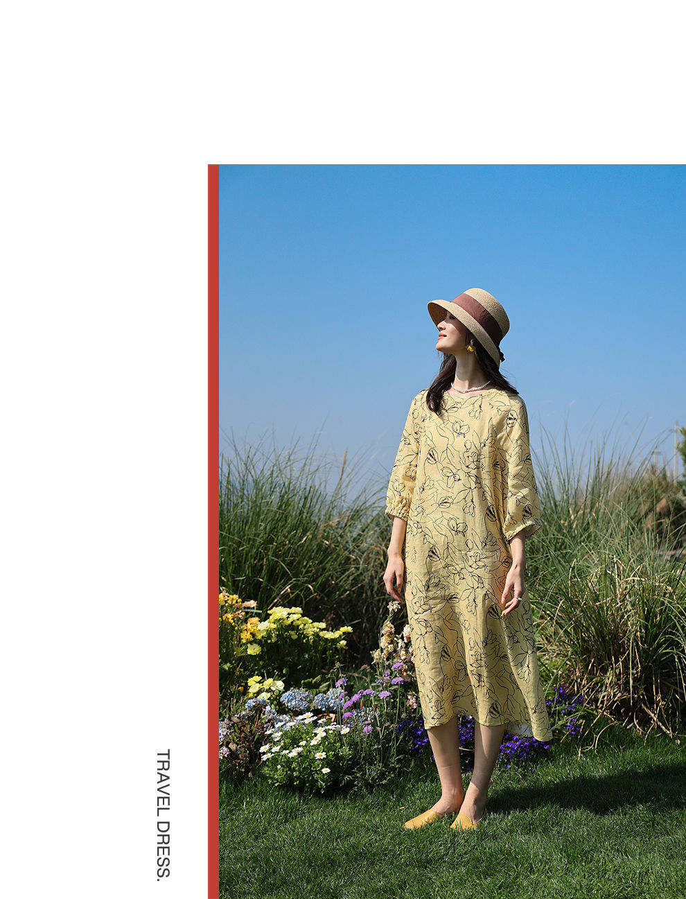 以天然亚麻为载体,融合热烈色彩与自在剪裁为身在城市、心怀远方的女性提供兼具美学与舒适的旅行着装