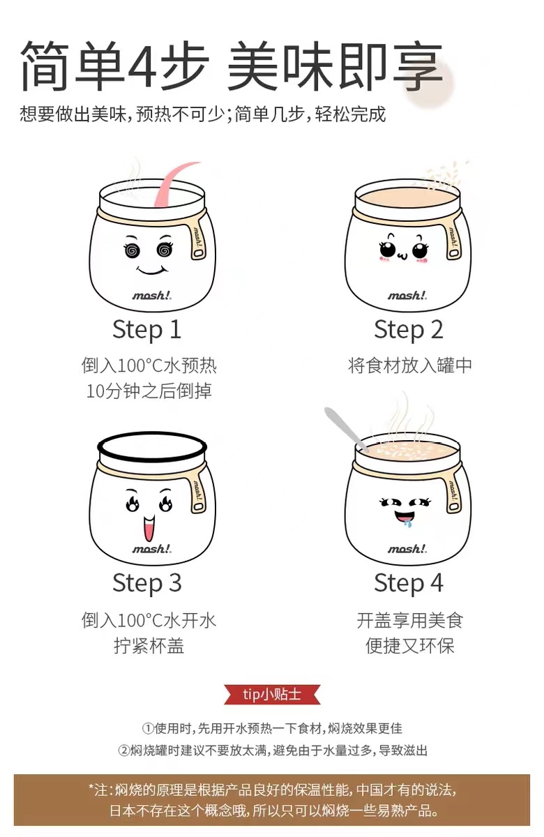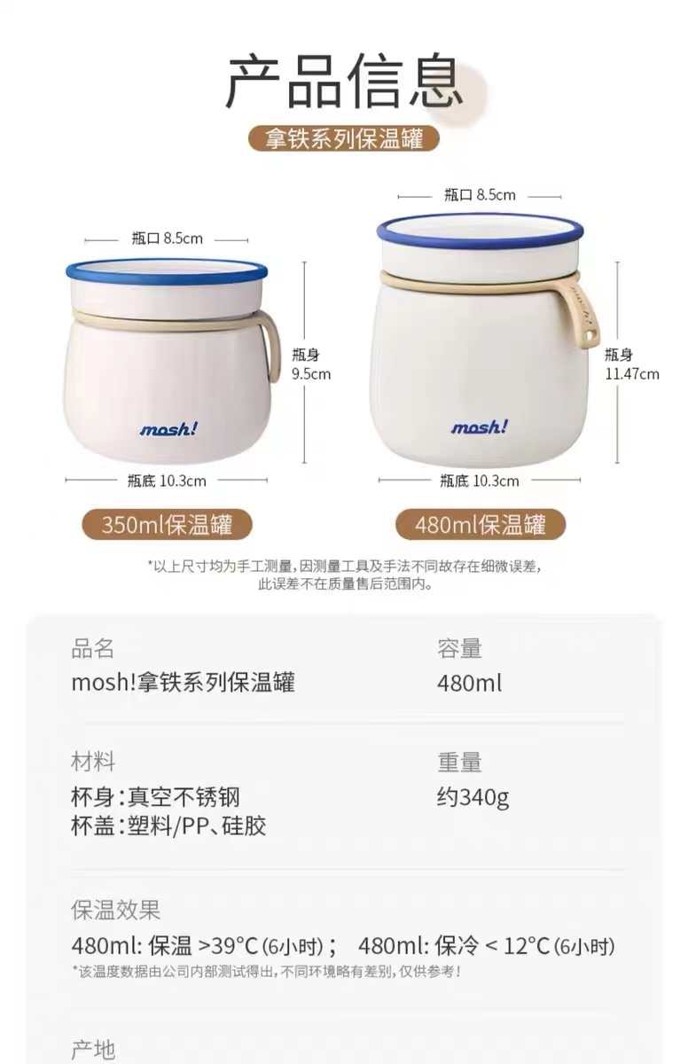 日本mosh便携保温焖烧杯不锈钢焖烧罐480ml