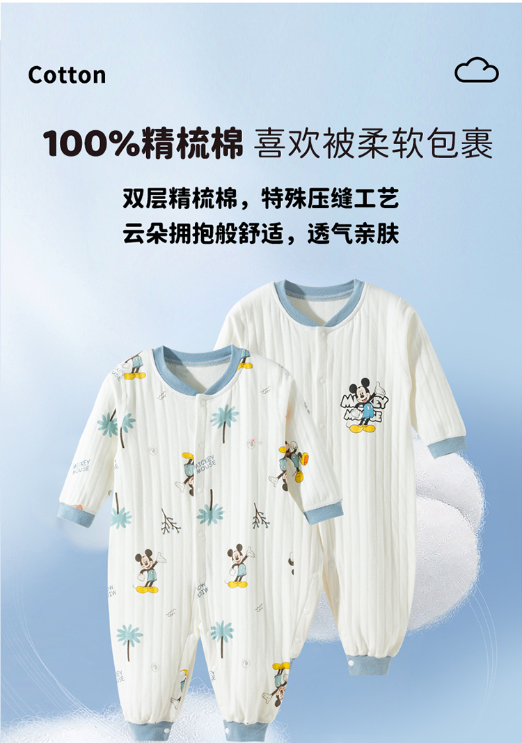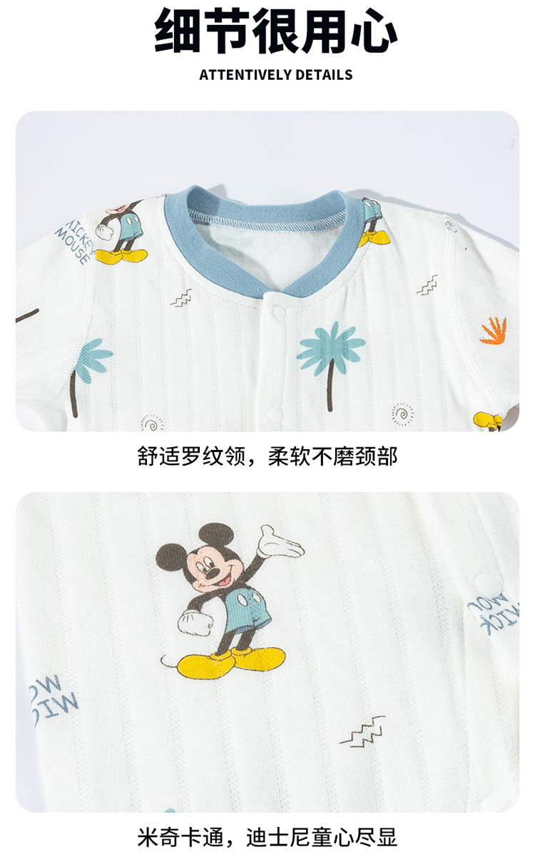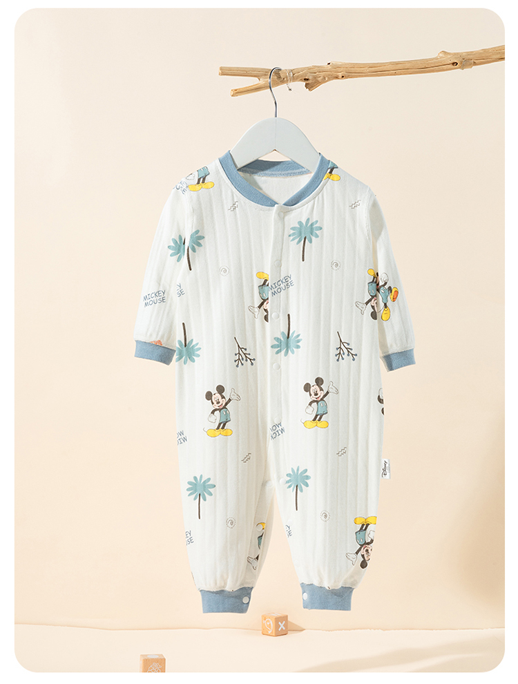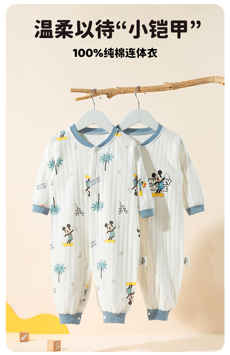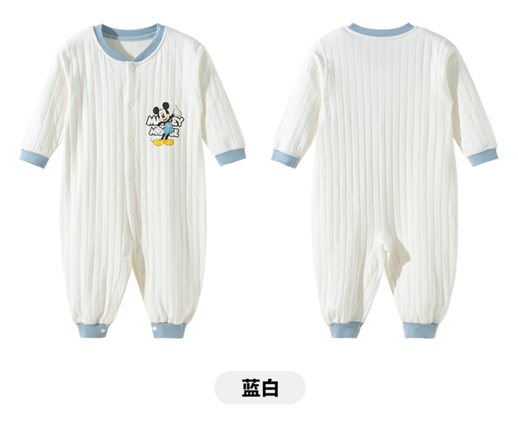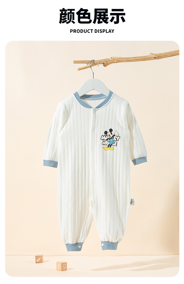 迪士尼2025秋季新款男宝前开连体衣纯棉竖条纹哈衣爬服男孩满月抱衣ZD3EL025