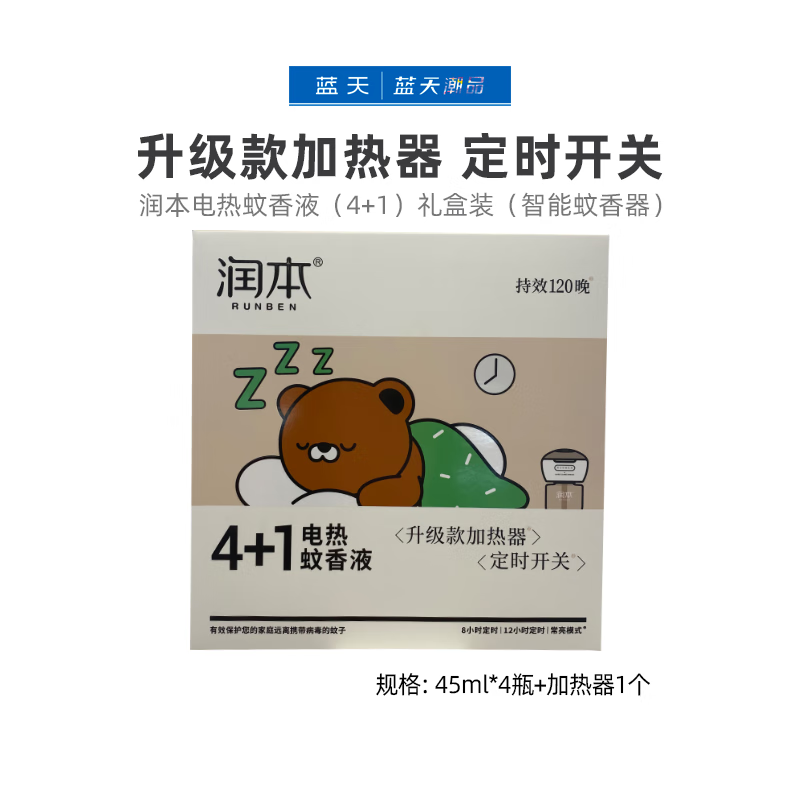 润本电热蚊香液(4+1)礼盒装(智能蚊香器)【21003816】