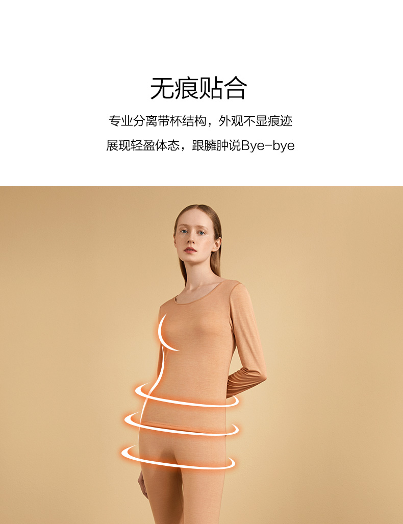 金三塔 真丝保暖圆领秋衣秋裤套女 免文胸轻薄内衣套 2NYFAD103