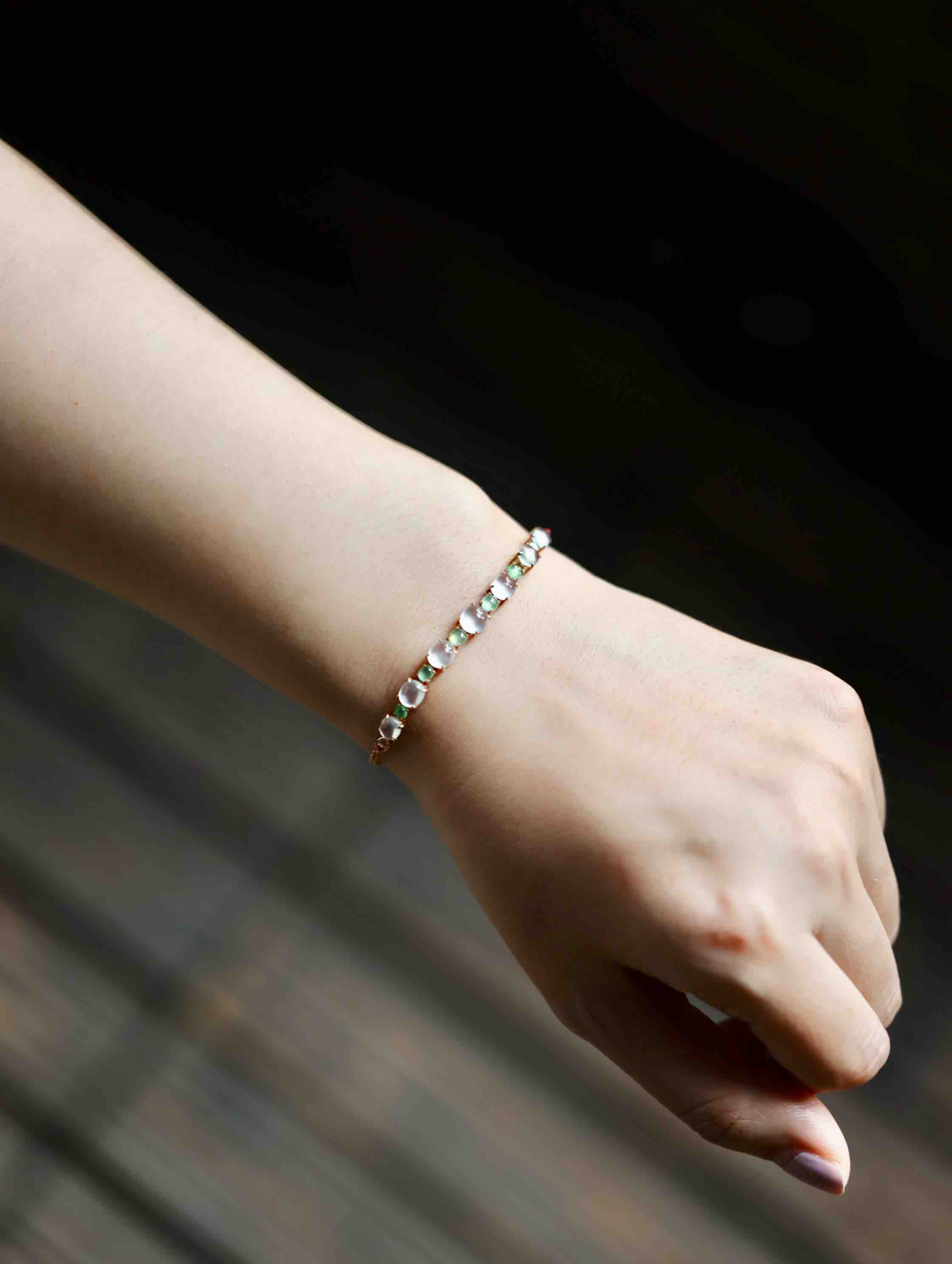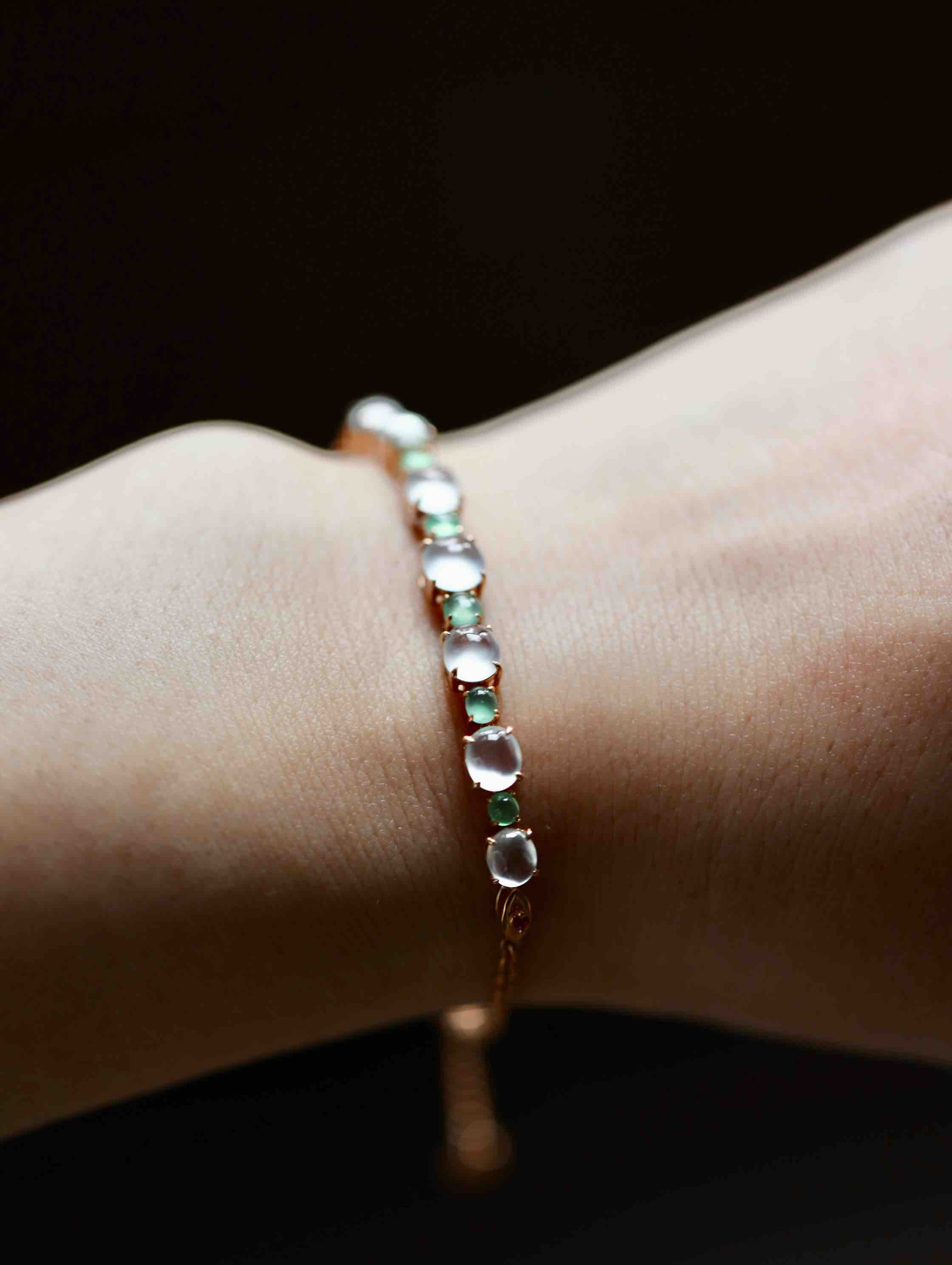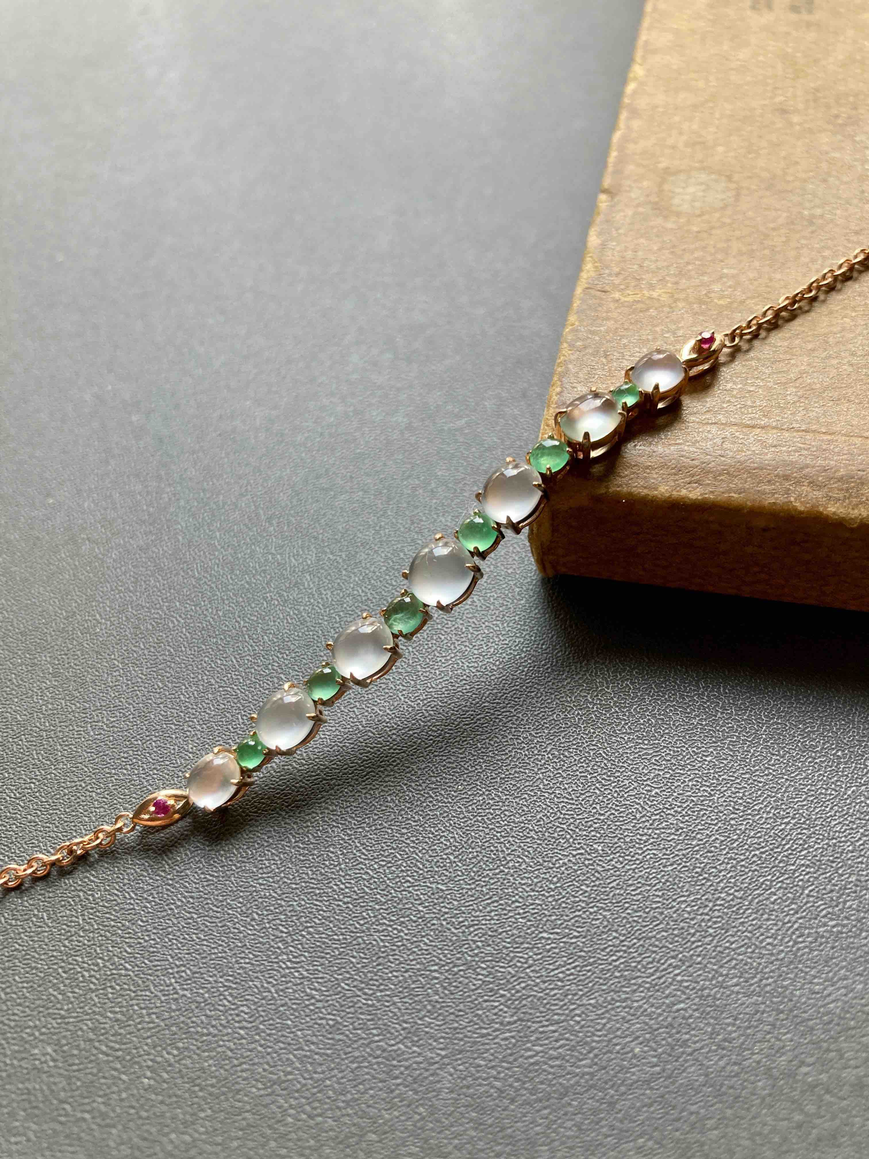 玻璃种翡翠蛋面手链18k玫瑰金碧玺镶嵌