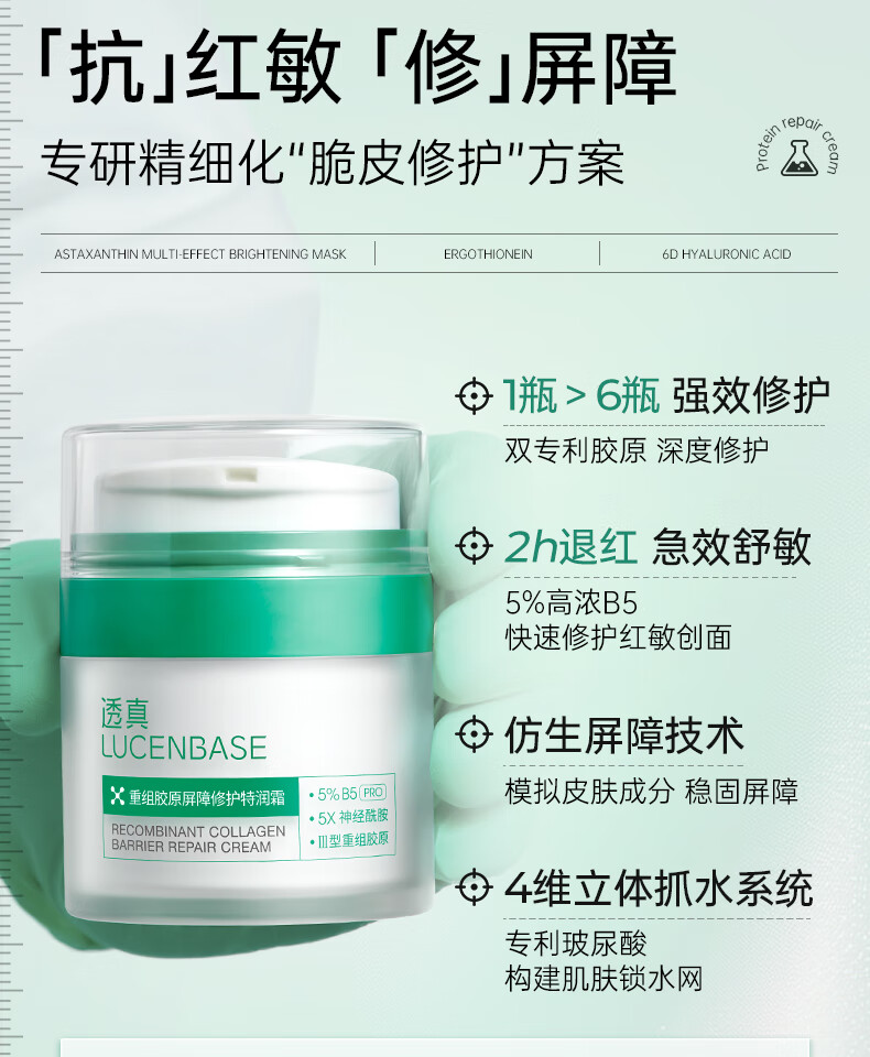 【抗红敏 修屏障】重组胶原屏障修护特润霜50g#透真重组胶原屏障修护面霜舒缓敏感屏障修护褪红修复维稳补水保湿
