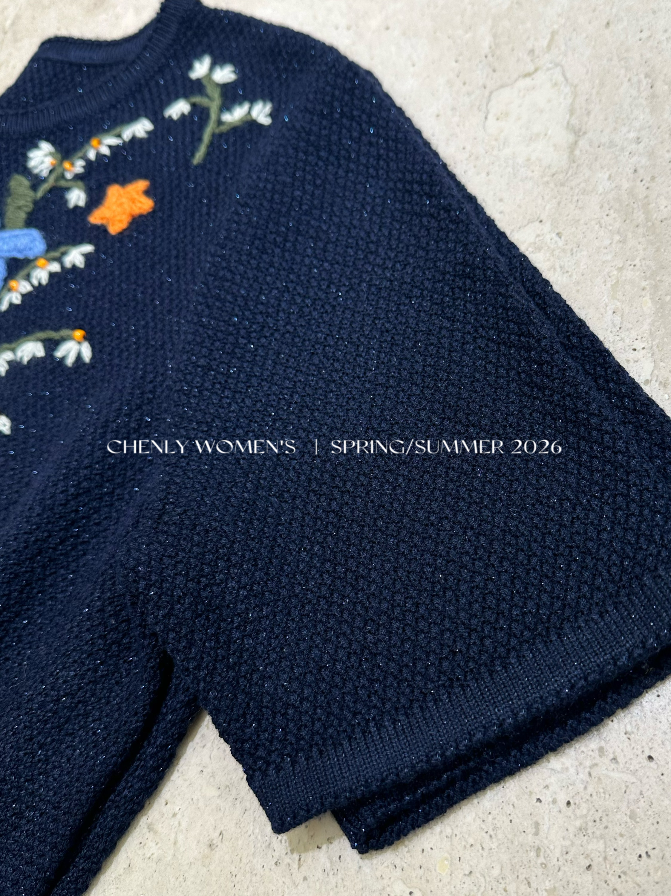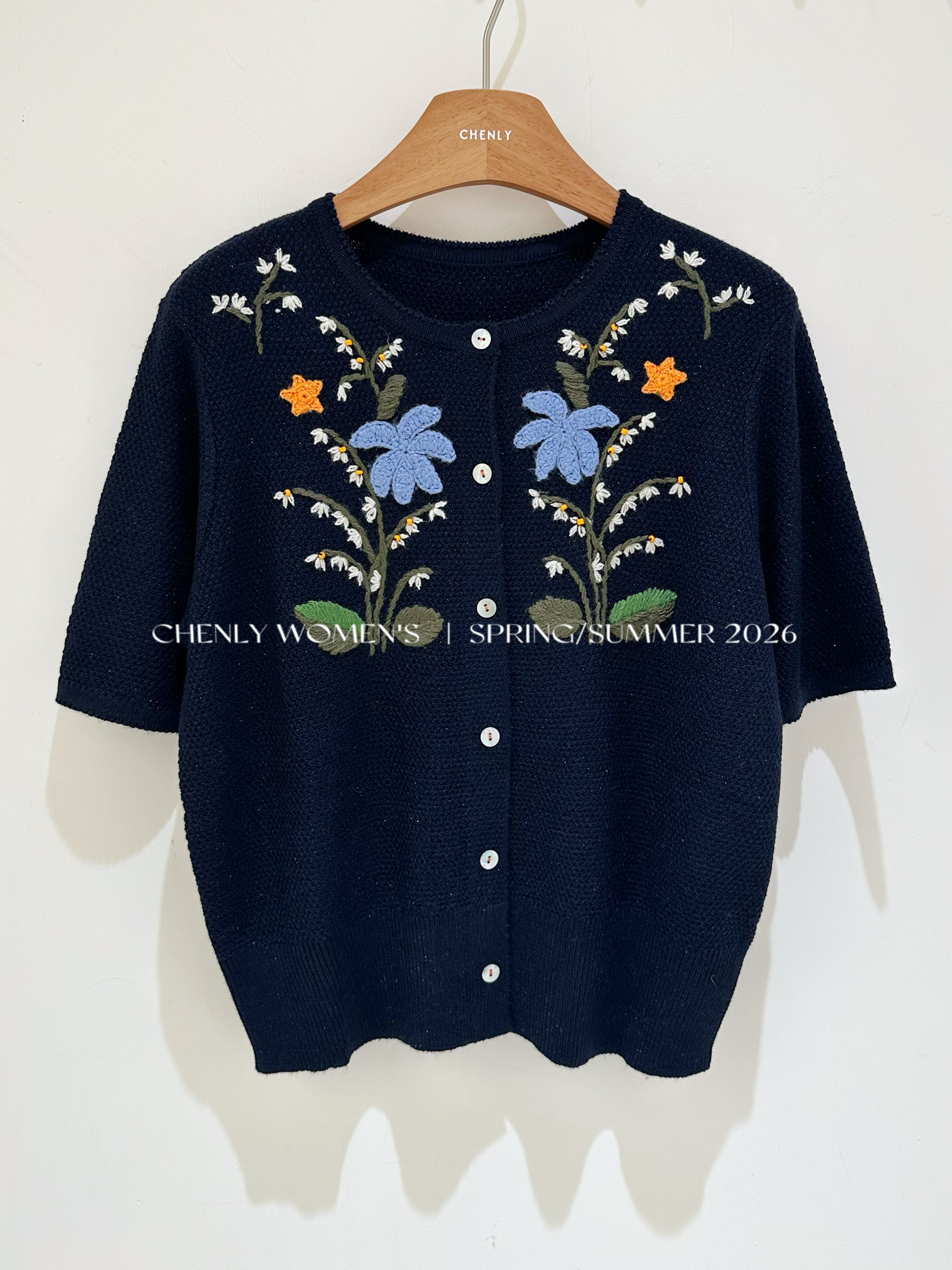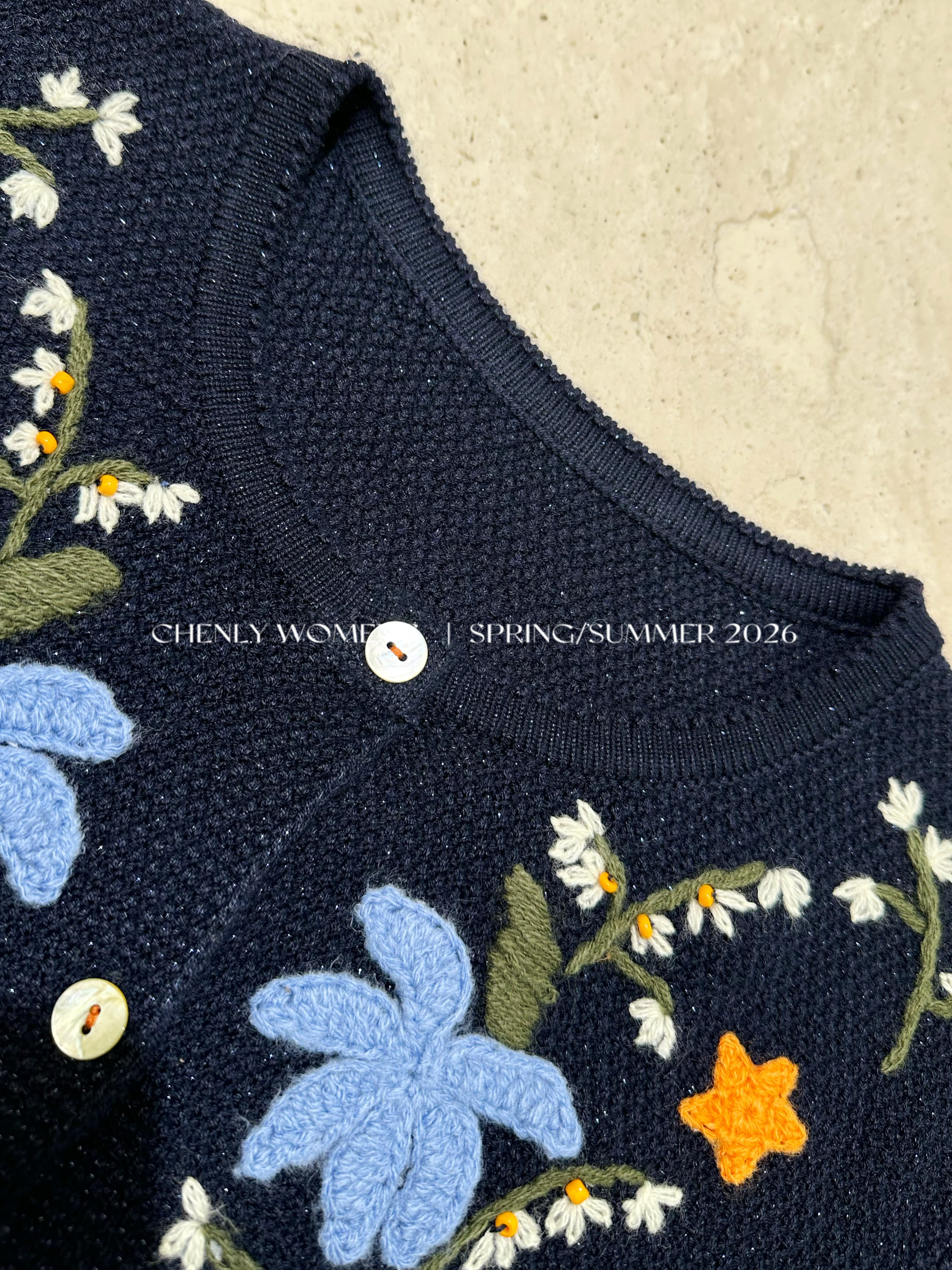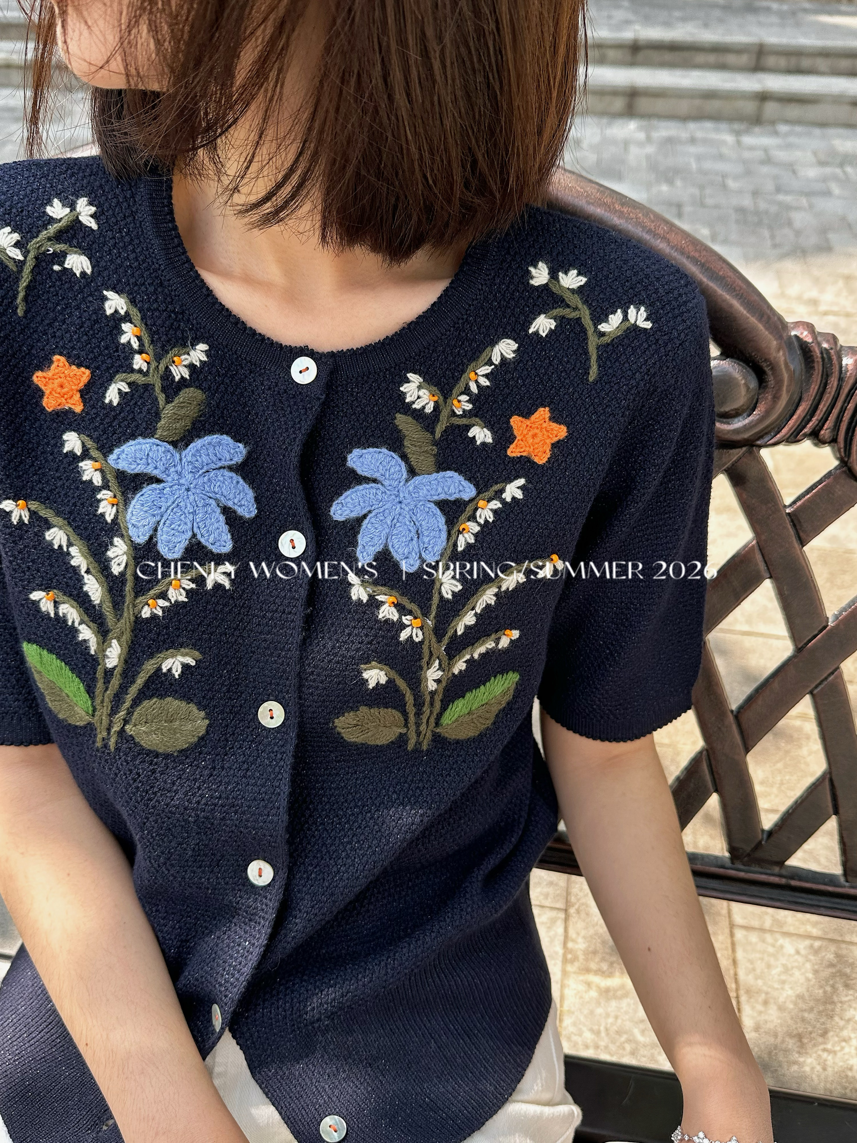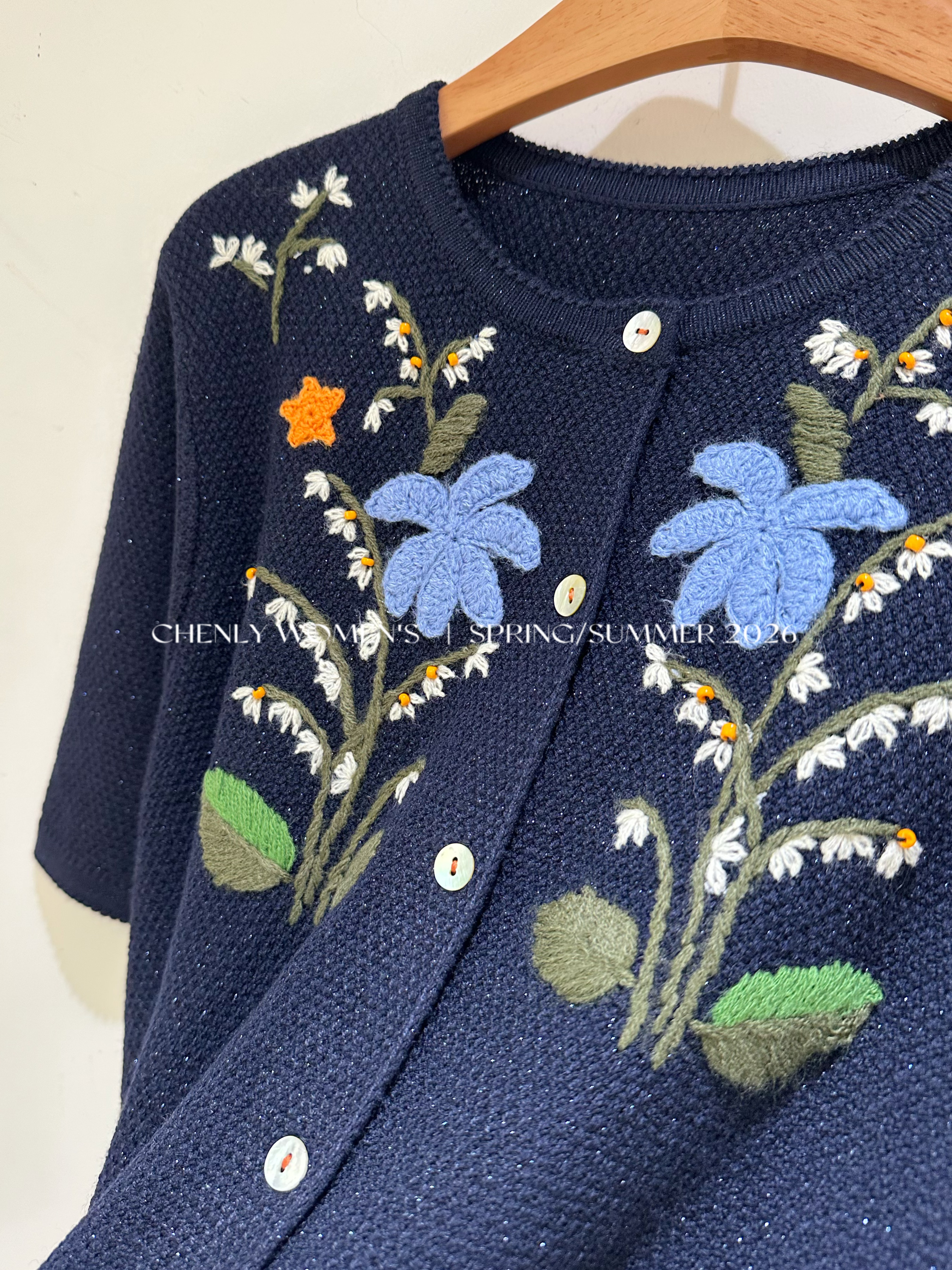 尘衣|26SS钉珠手绣铃兰花毛织短袖