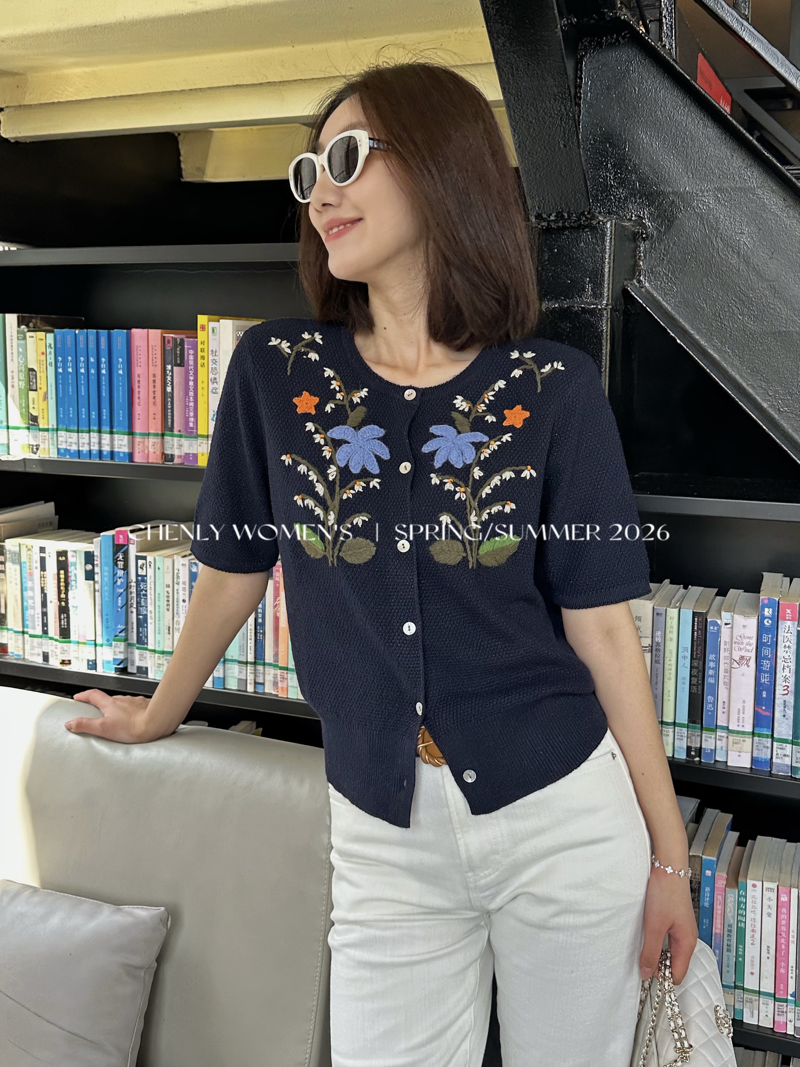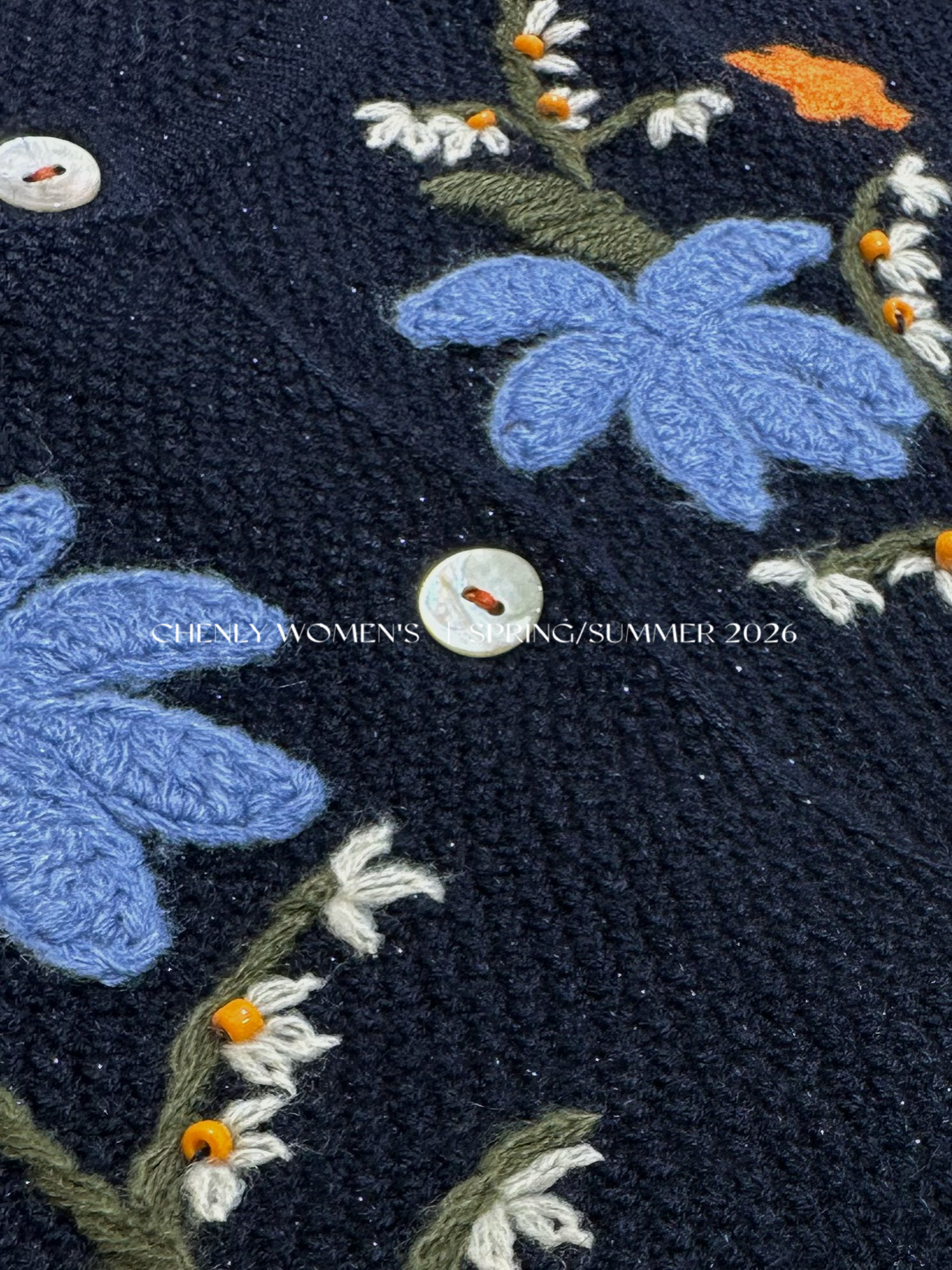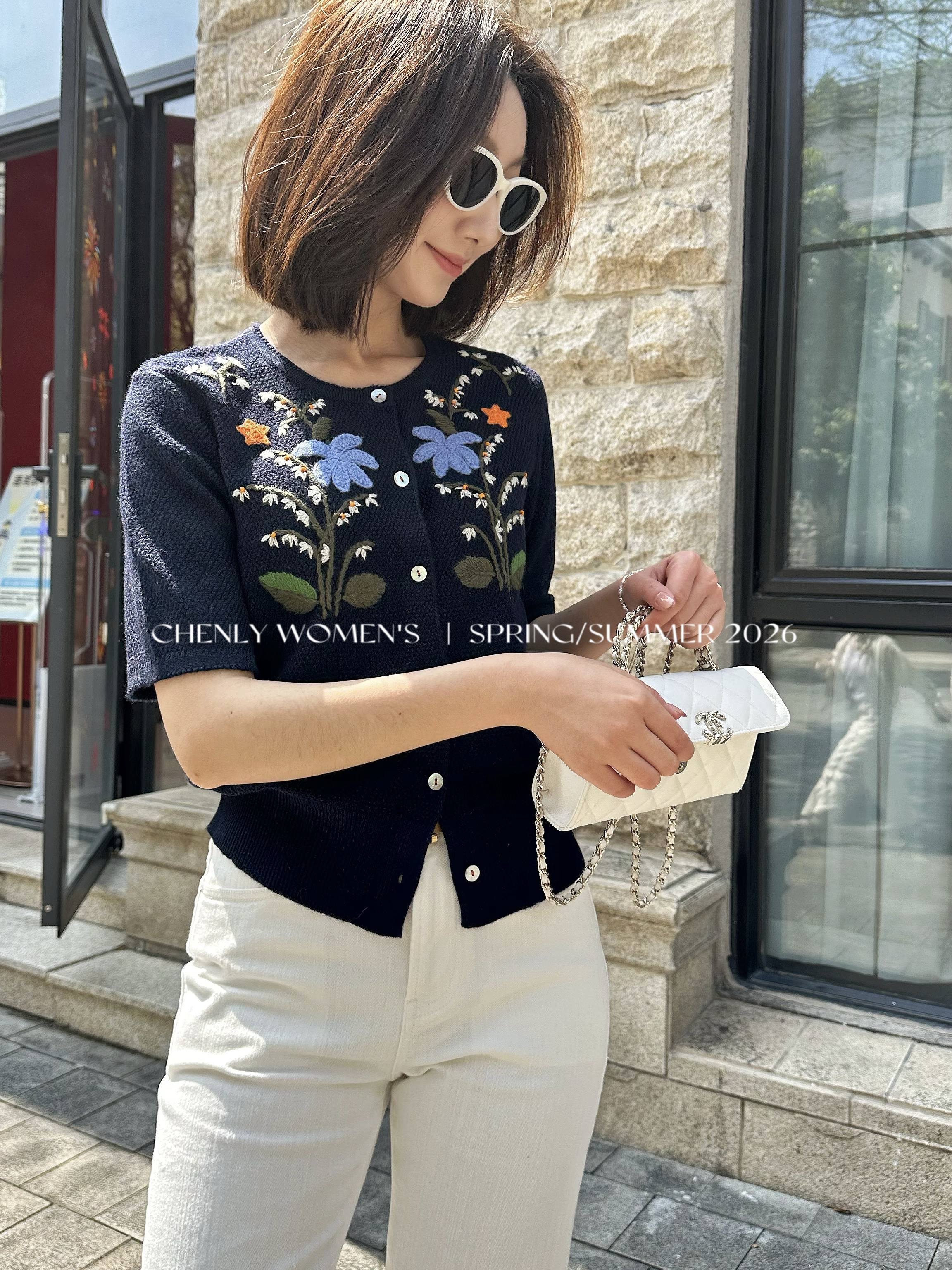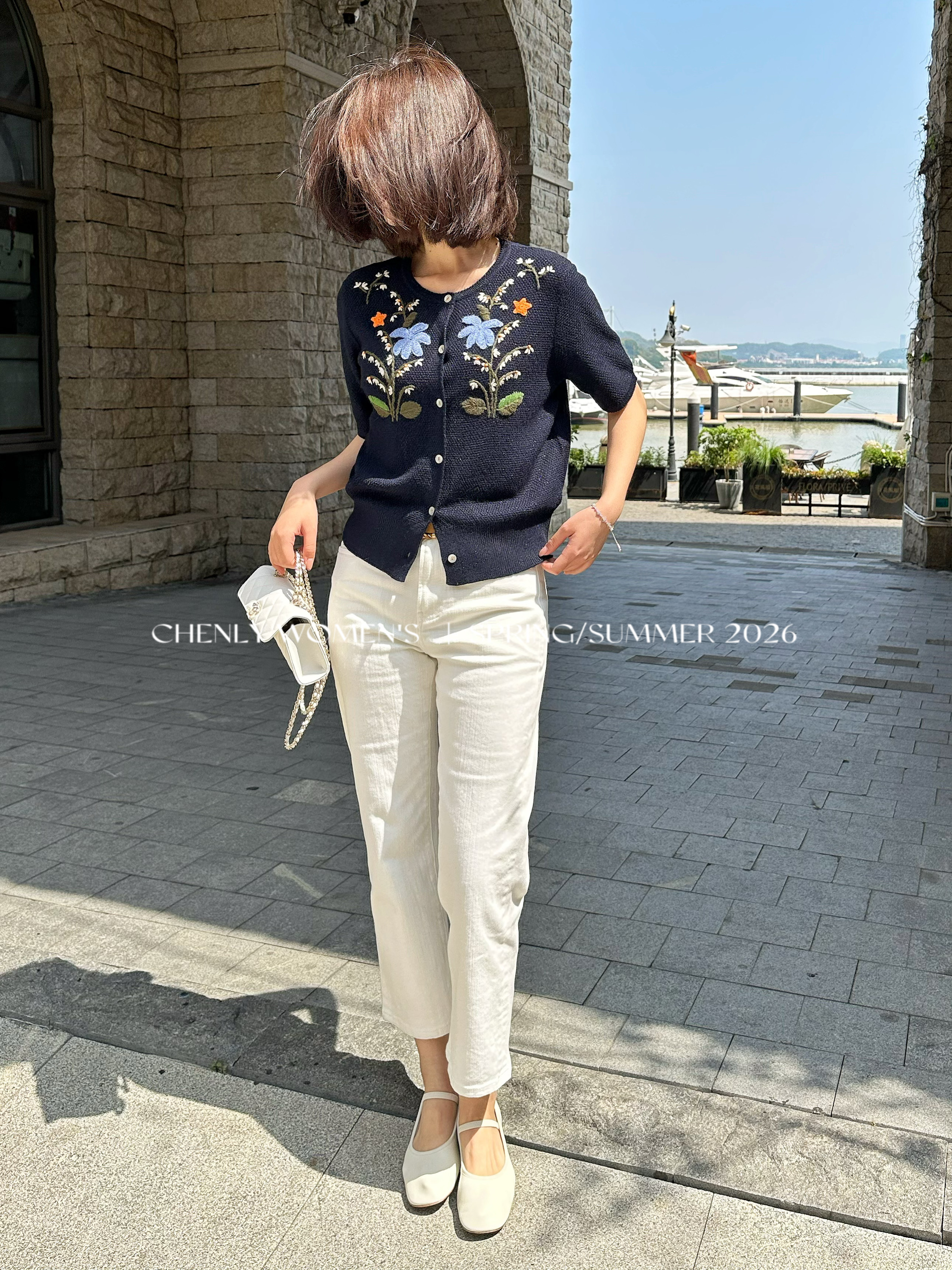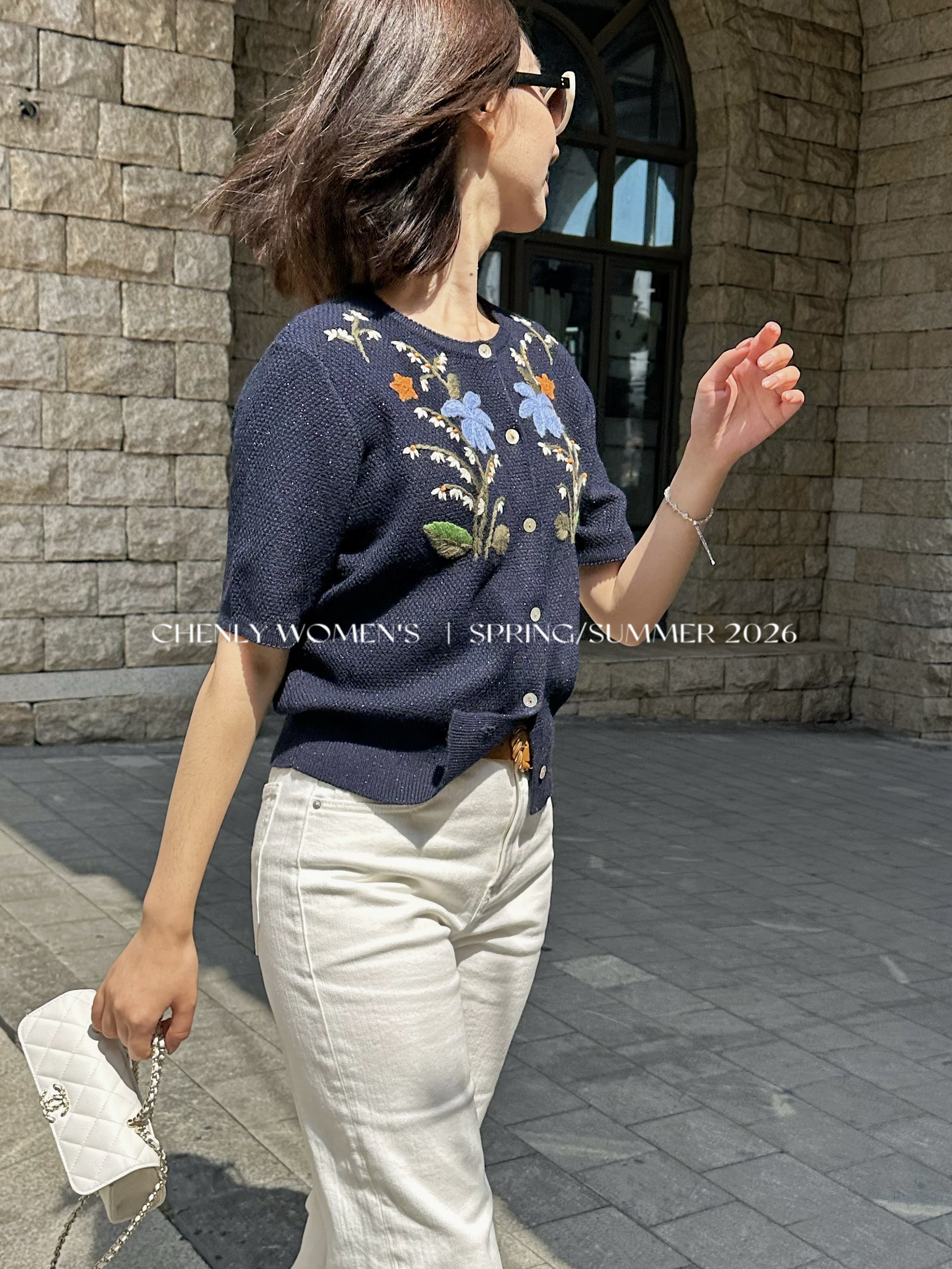 尘衣|26SS钉珠手绣铃兰花毛织短袖