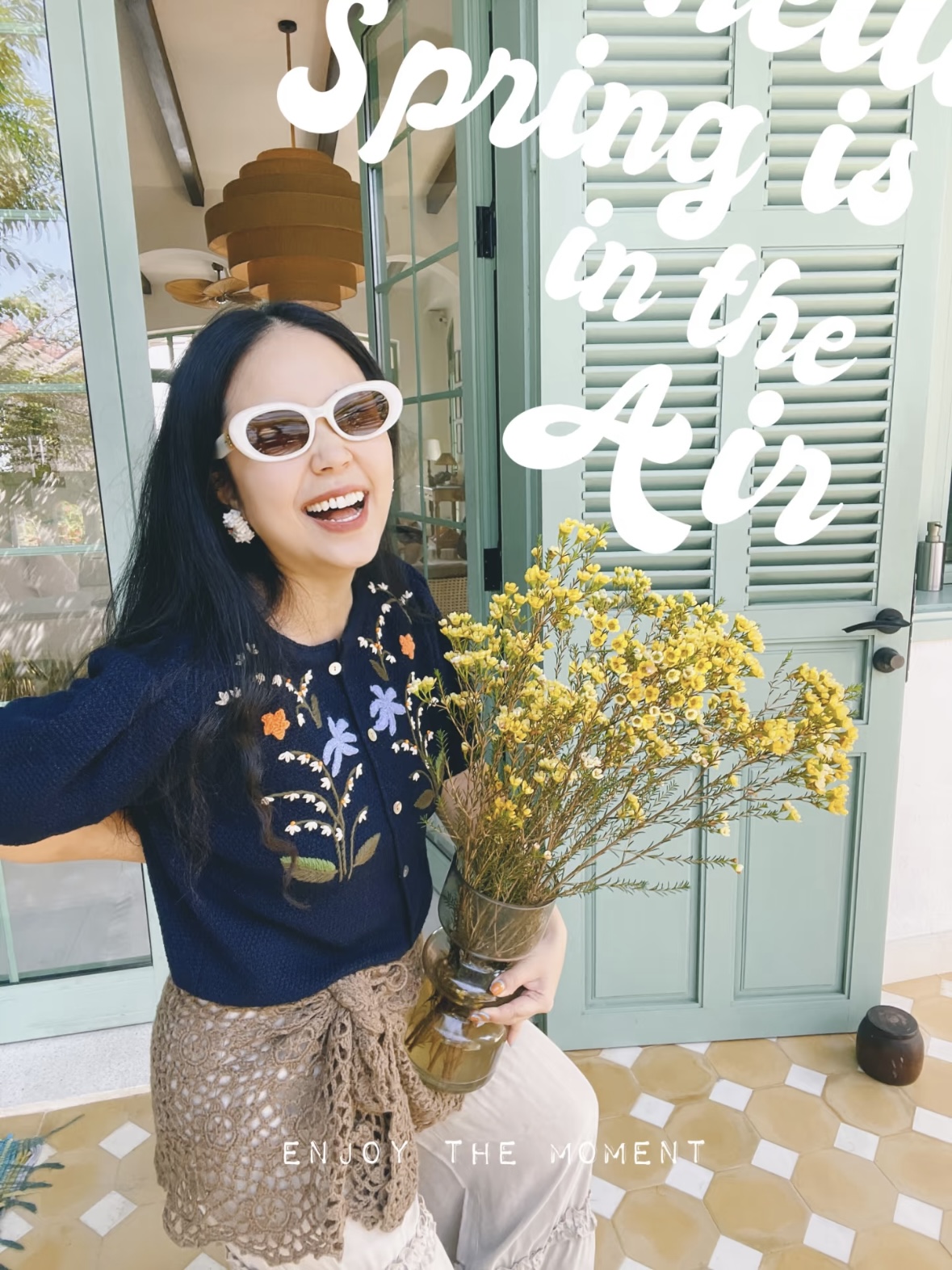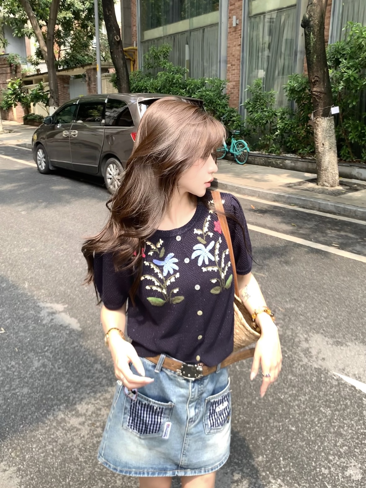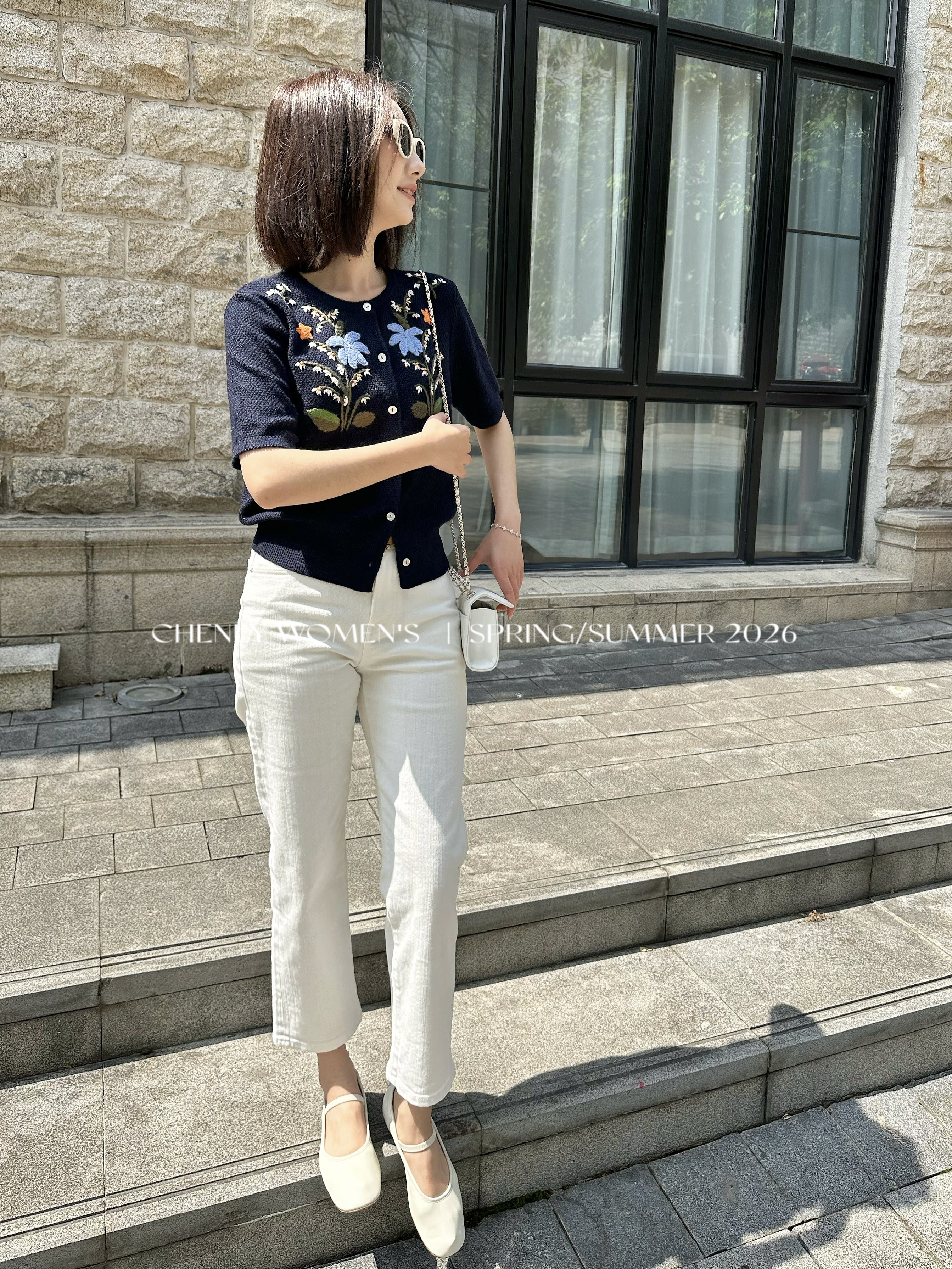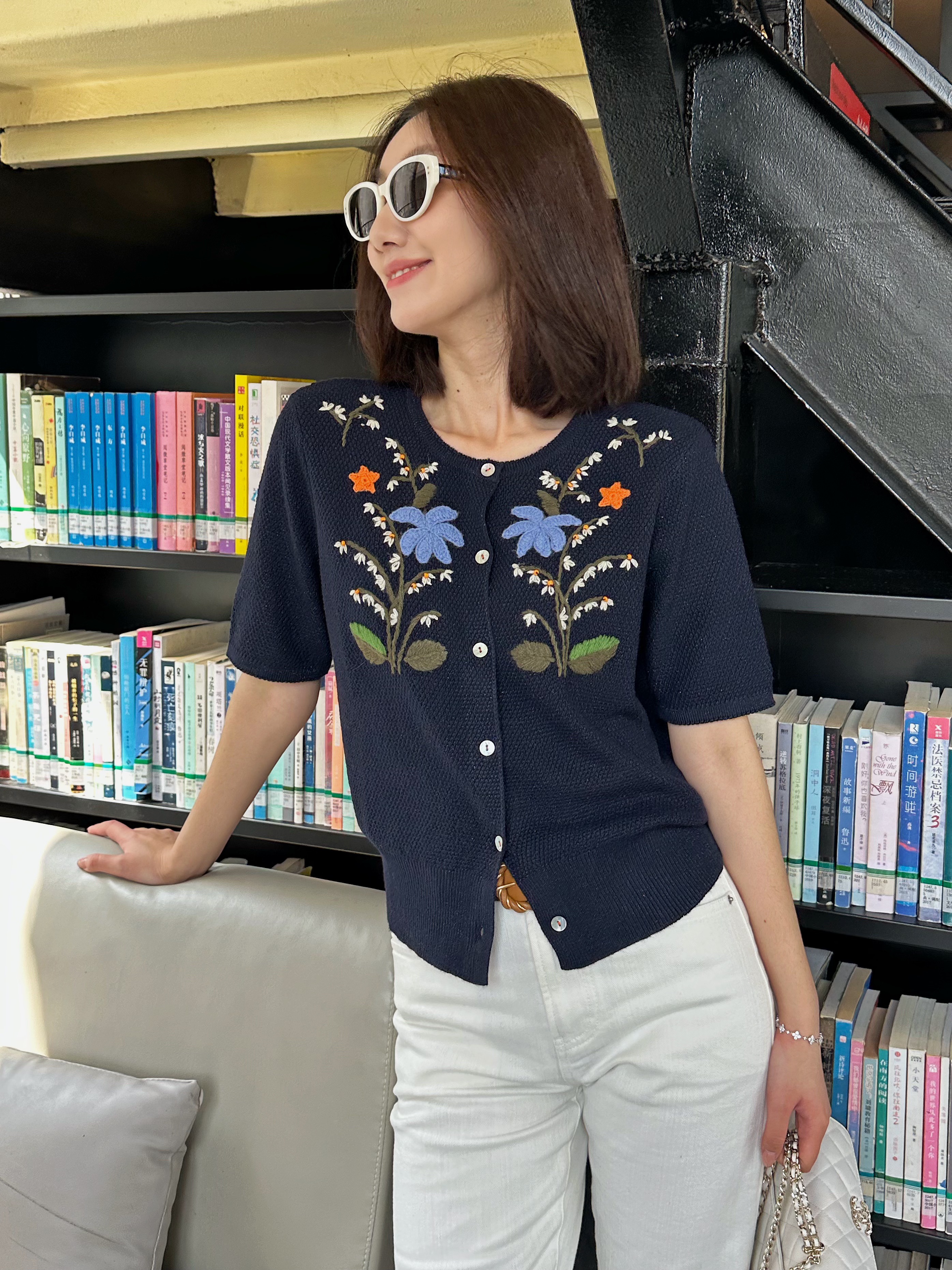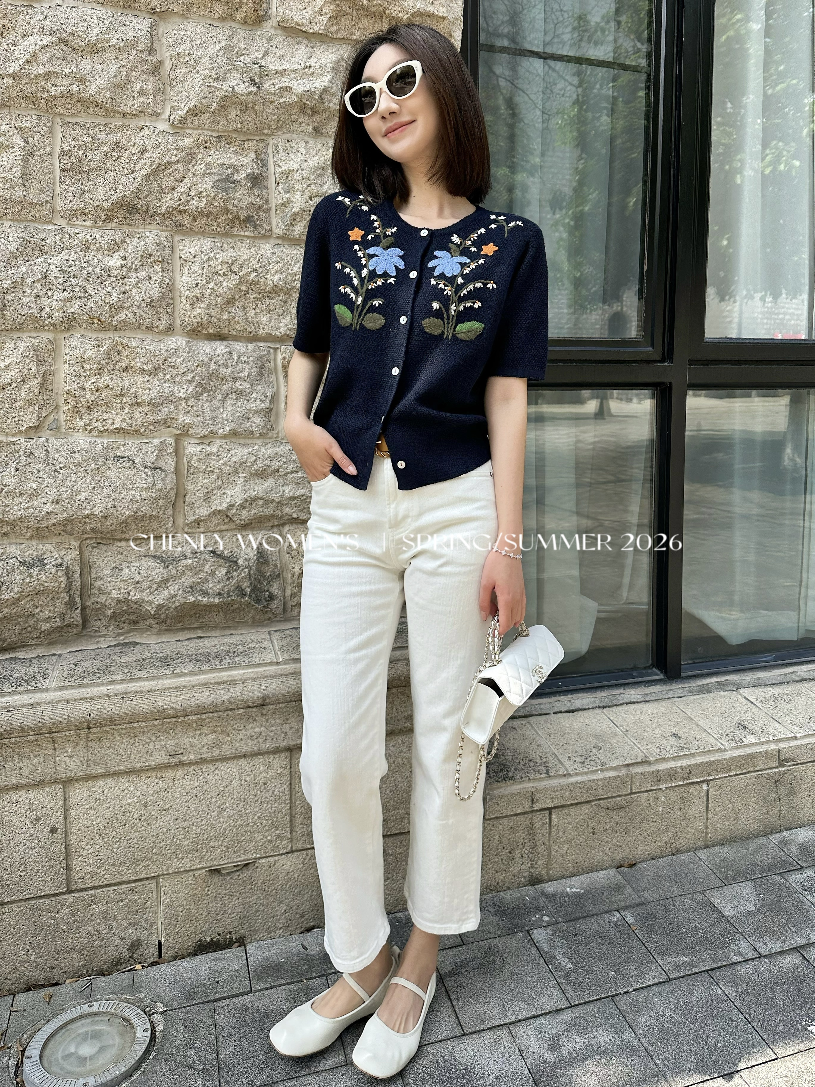 尘衣|26SS钉珠手绣铃兰花毛织短袖