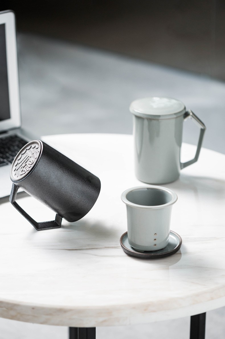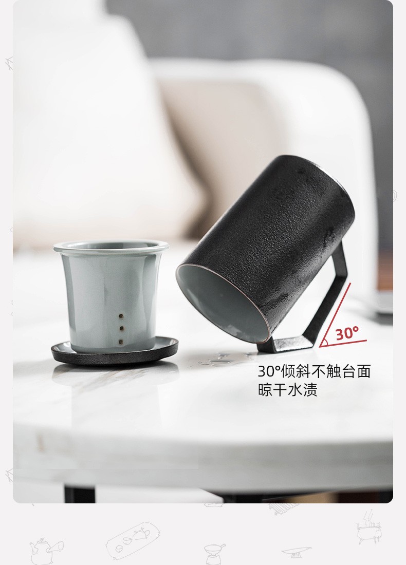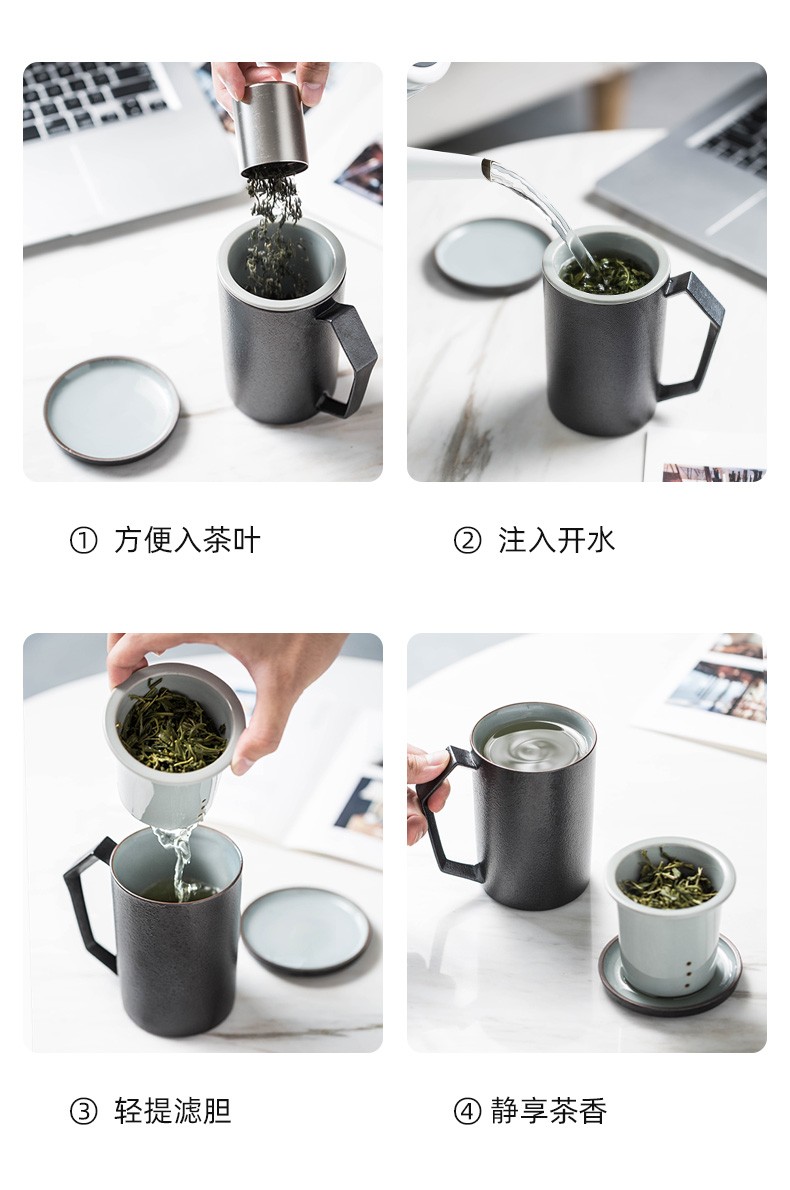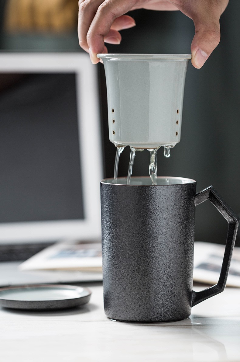 茶杯陶瓷马克杯带盖大容量过滤喝水杯办公室简约茶水分离杯子日式 贤客马杯(黑色带过滤)礼盒装G3h(昱调)