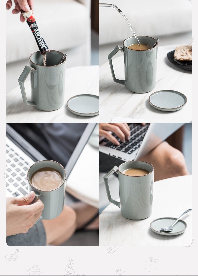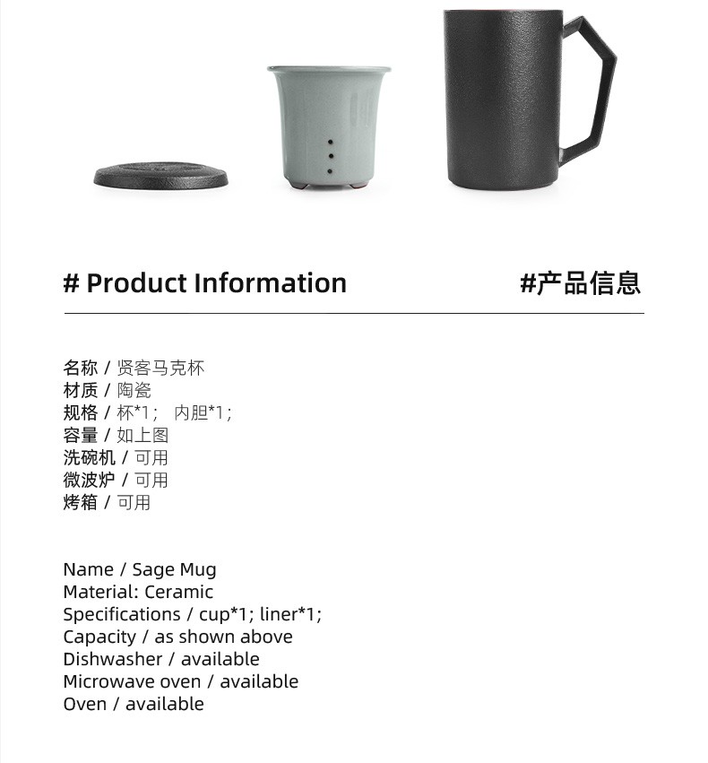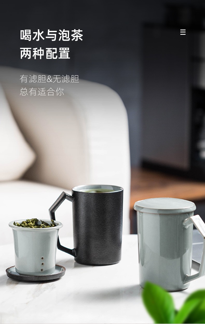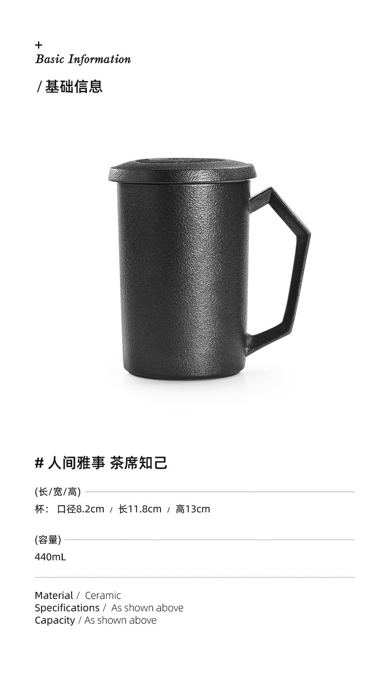 茶杯陶瓷马克杯带盖大容量过滤喝水杯办公室简约茶水分离杯子日式 贤客马杯(黑色带过滤)礼盒装G3h(昱调)