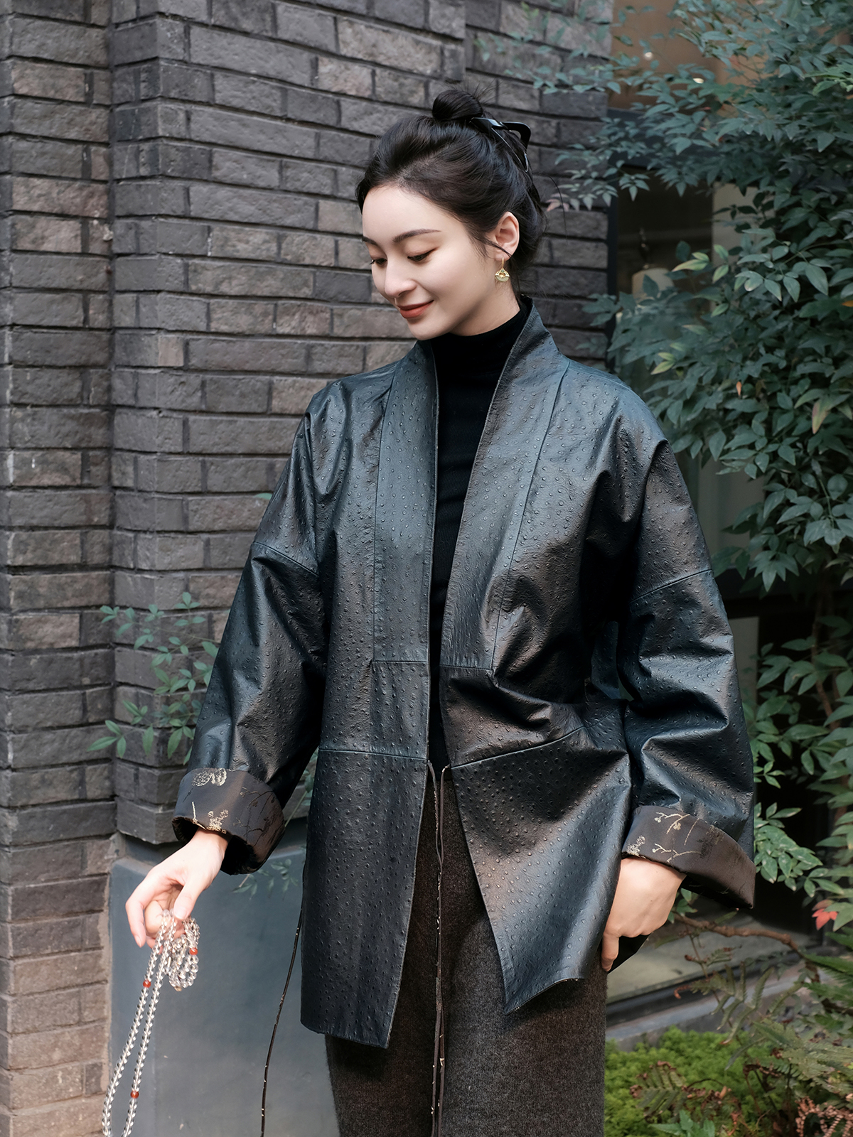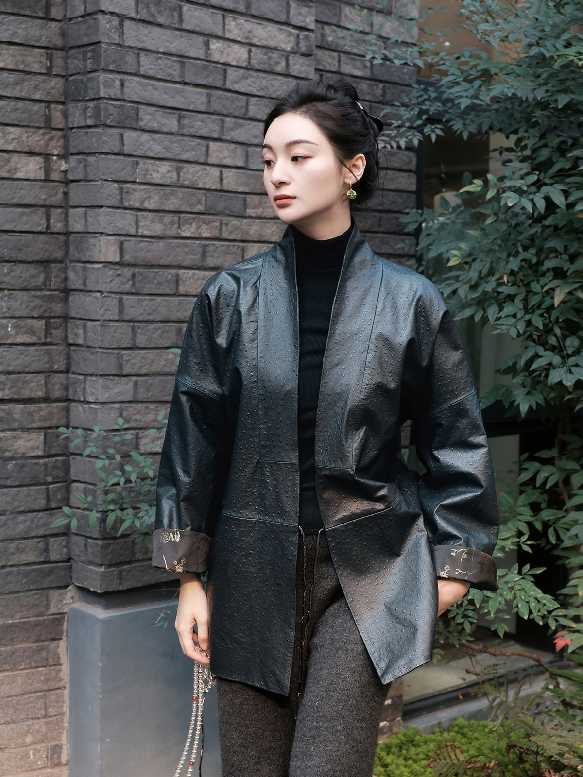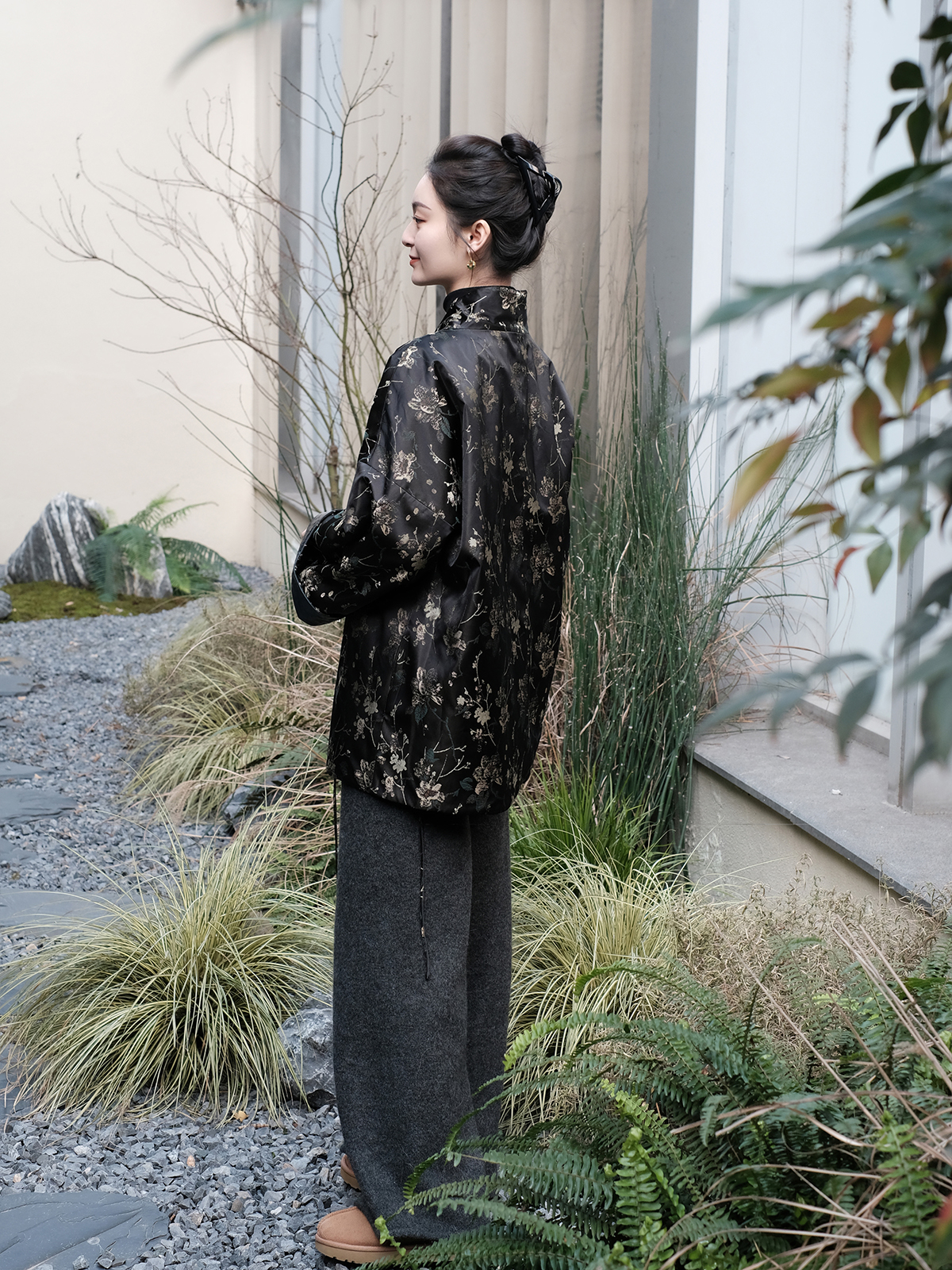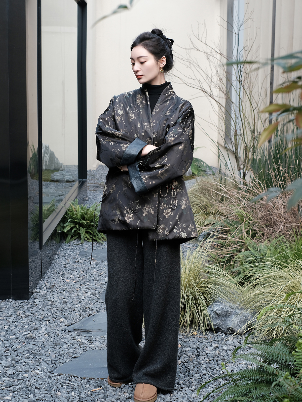 盛唐牡丹 |重缎真丝宋锦双面穿皮衣