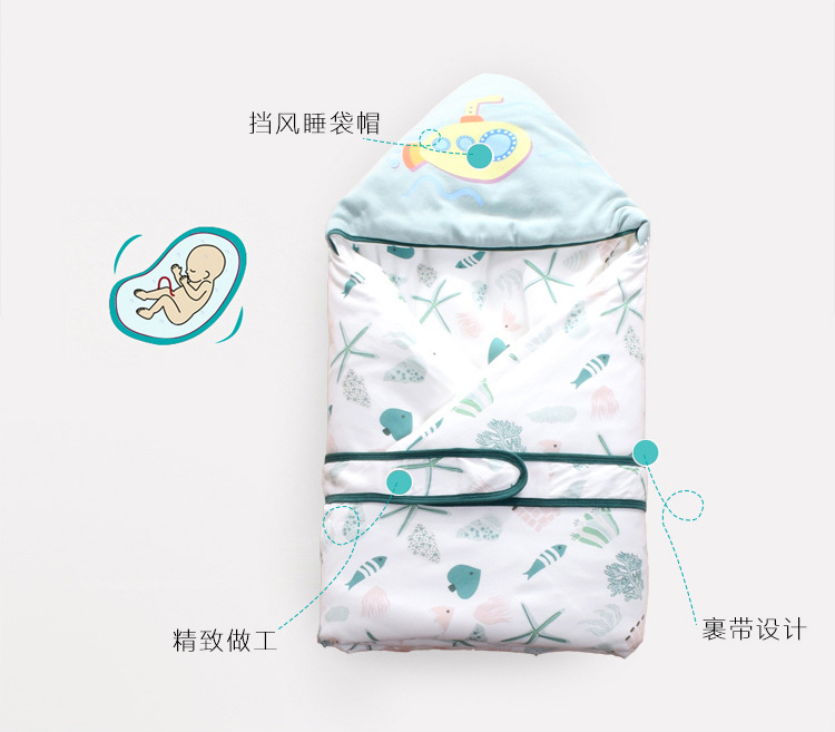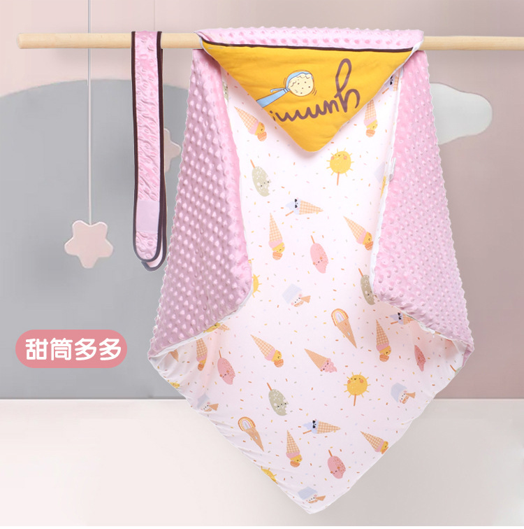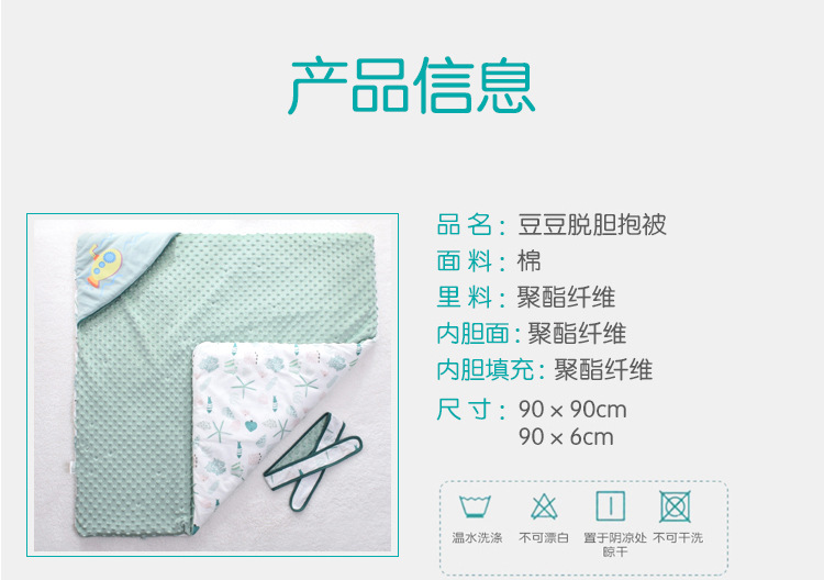 【母婴】初生豆豆绒可脱胆夹棉包被新生宝宝针织棉绗缝加厚抱被四季用
