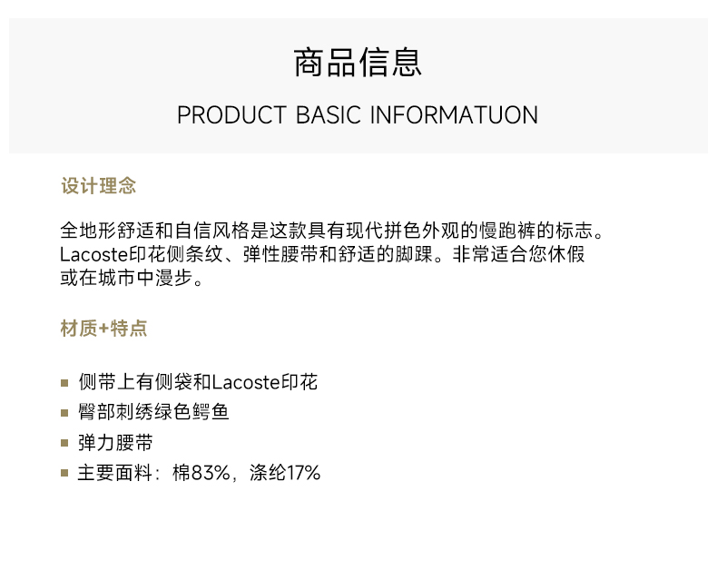 Lacoste/法国鳄鱼 男士春秋百搭加绒棉混纺束脚休闲裤卫裤XH7066