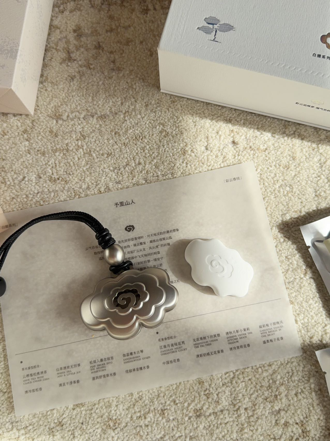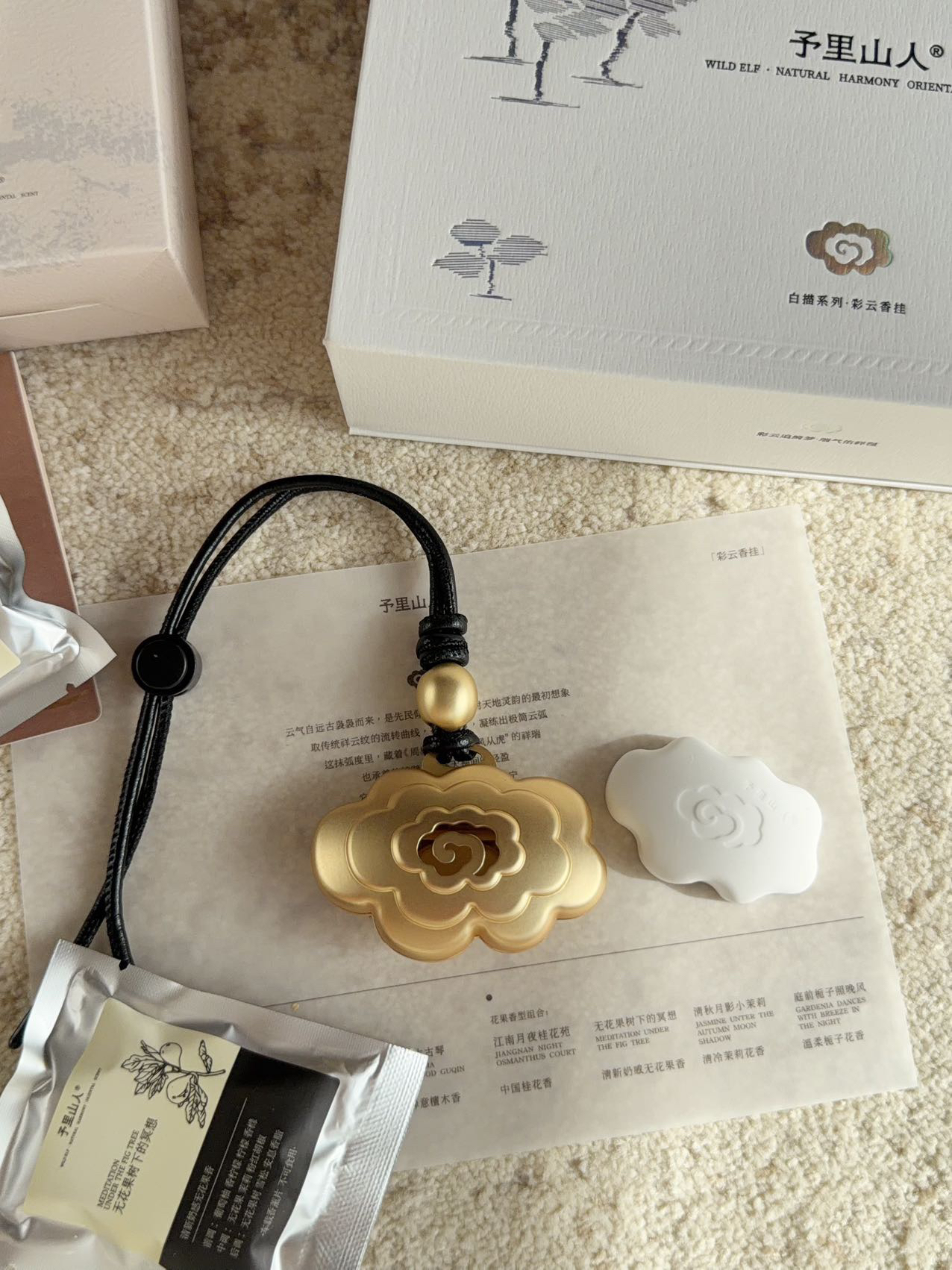 以皮绳手工串联编织成型,保有温度与祝福祥云香薰